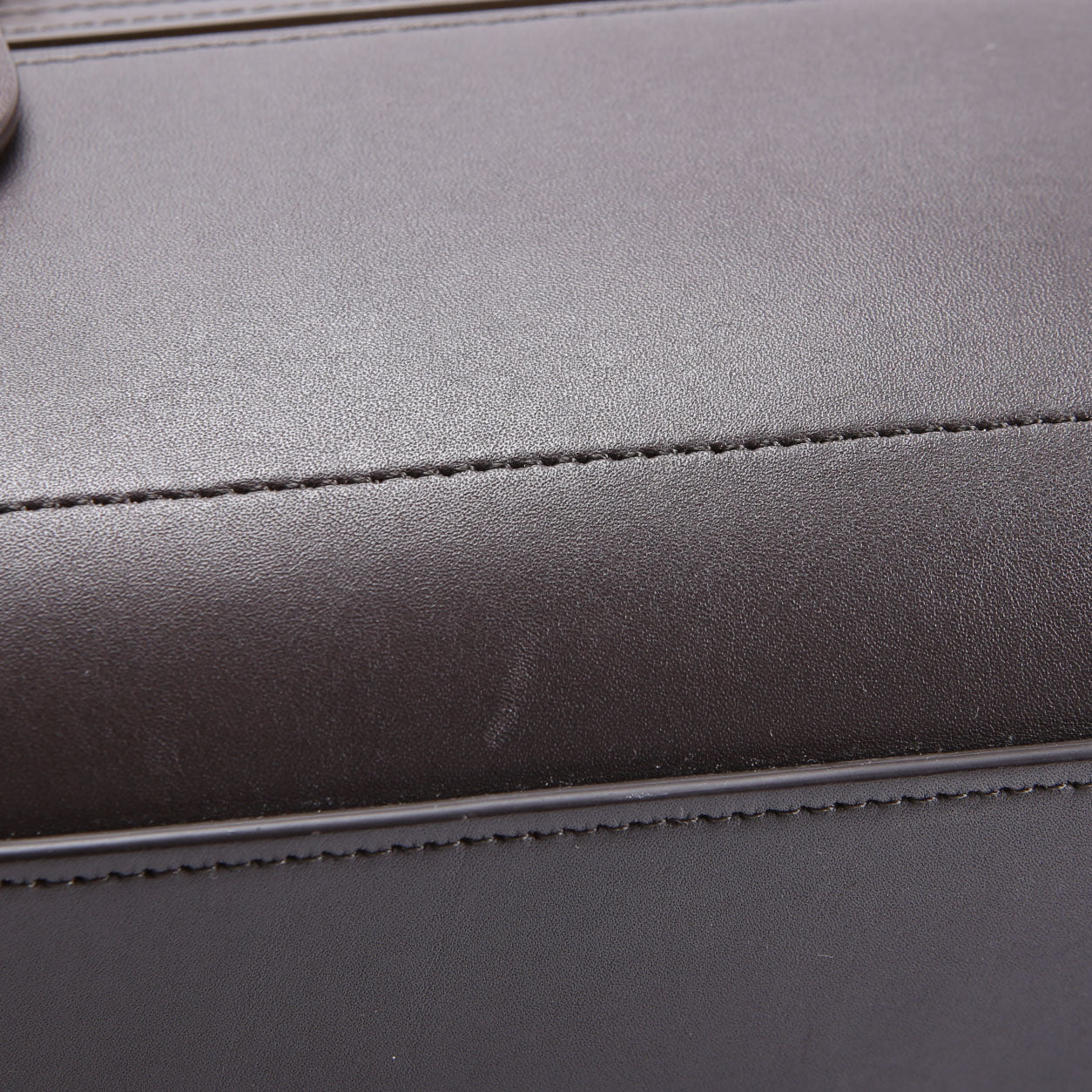 Exterior: The exterior leather shows light scuffs throughout and minor wrinkled. The exterior features on zip pocket.