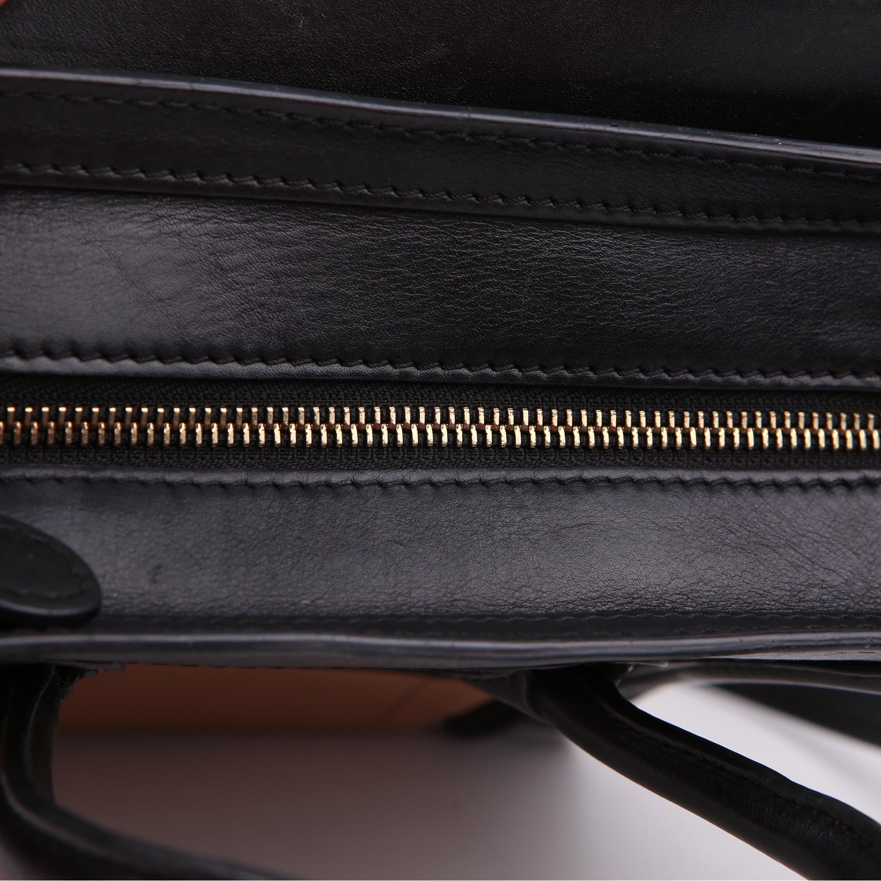 Hardware: The zipper runs smoothly. The zipper pull shows minor wear.