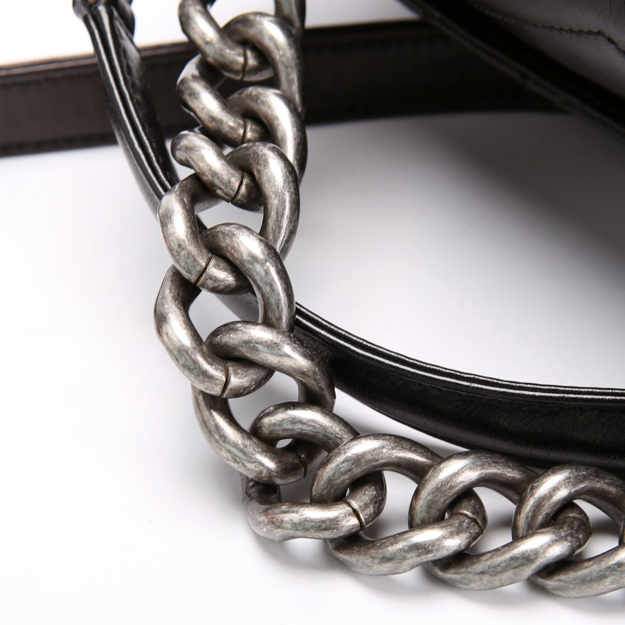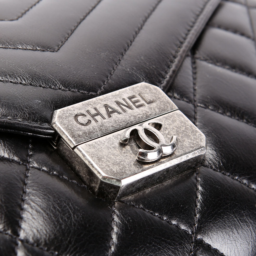 This pre-owned Chanel Mad About Quilting Flap Medium is guaranteed 100% authentic. The exterior is in the classic Chanel Calfskin leather.