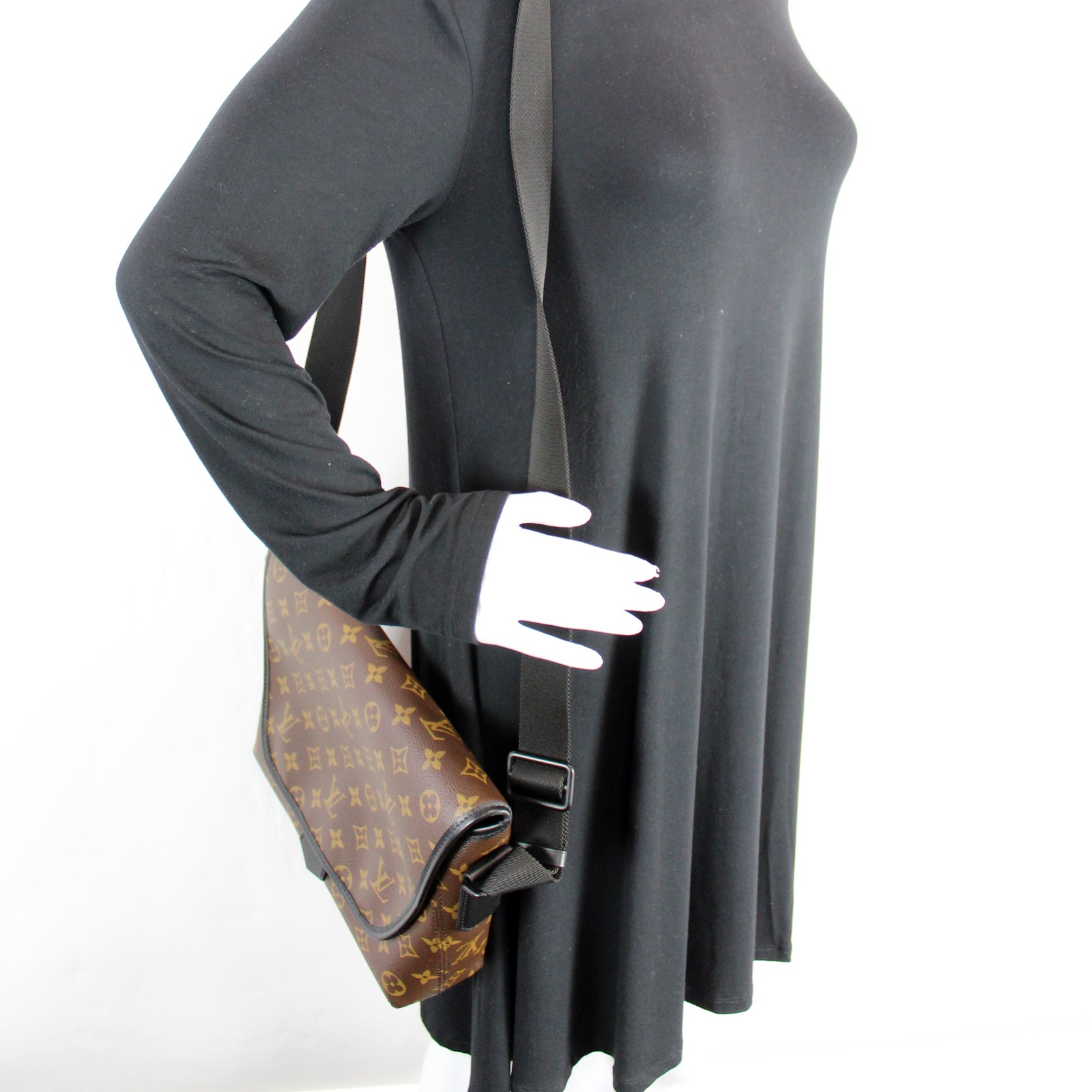 This pre-owned Louis Vuitton Magnetic Messenger is guaranteed 100% authentic. The exterior is in the classic Louis Vuitton Monogram Macassar coated canvas.