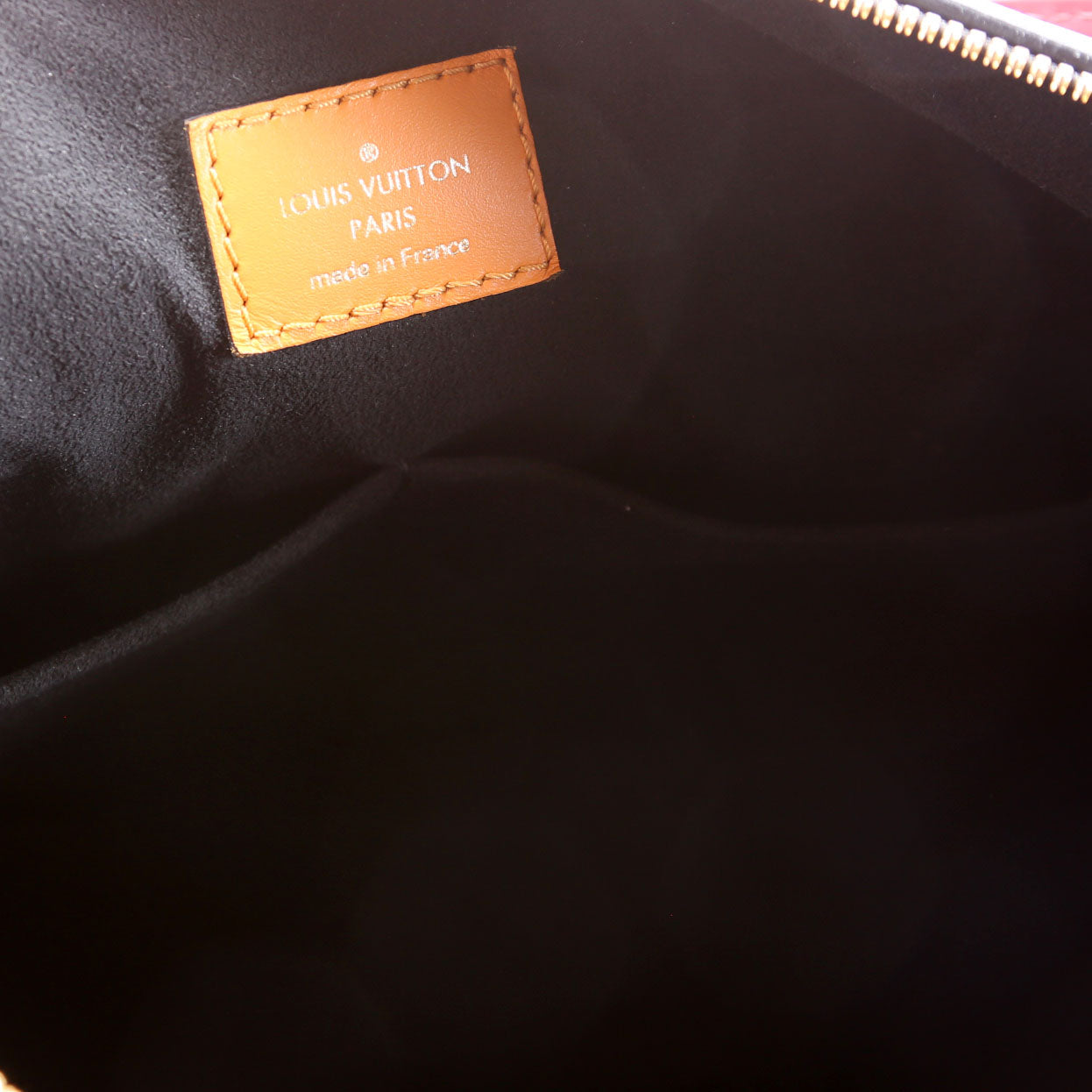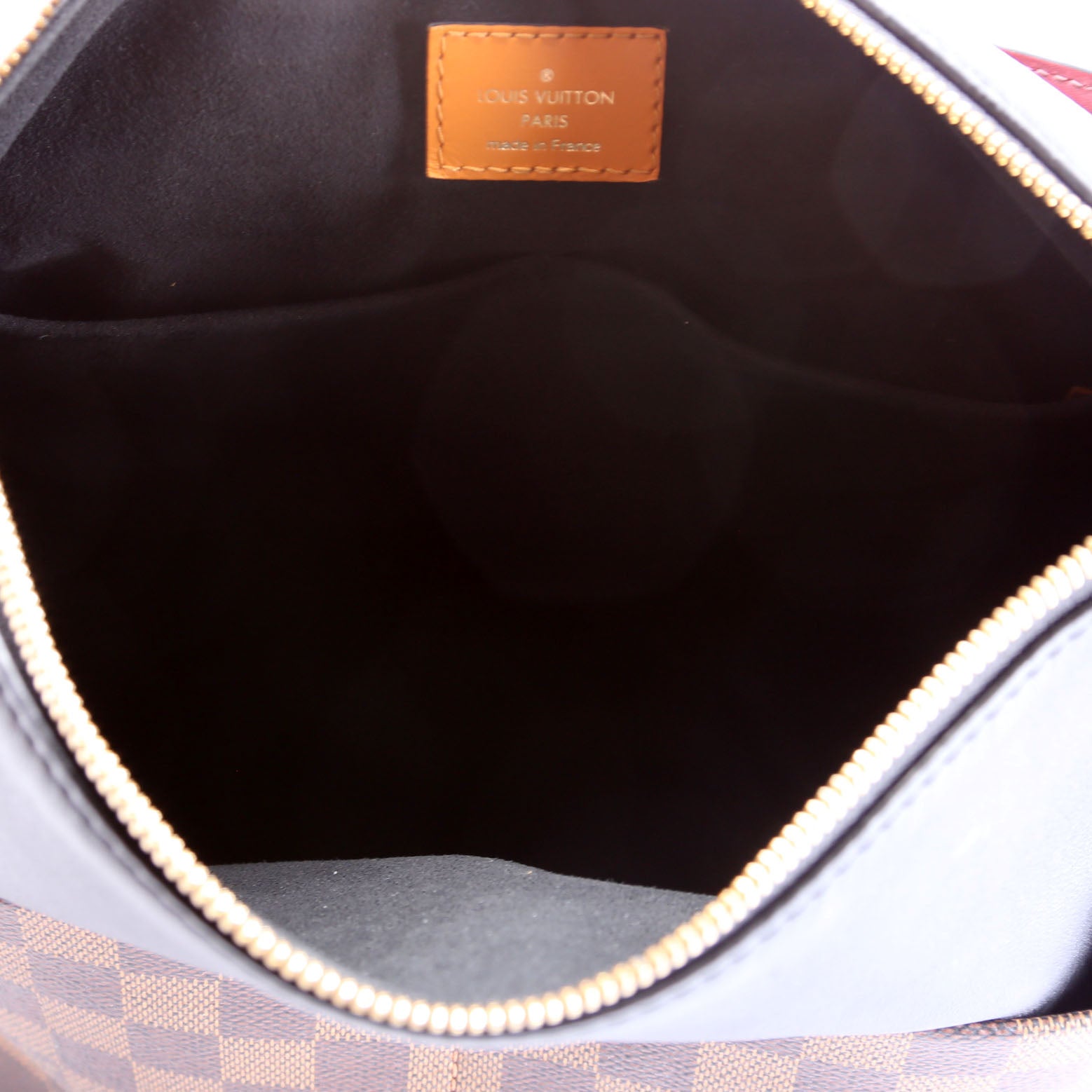 This pre-owned Louis Vuitton Maida is guaranteed 100% authentic. The exterior is in the classic Louis Vuitton Damier Ebene coated canvas.