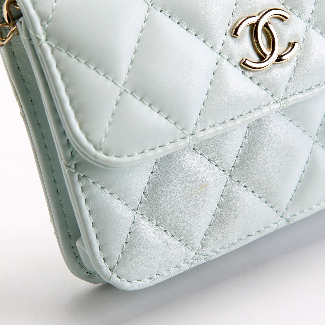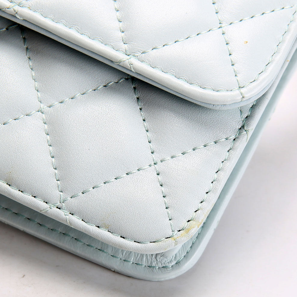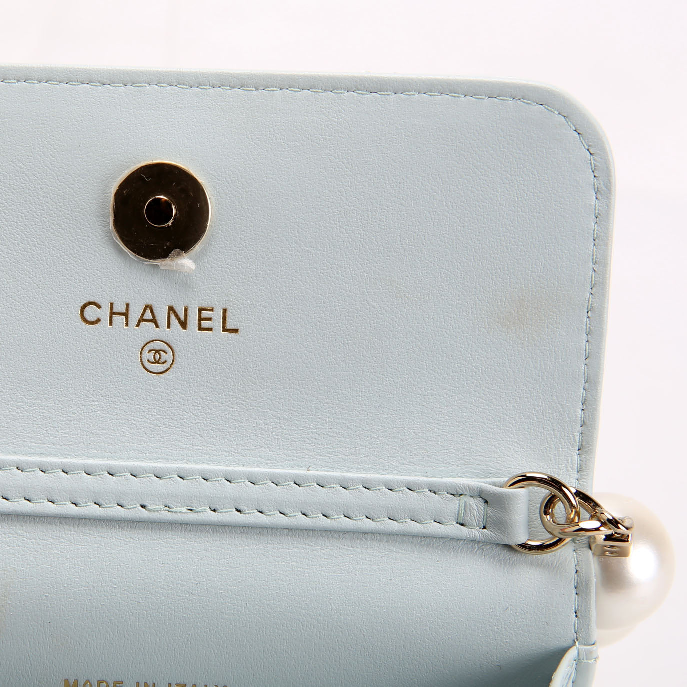 Maxi Pearls Compact Wallet Lambskin 31M Baby Blue