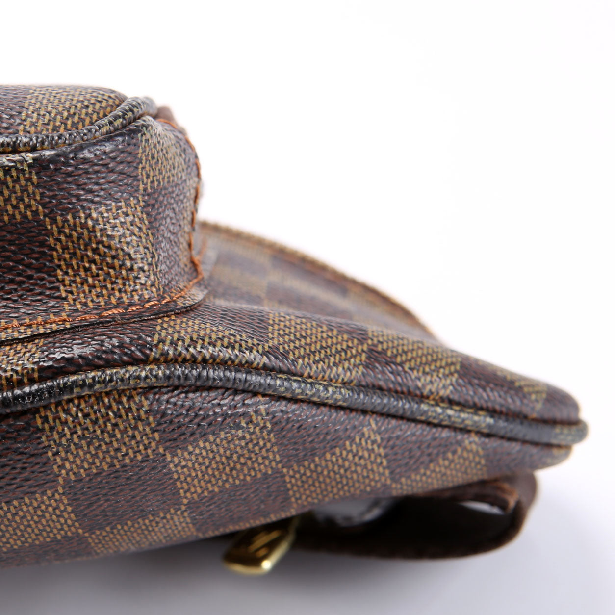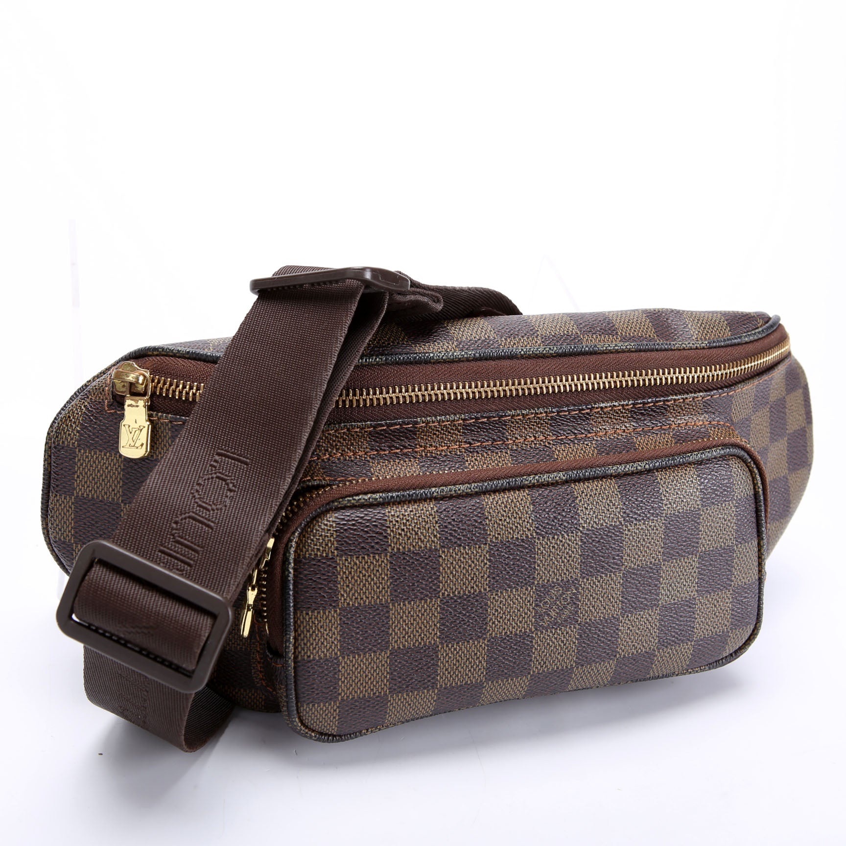 This pre-owned louis Vuitton Melville Bum Bag is guaranteed 100% authentic. The exterior is in the classic Louis Vuitton Damier Ebene Coated Canvas.