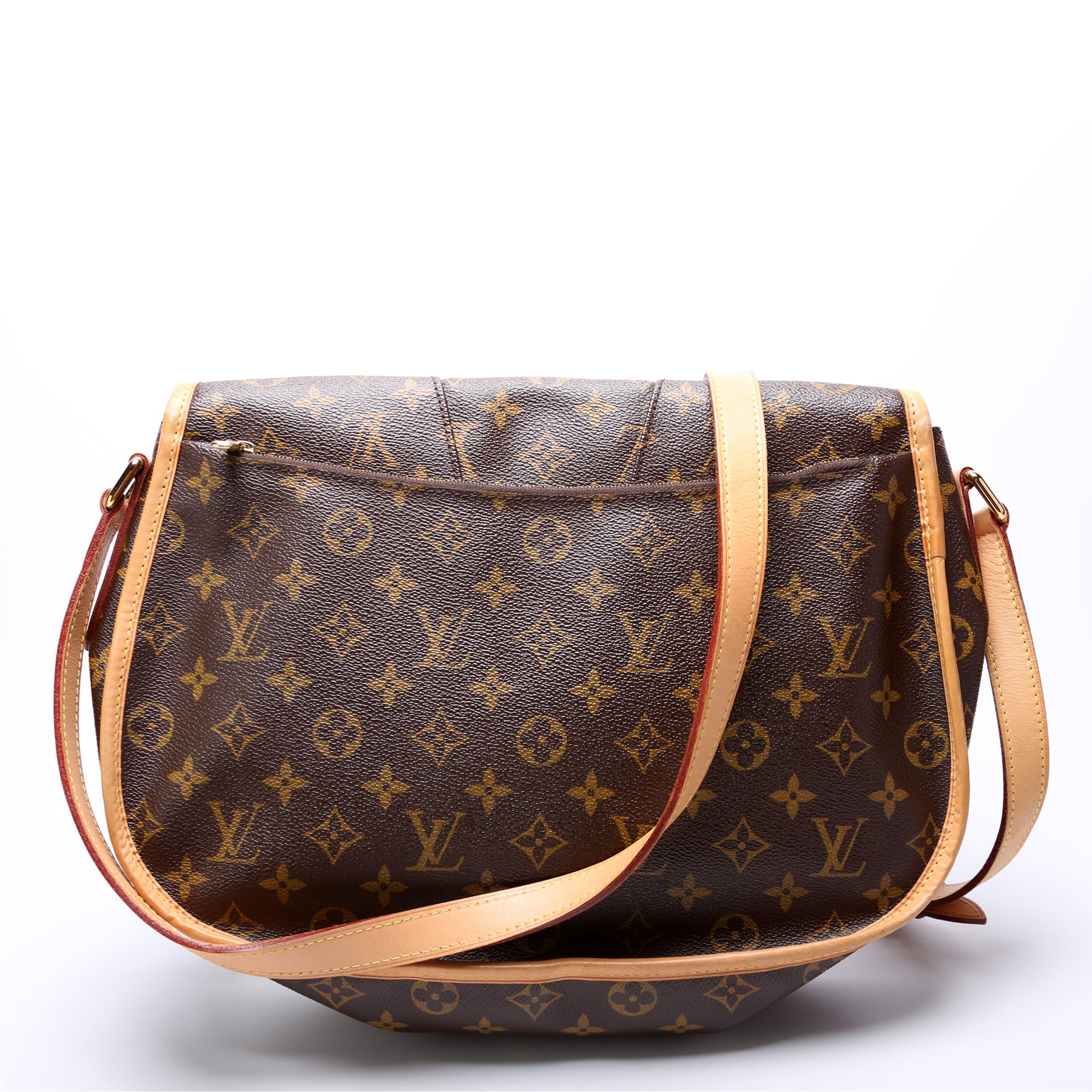 Exterior: The exterior Monogram coated canvas is free of any rips or cracks, there are minimal scuffs throughout. The corners and leather trim show minor wear and discoloration. The exterior features one zipper pocket.