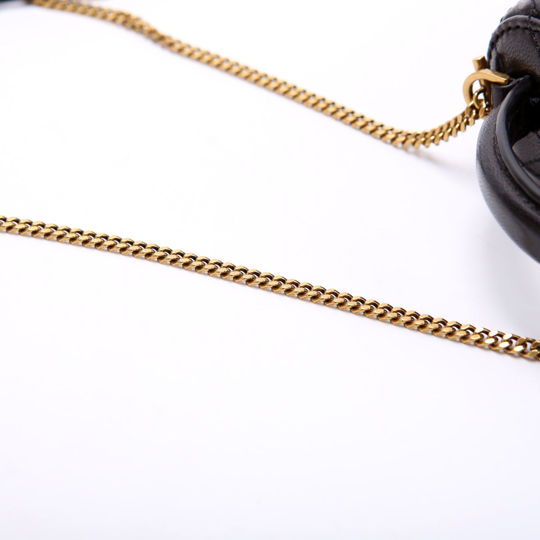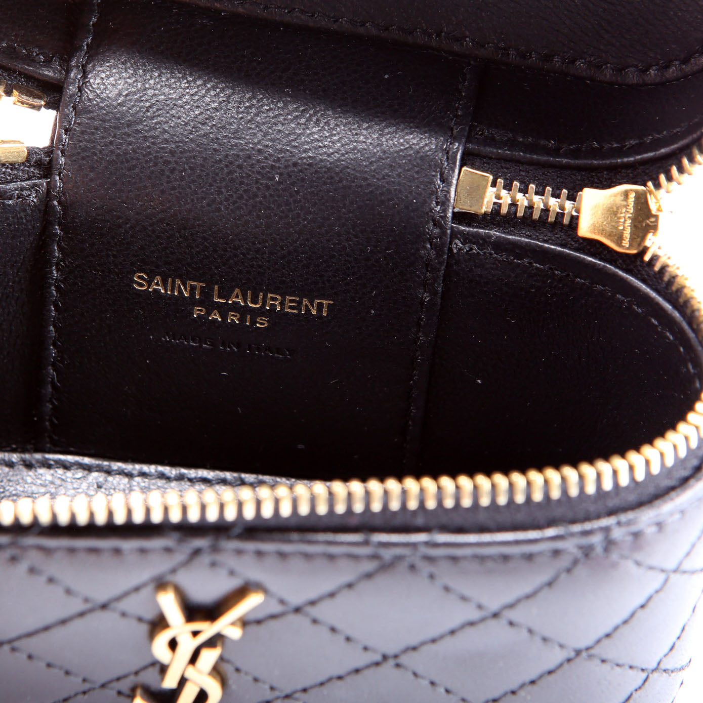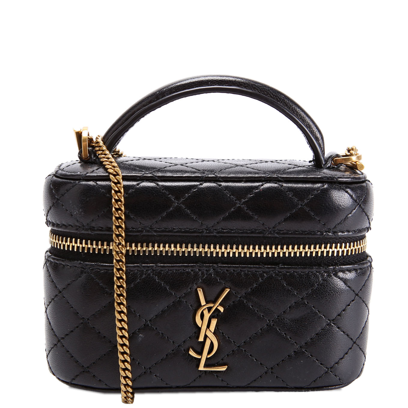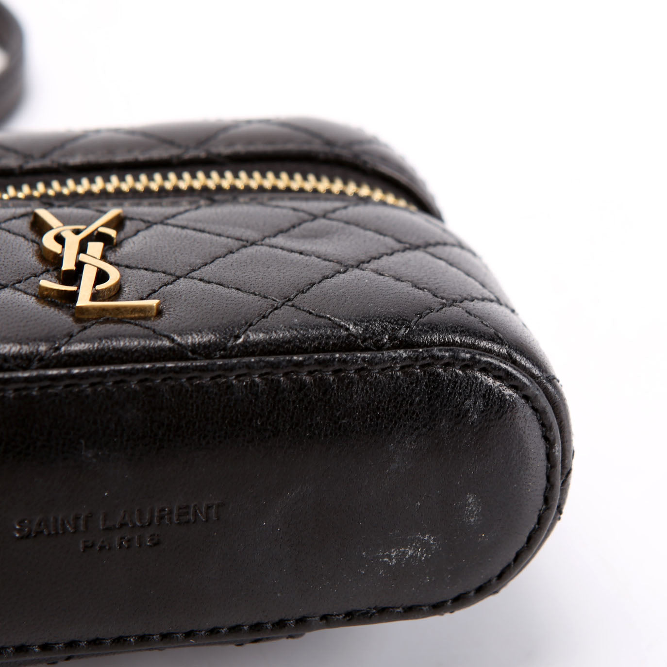 This pre-owned Saint Laurent Micro Gaby Vanity Bag is guaranteed 100% authentic. The exterior is in the classic Lambskin leather.