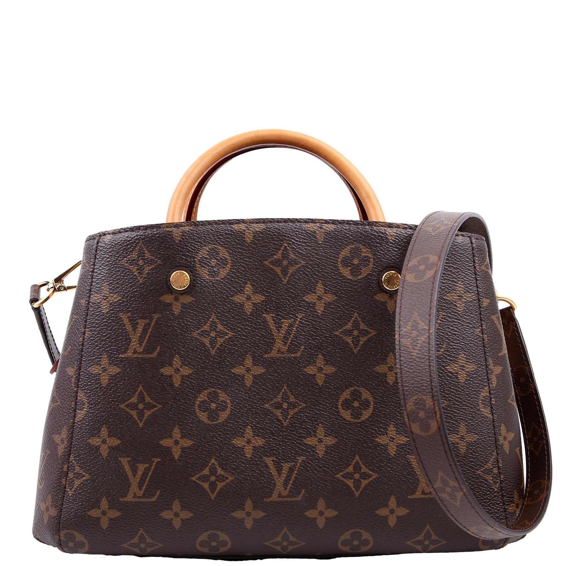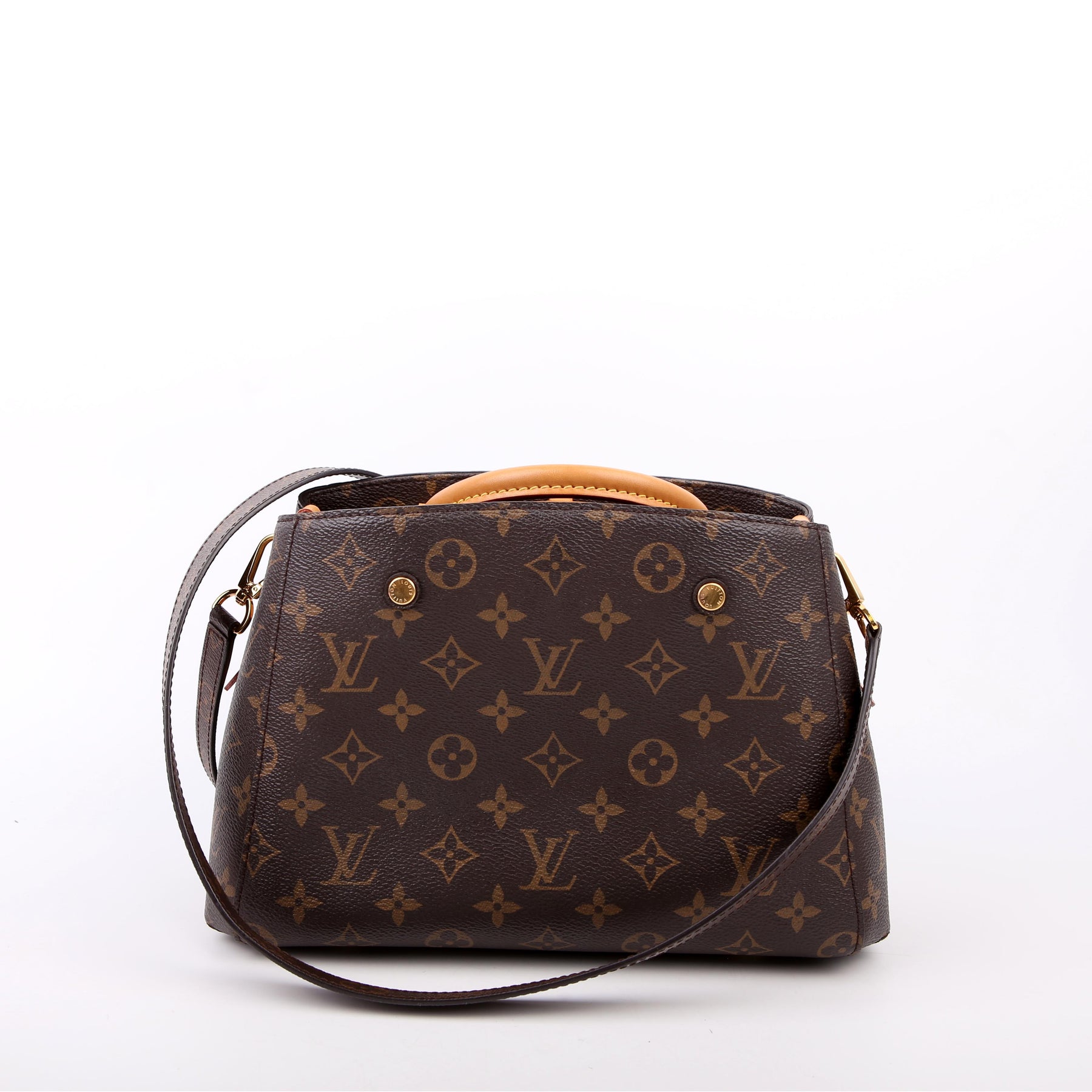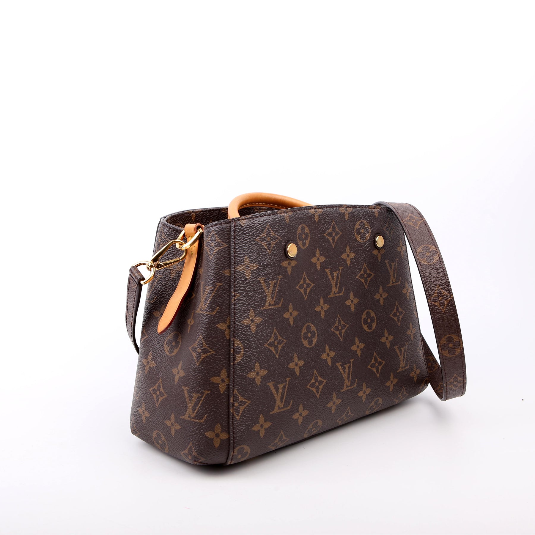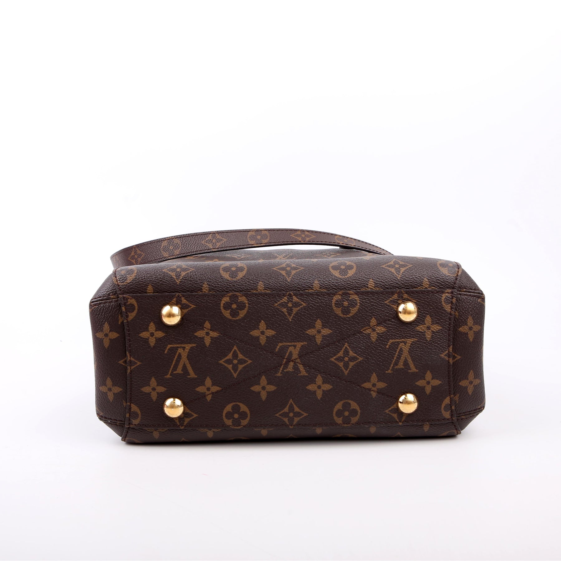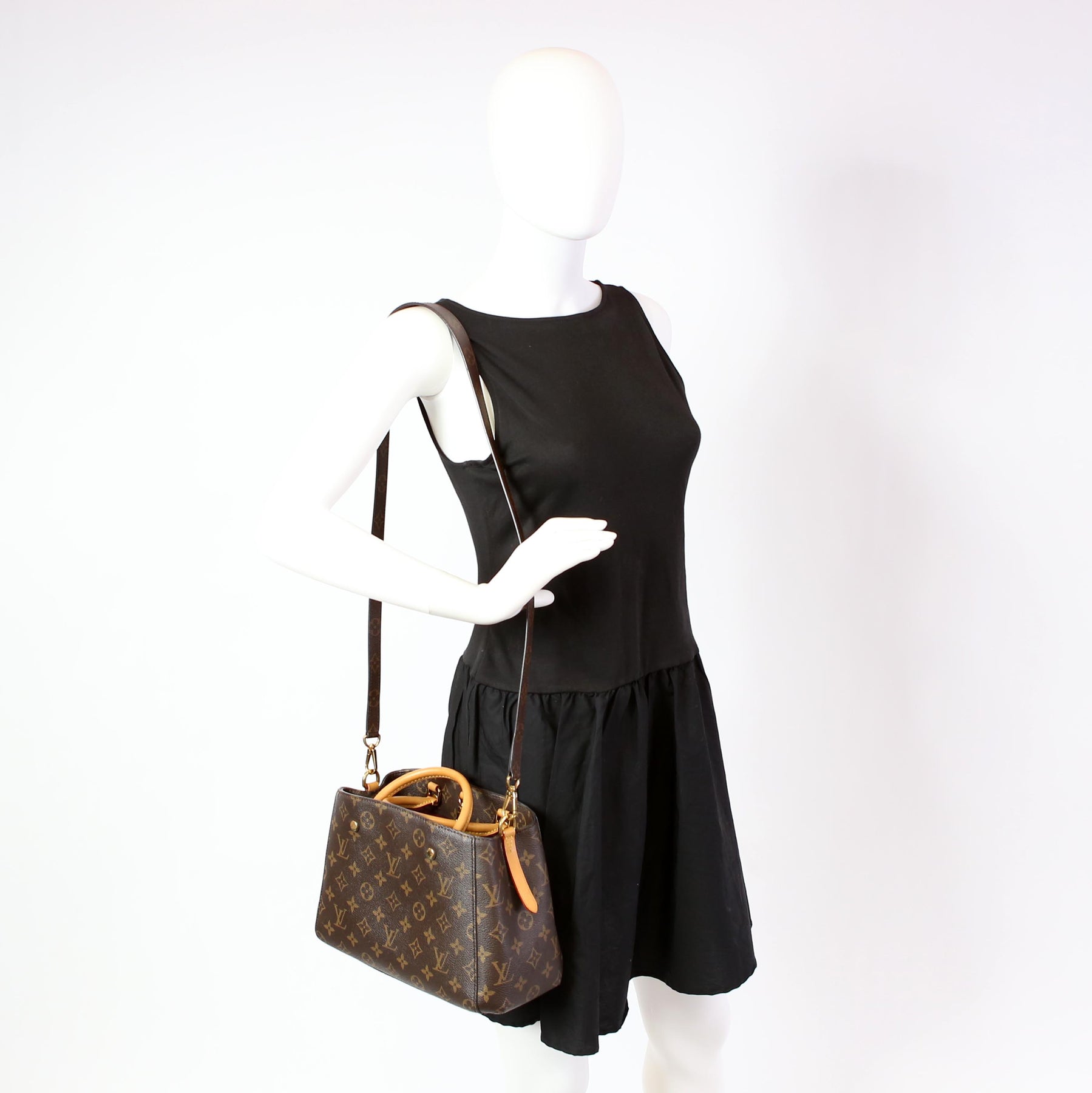 This pre-owned Louis Vuitton Montaigne BB is guaranteed 100% authentic. The exterior is in the classic Louis Vuitton Monogram coated canvas.