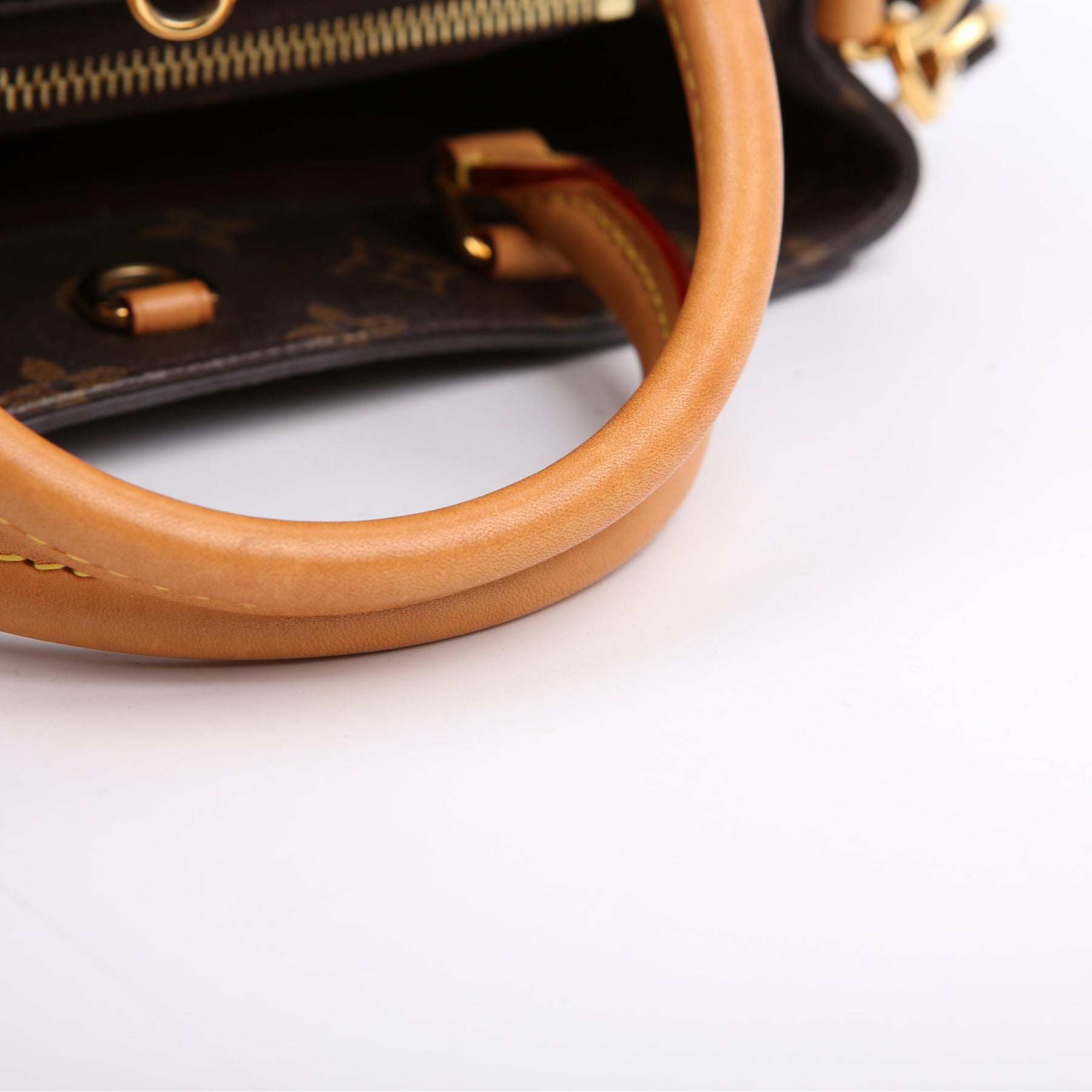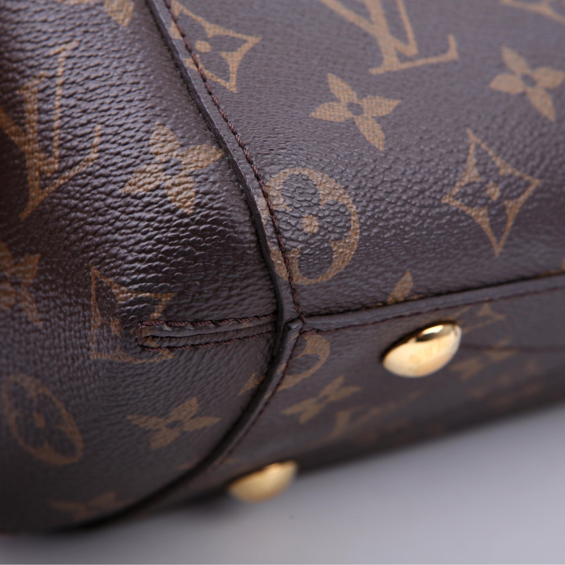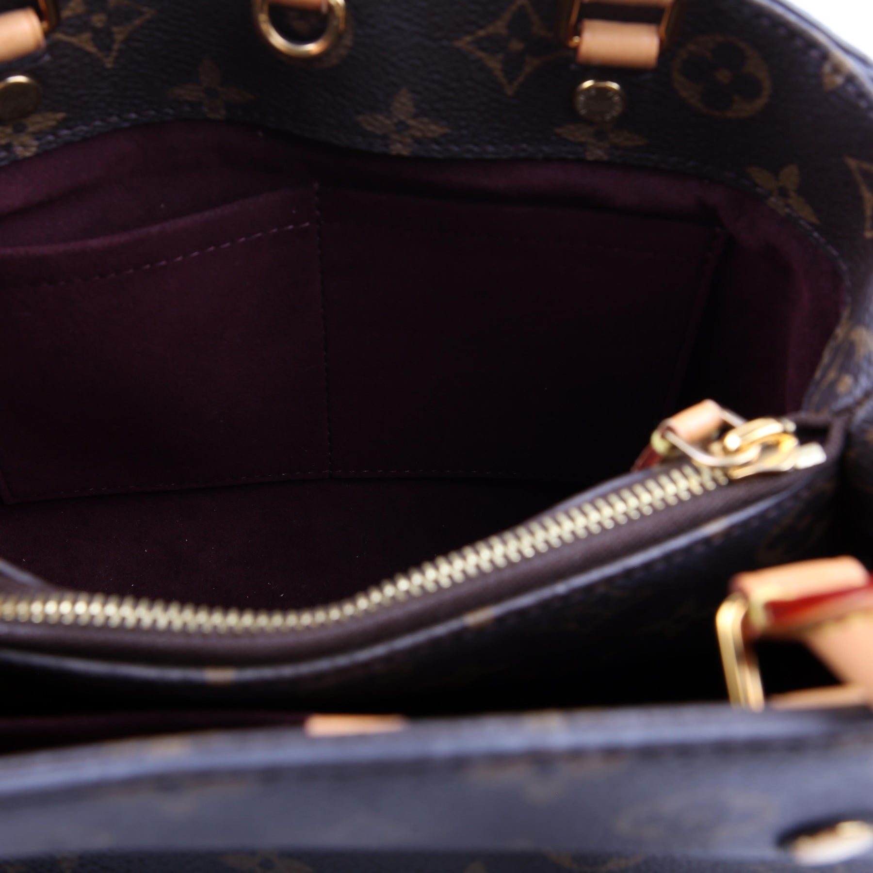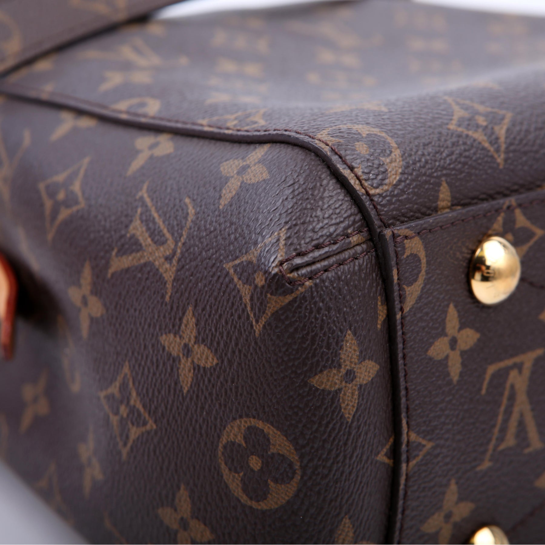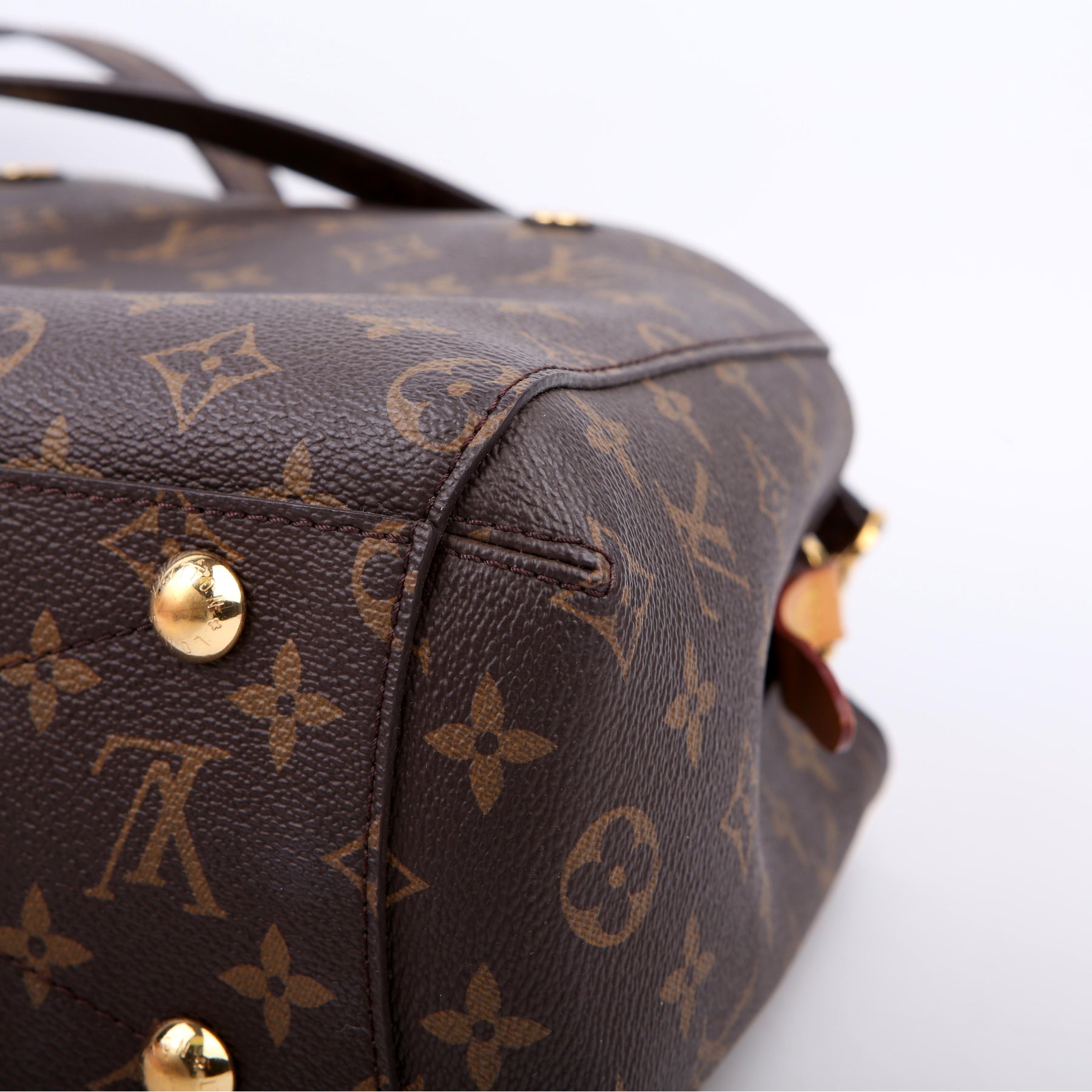 This pre-owned Louis Vuitton Montaigne BB is guaranteed 100% authentic. The exterior is in the classic Louis Vuitton Monogram coated canvas.