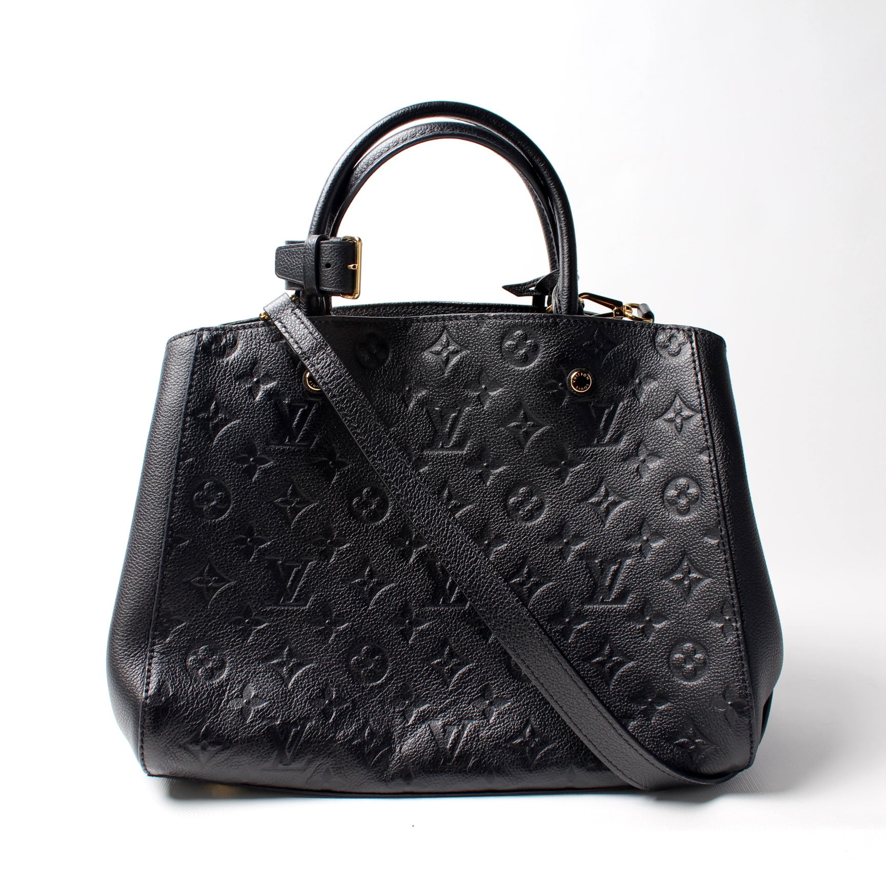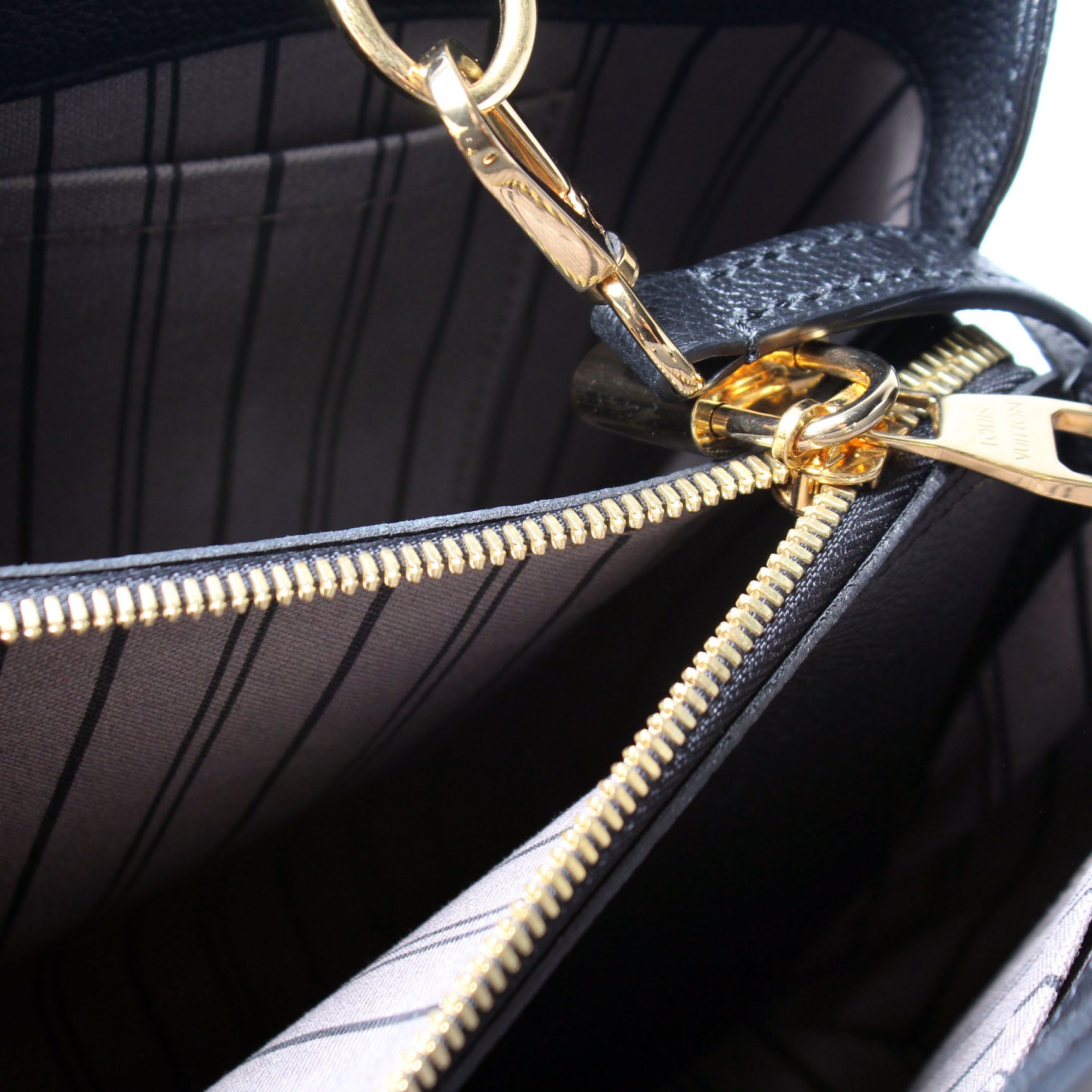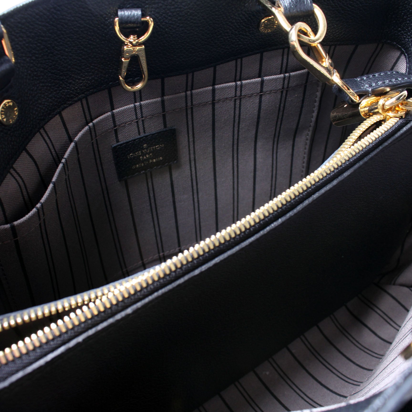 This pre-owned Louis Vuitton Montaigne MM is guaranteed 100% authentic. The exterior is in the classic Louis Vuitton Empriente leather.
