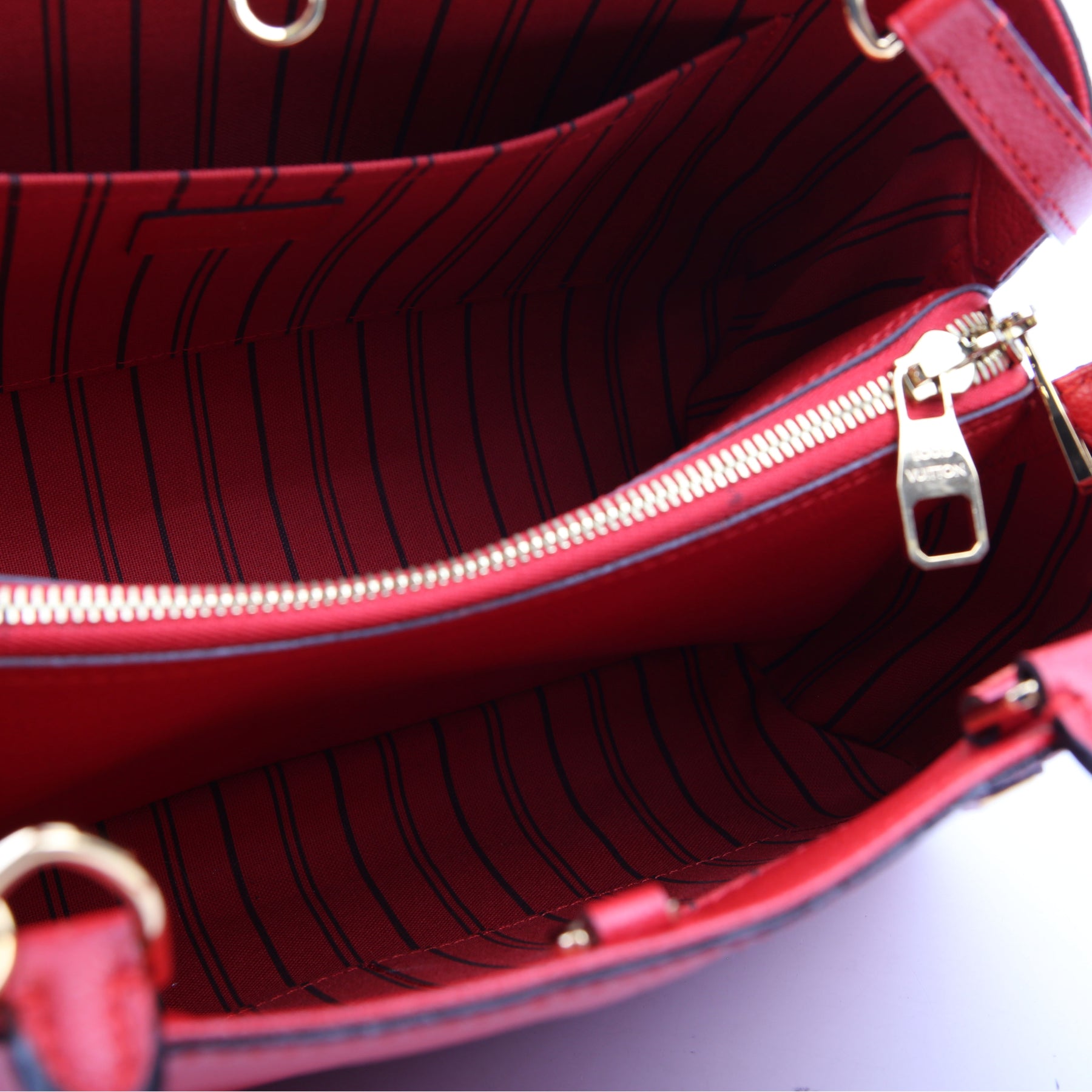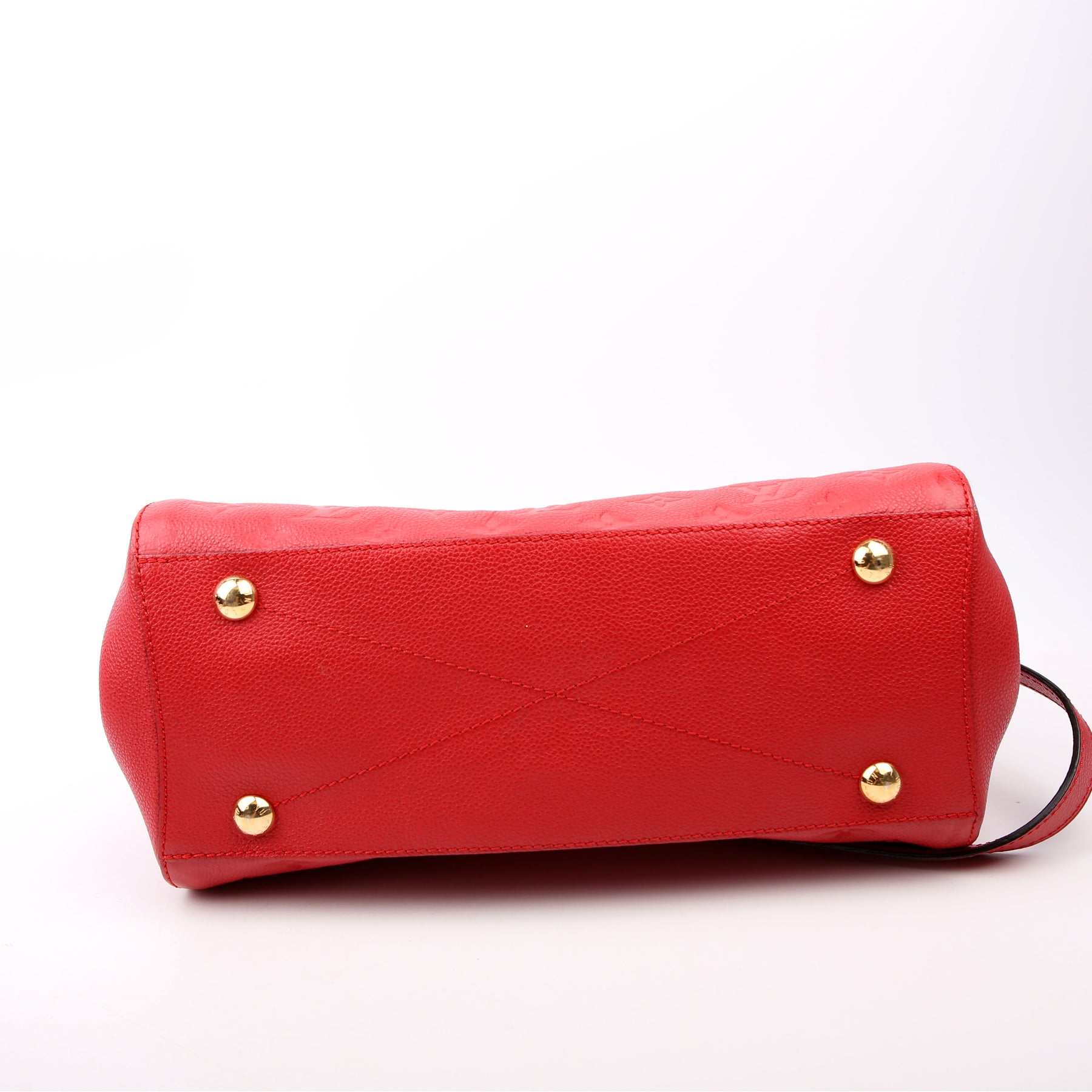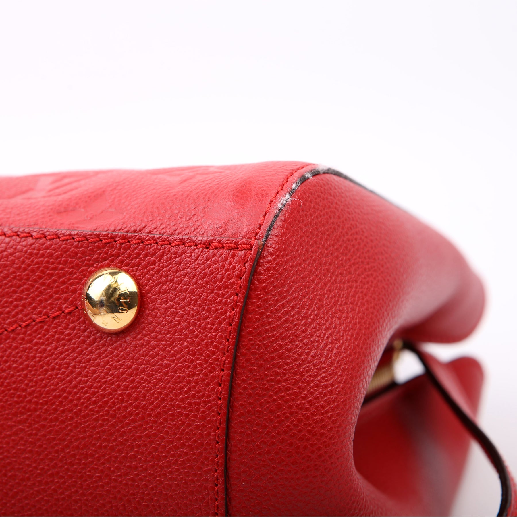 This pre-owned Louis Vuitton Montaigne MM is guaranteed 100% authentic. The exterior is in the classic Louis Vuitton Empreinte leather.