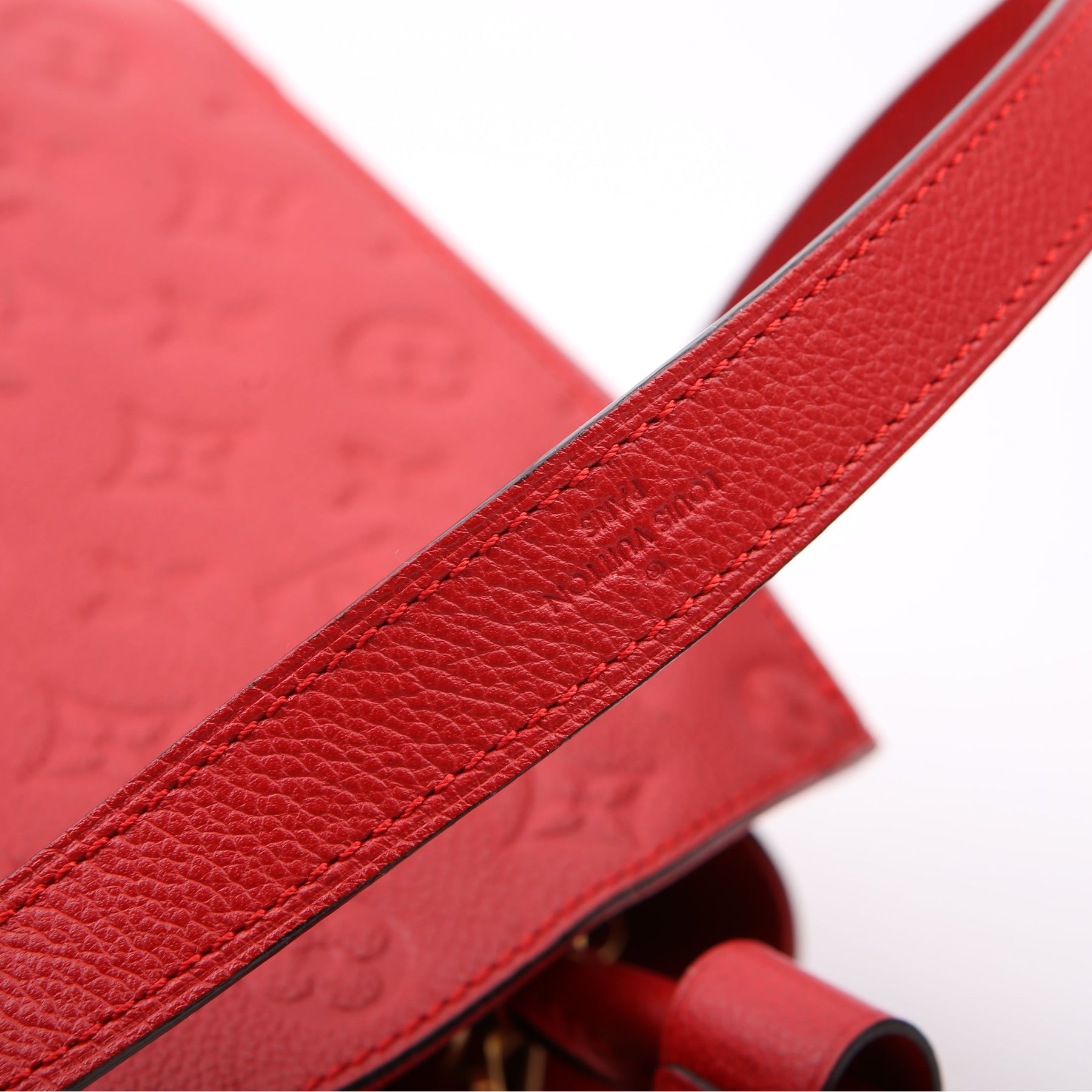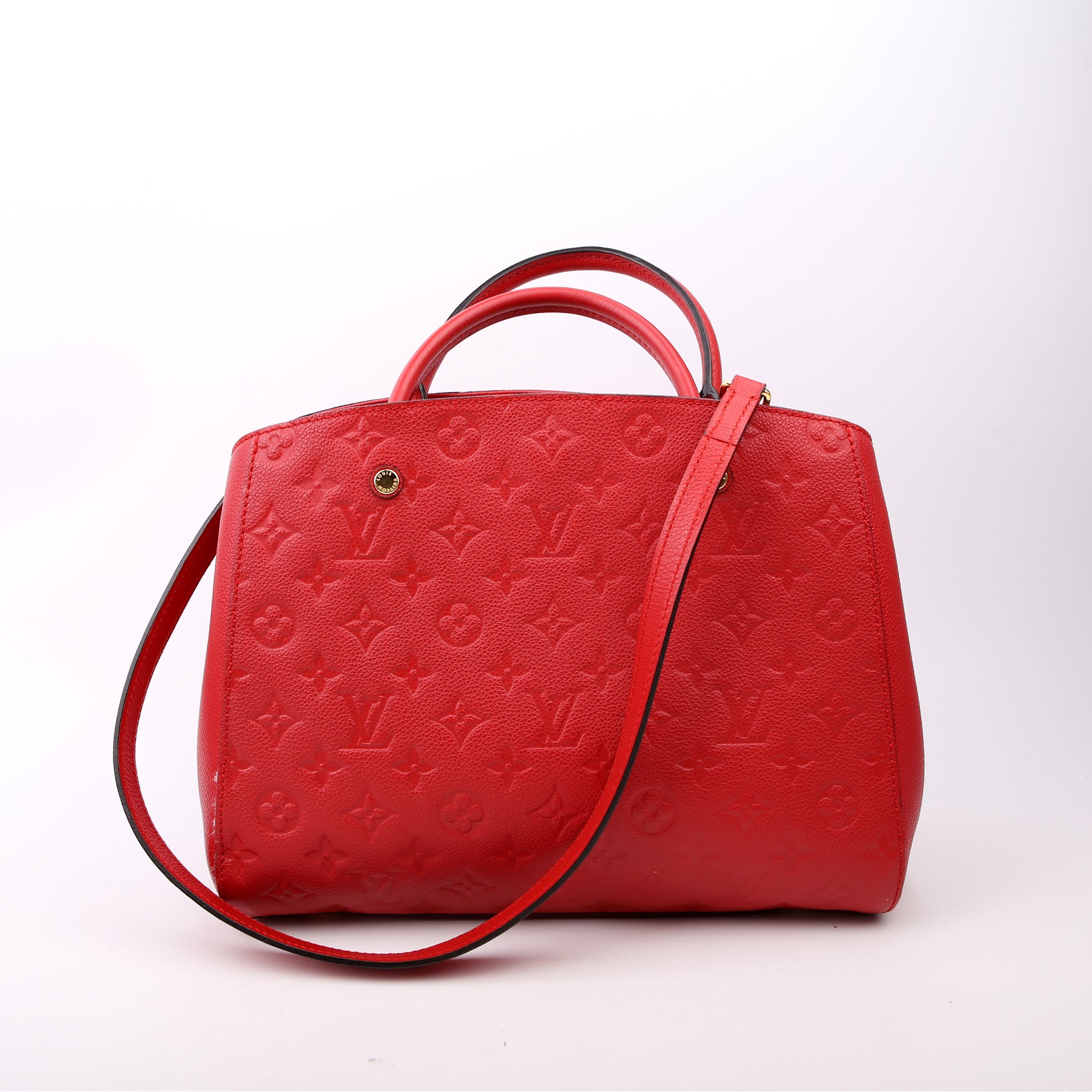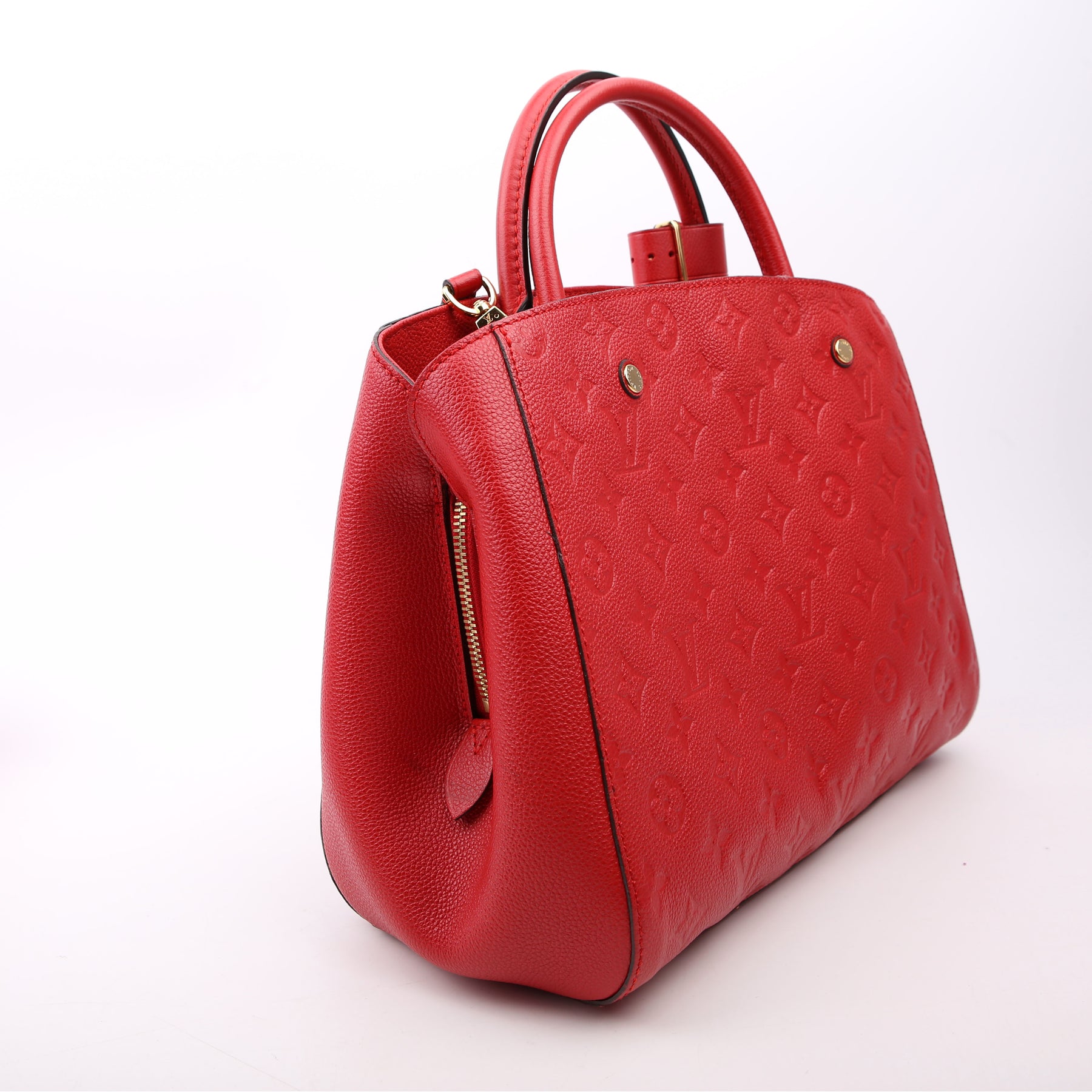 This pre-owned Louis Vuitton Montaigne MM is guaranteed 100% authentic. The exterior is in the classic Louis Vuitton Empreinte leather.