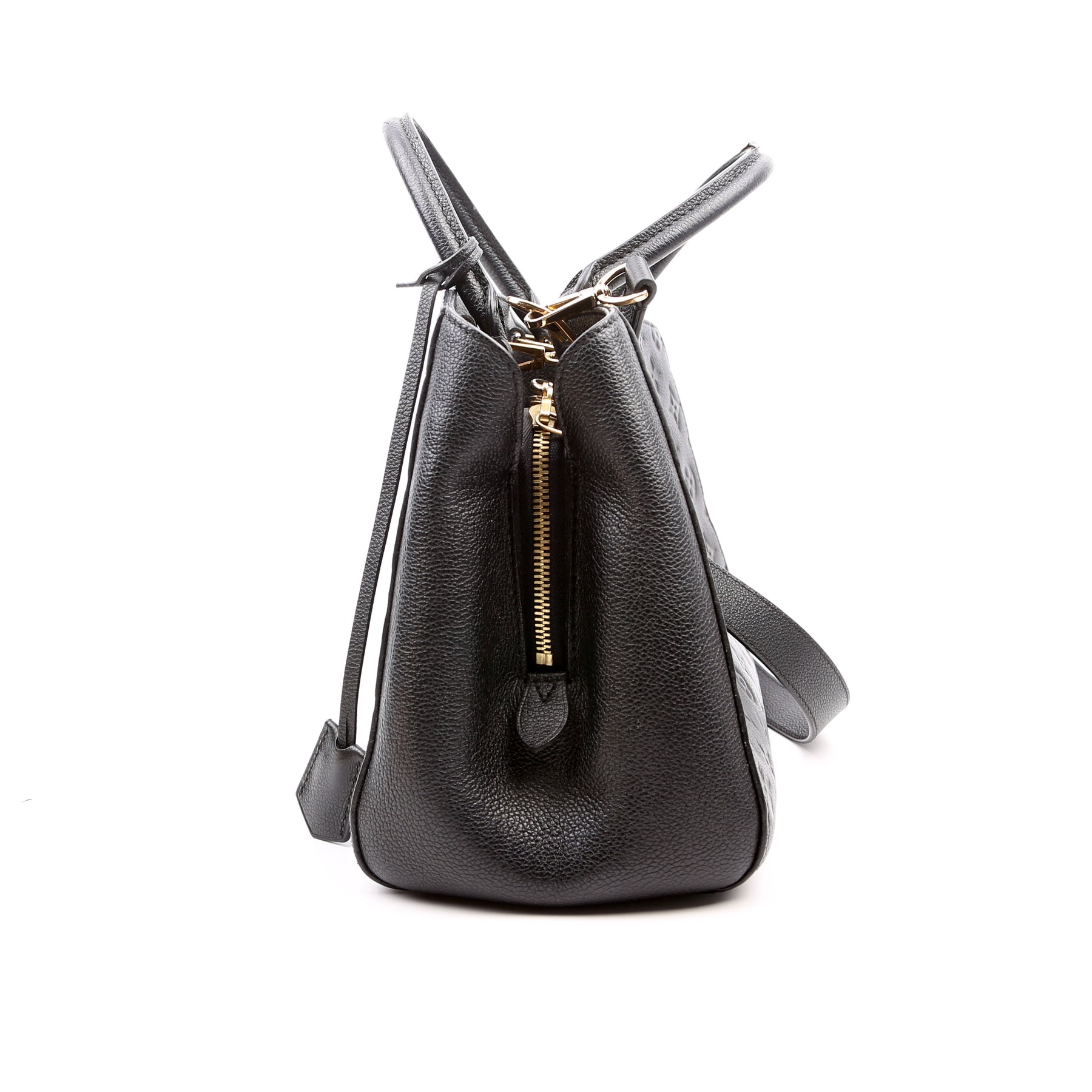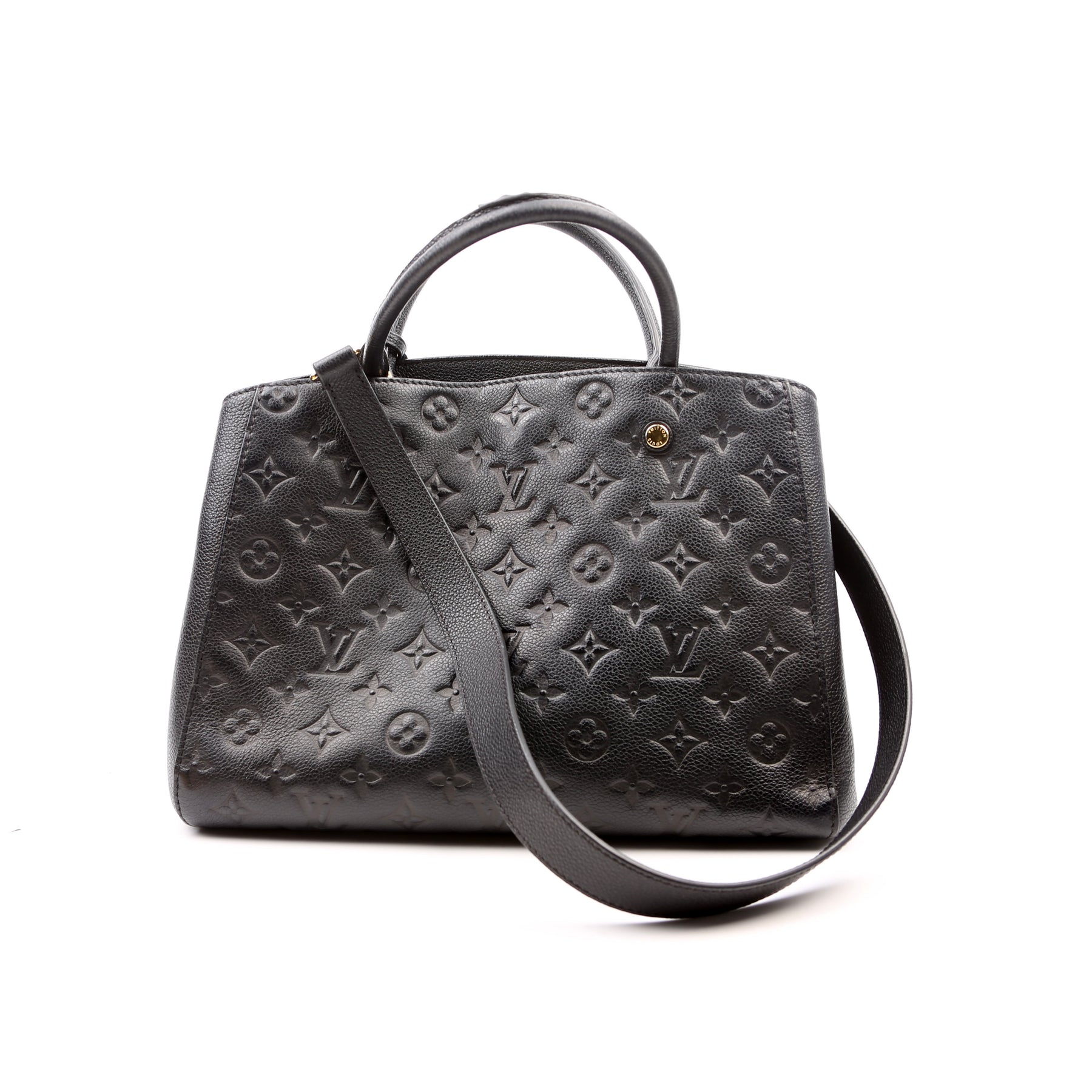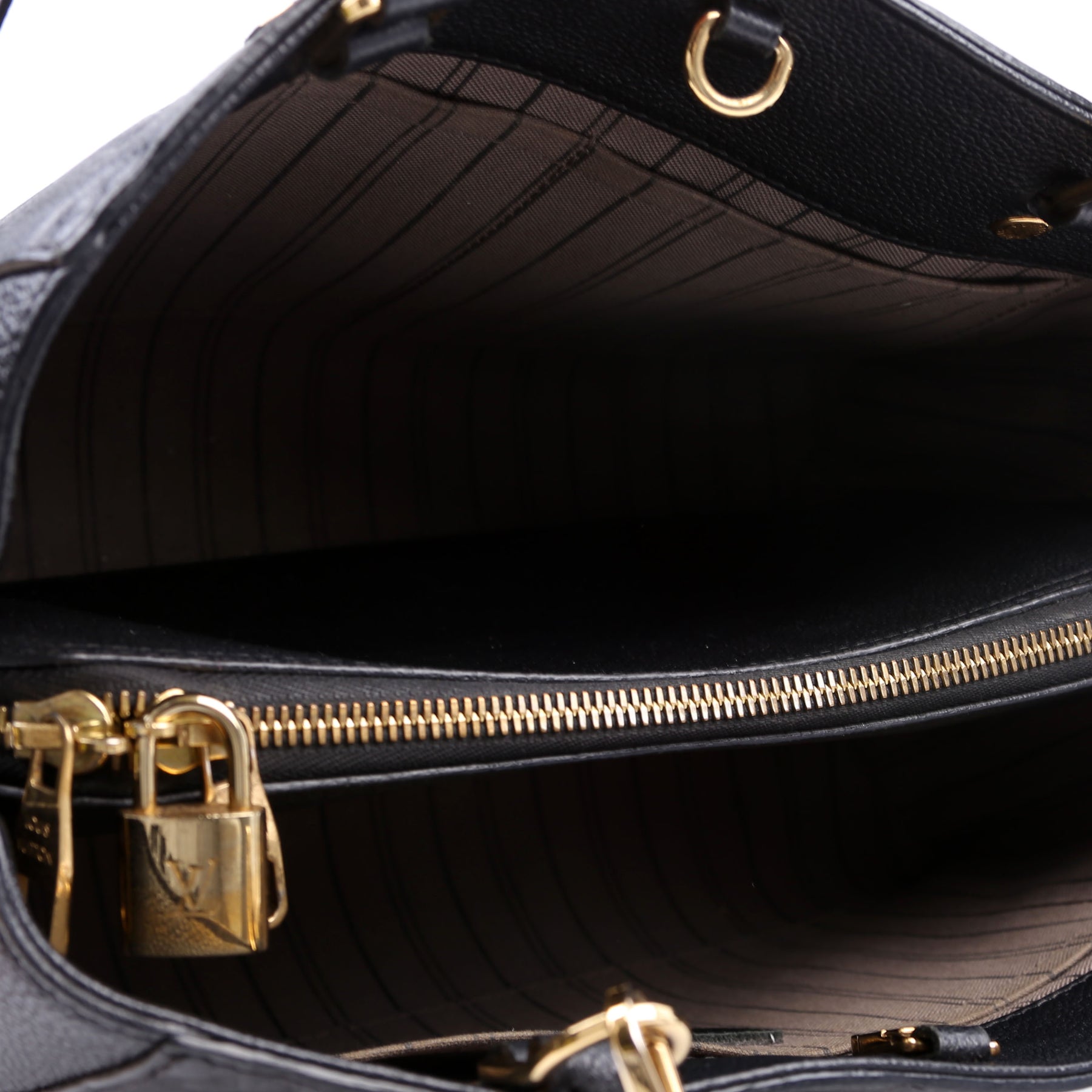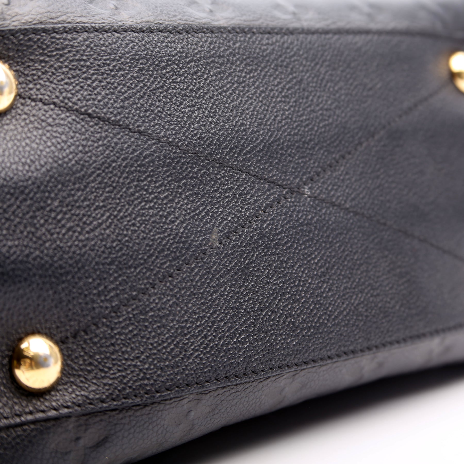 This pre-owned Louis Vuitton Montaigne MM is guaranteed 100% authentic. The exterior is in the classic Louis Vuitton Empreinte leather.