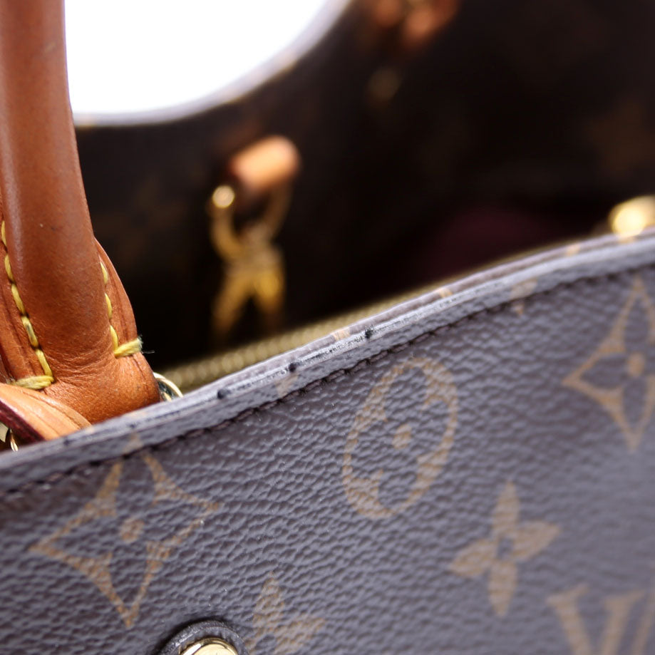 This pre-owned Louis Vuitton Montaigne MM is guaranteed 100% authentic. The exterior is in the classic Louis Vuitton Monogram coated canvas.