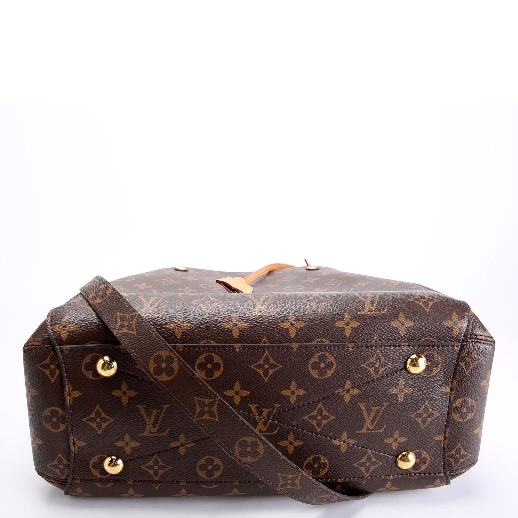 Handle: The leather shows light stains throughout.