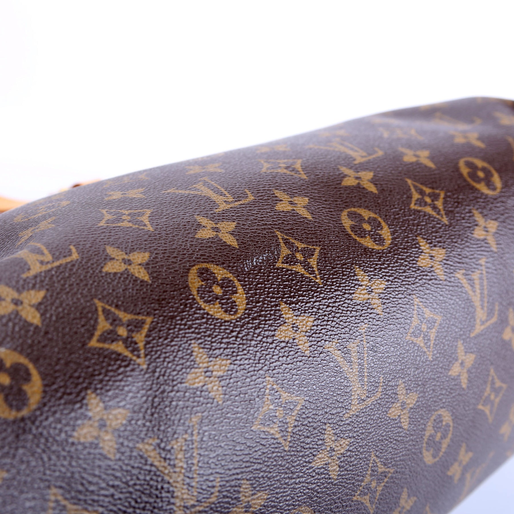 Handle: The leather handles shows light wear and discoloration.