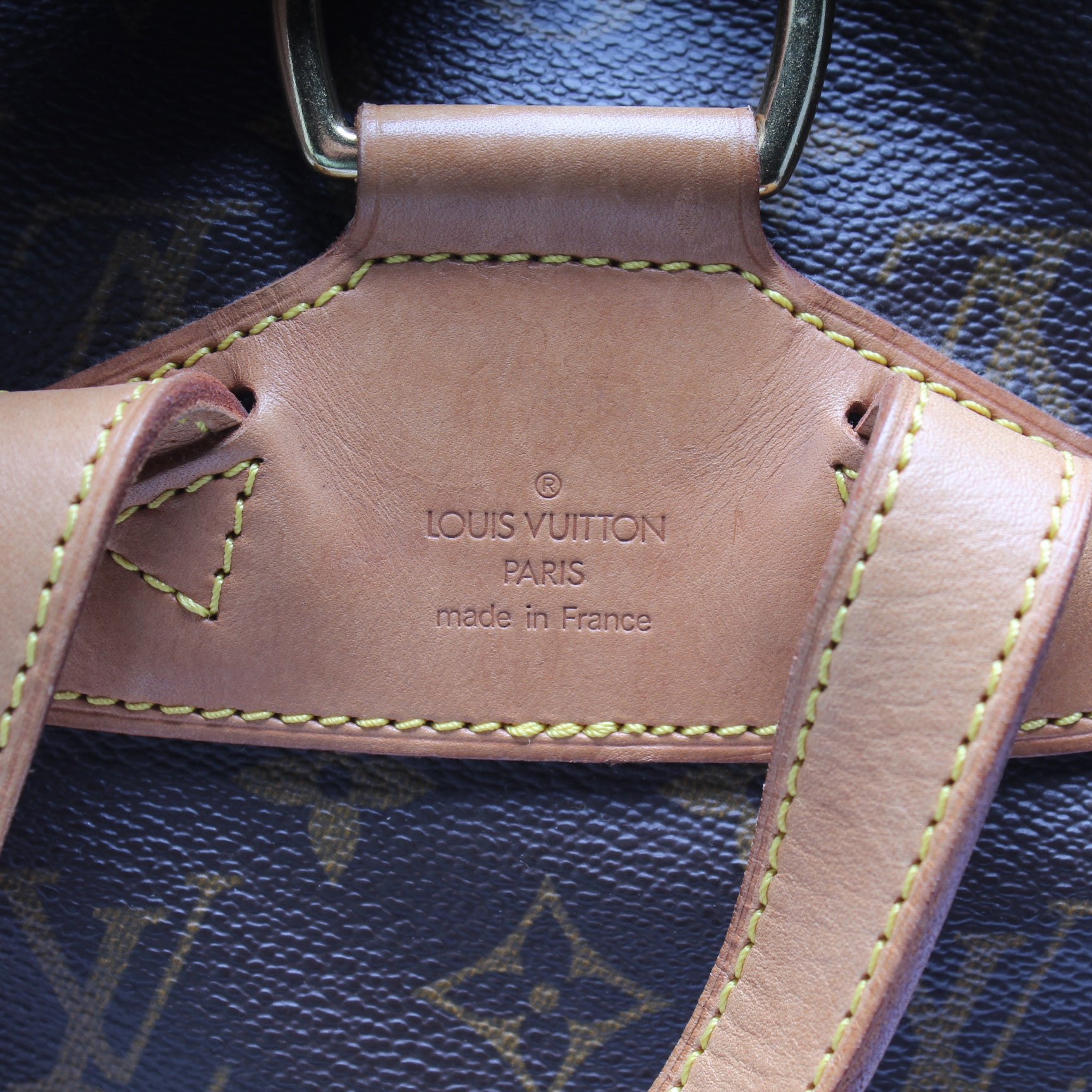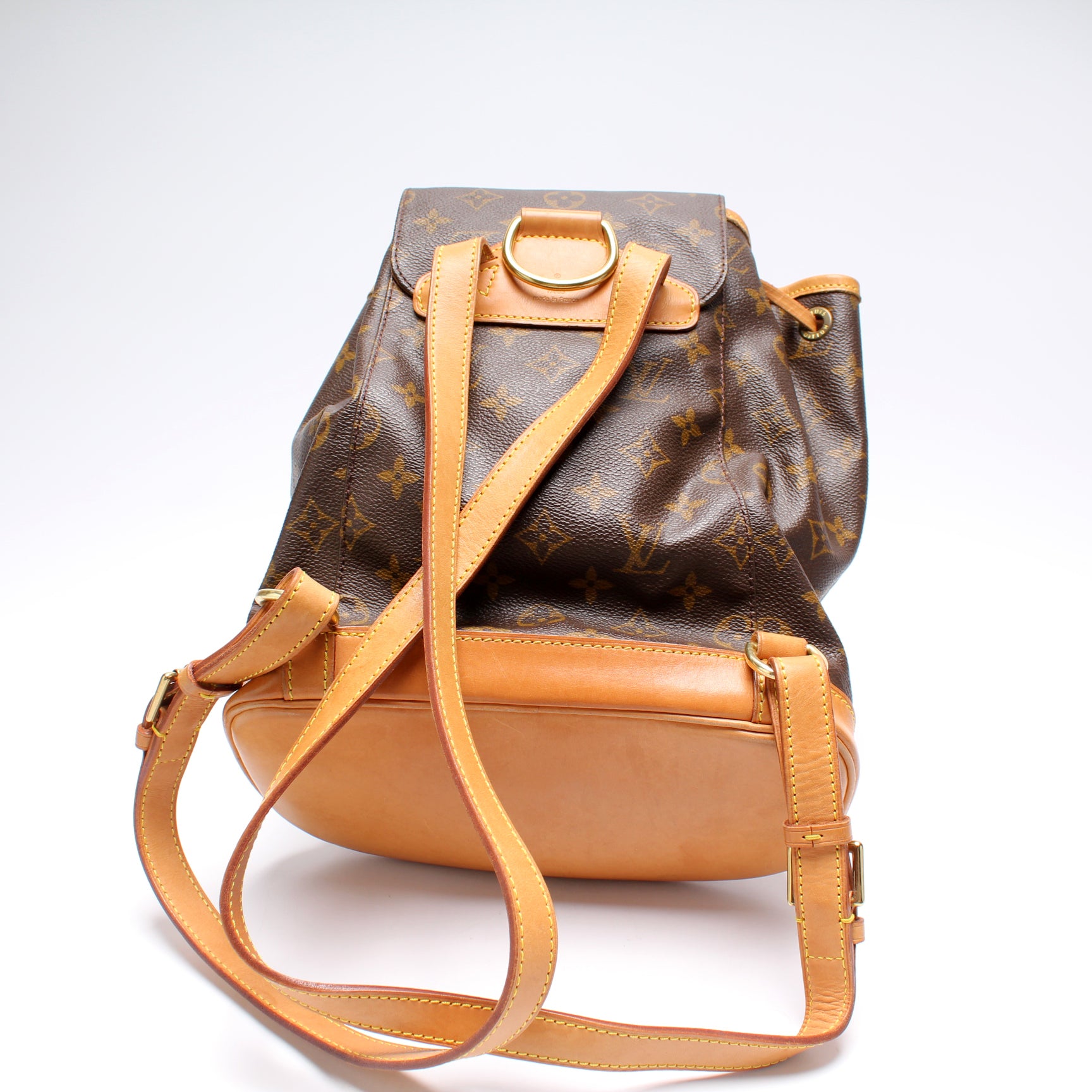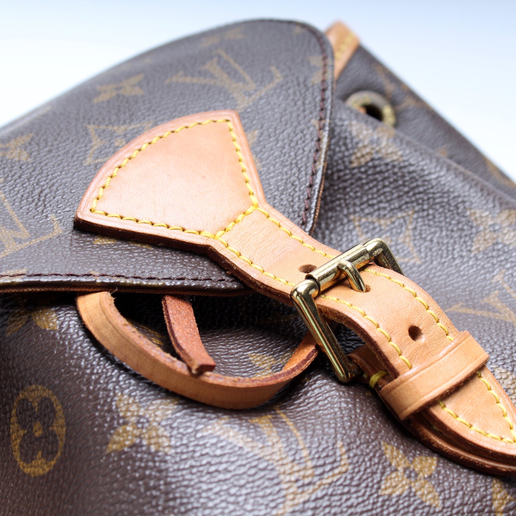 This pre-owned Louis Vuitton Montsouris MM is guaranteed 100% authentic. The exterior is in the classic Louis Vuitton Monogram coated canvas.