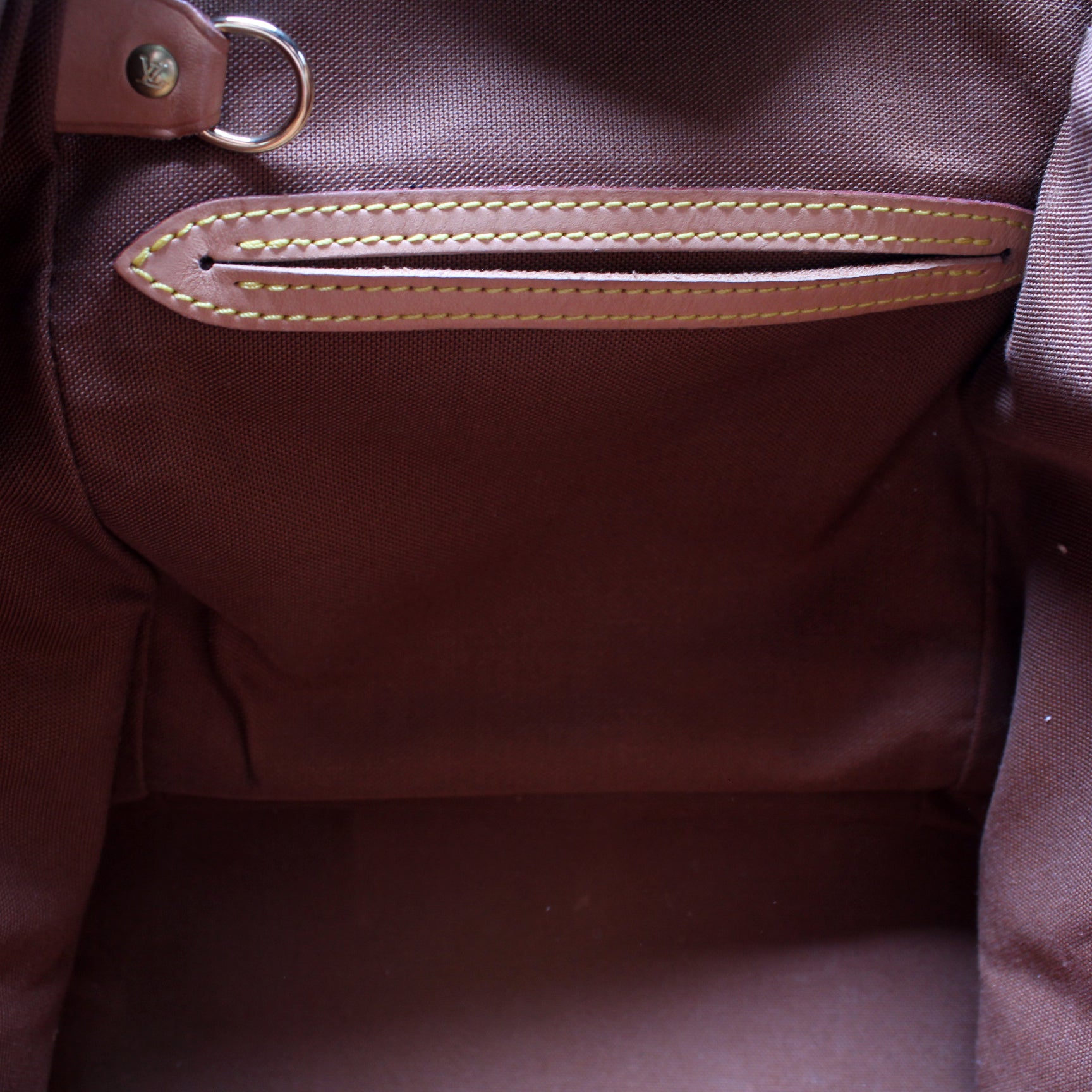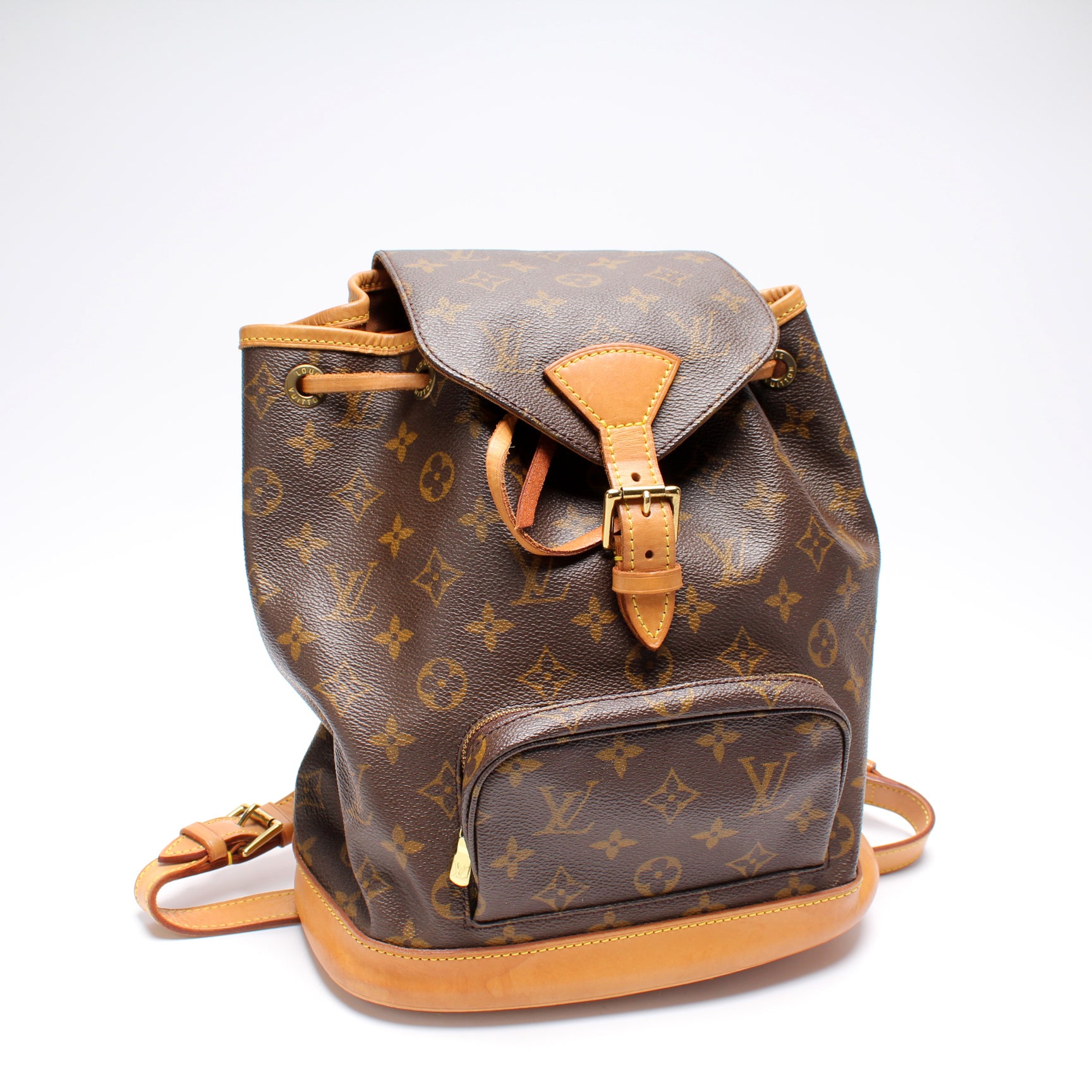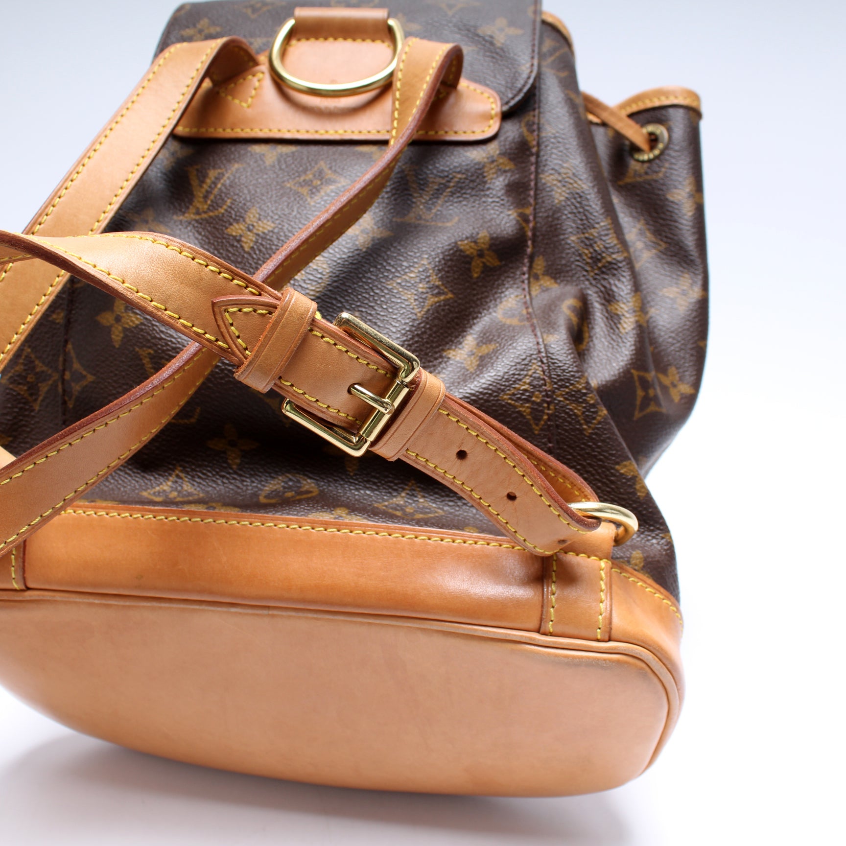 This pre-owned Louis Vuitton Montsouris MM is guaranteed 100% authentic. The exterior is in the classic Louis Vuitton Monogram coated canvas.