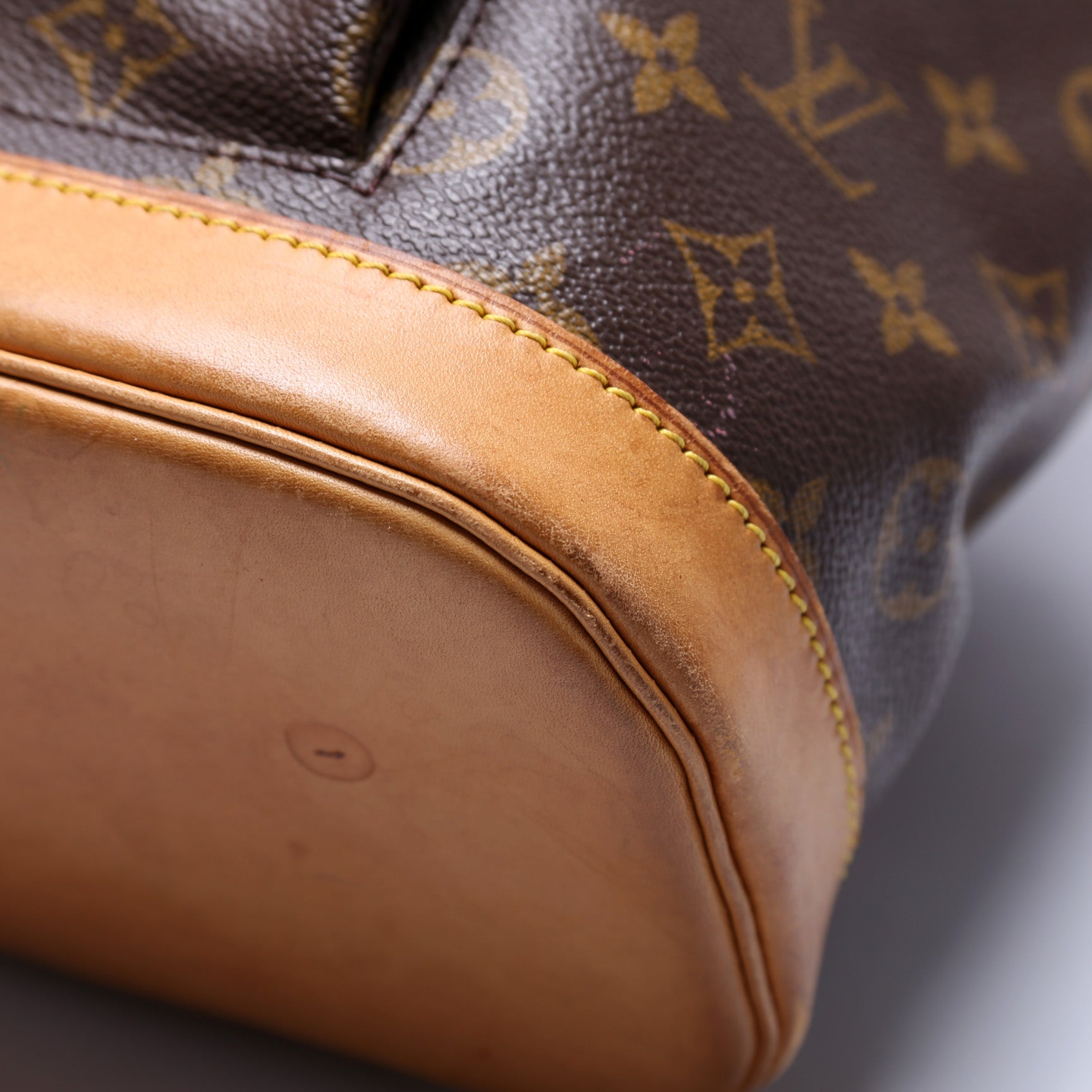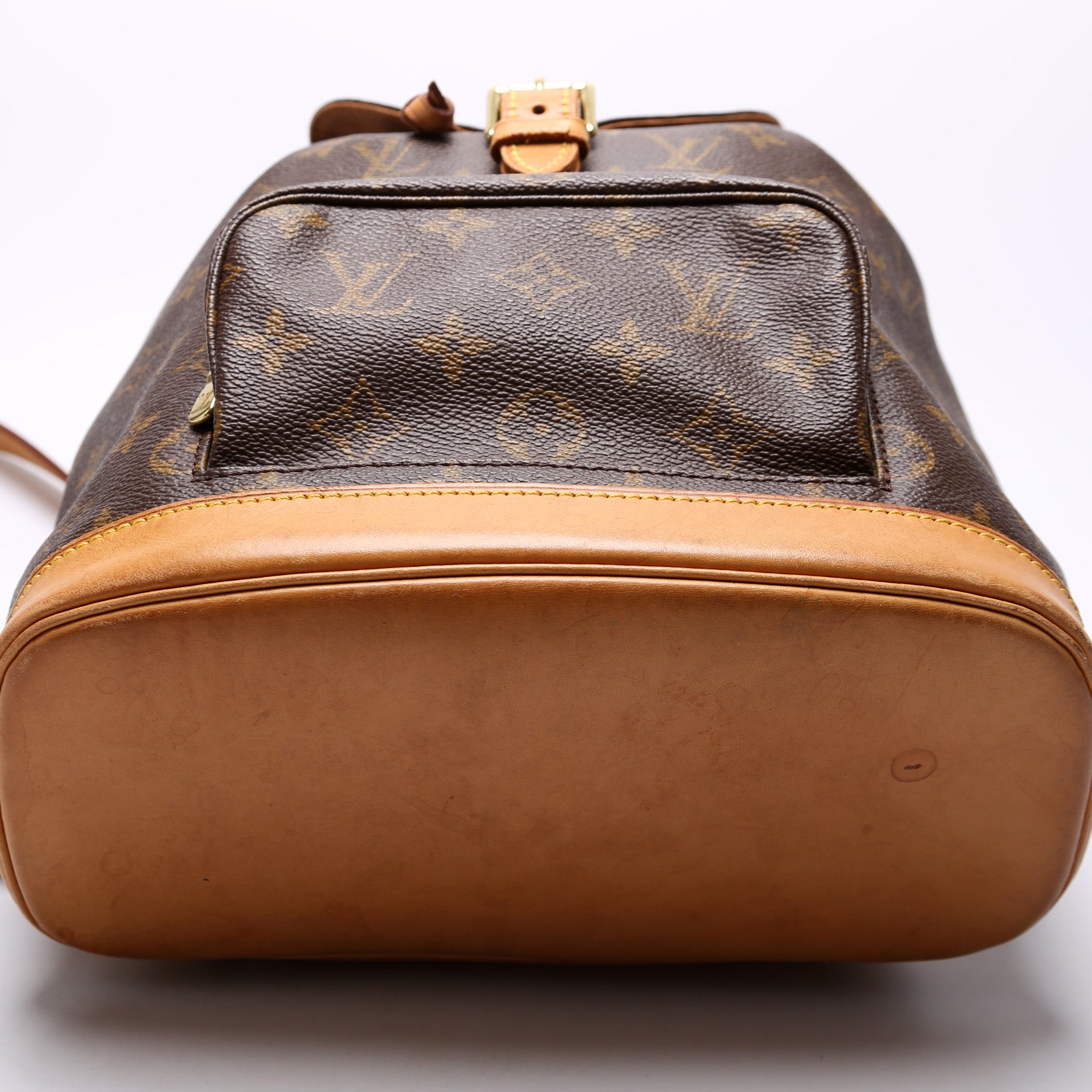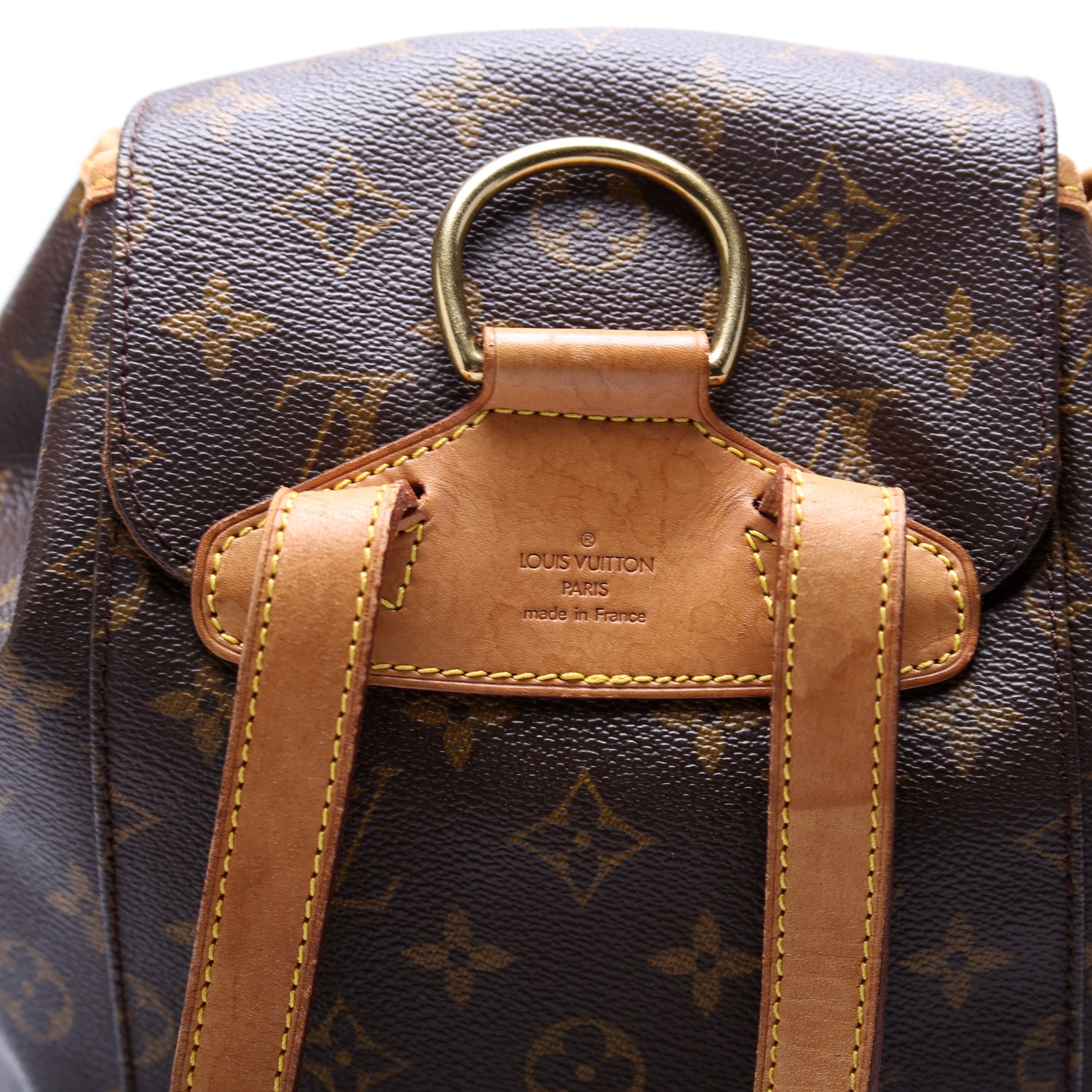 This pre-owned Louis Vuitton Montsouris MM is guaranteed 100% authentic. The exterior is in the classic Louis Vuitton Monogram coated canvas.