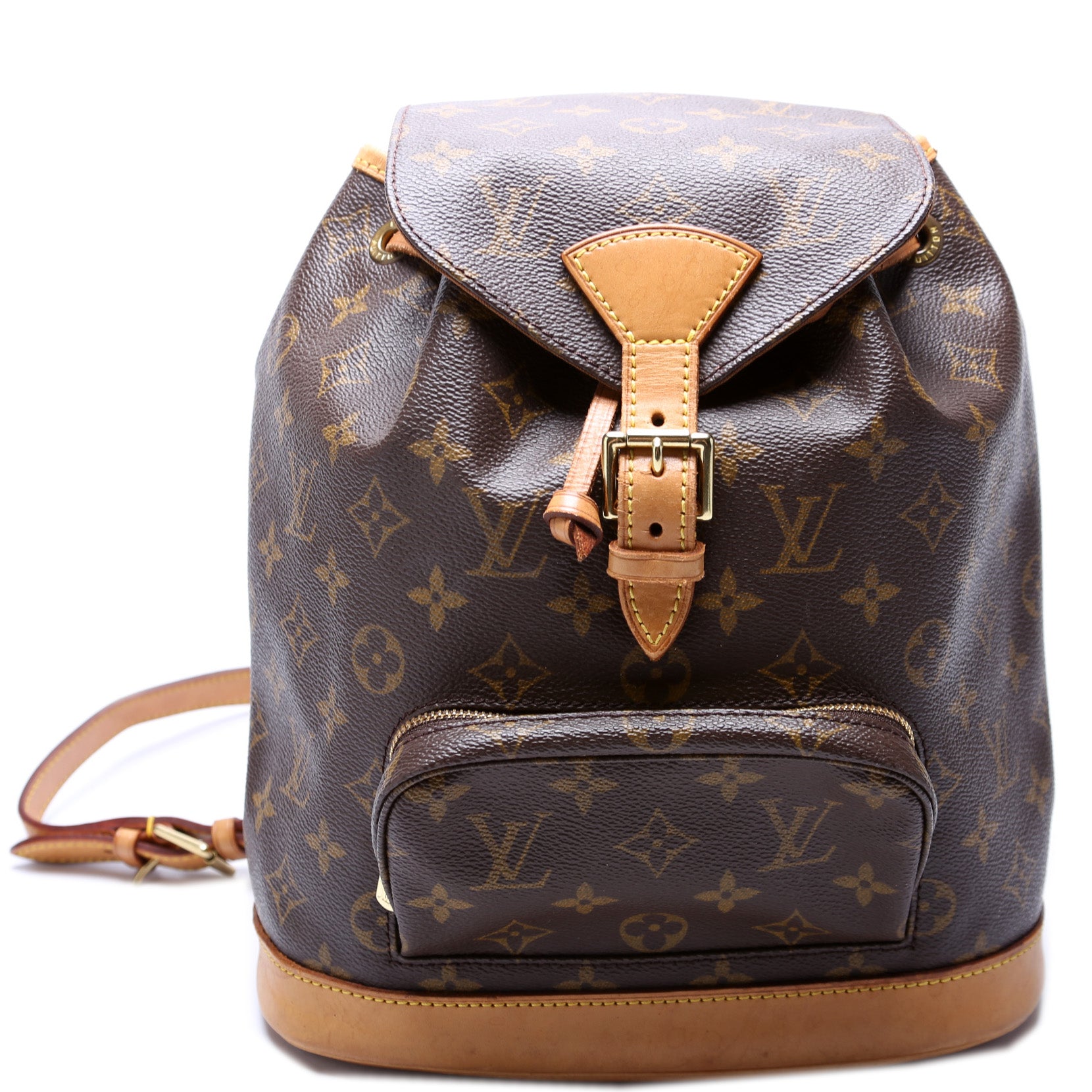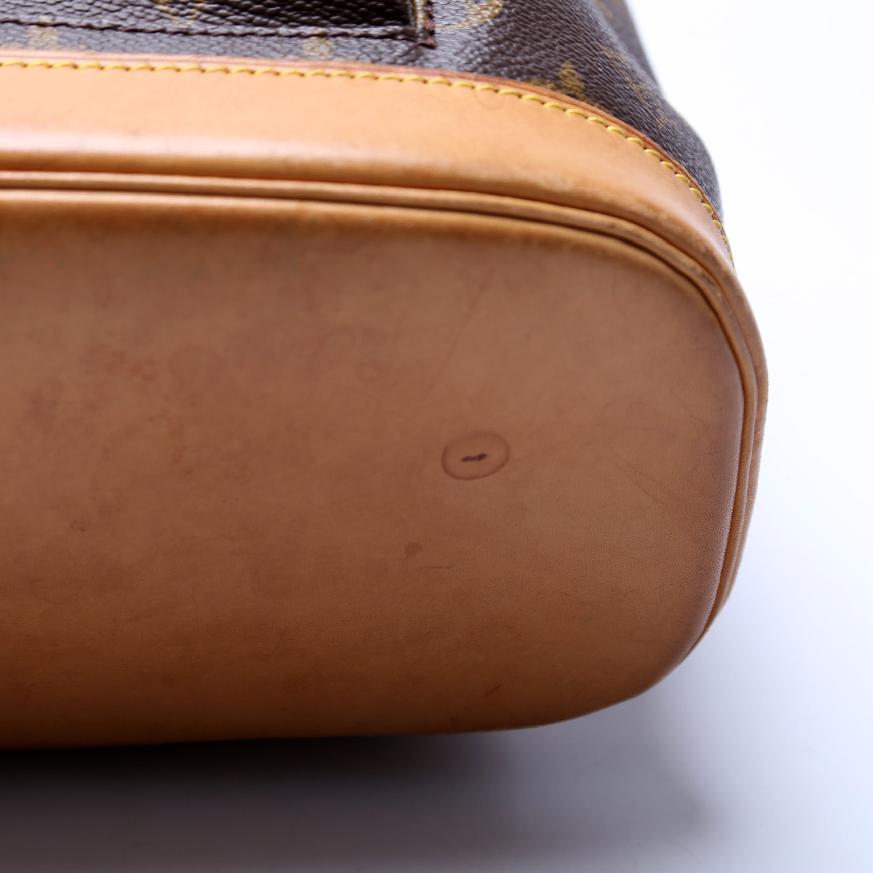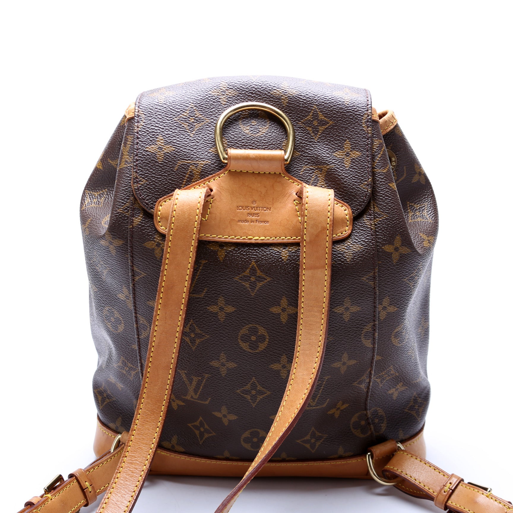 This pre-owned Louis Vuitton Montsouris MM is guaranteed 100% authentic. The exterior is in the classic Louis Vuitton Monogram coated canvas.
