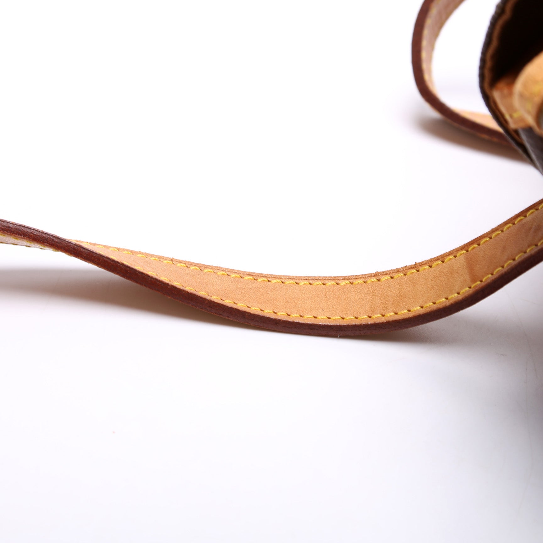 Exterior: The exterior Monogram coated canvas is free of any rips or cracks. The exterior features one zip closure pocket. The leather base and details shows minor discoloration and wear.