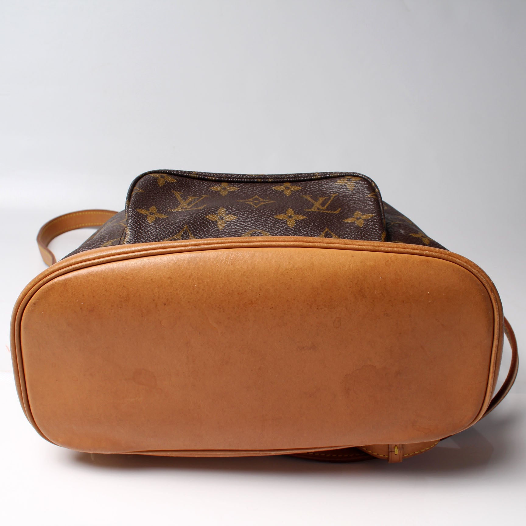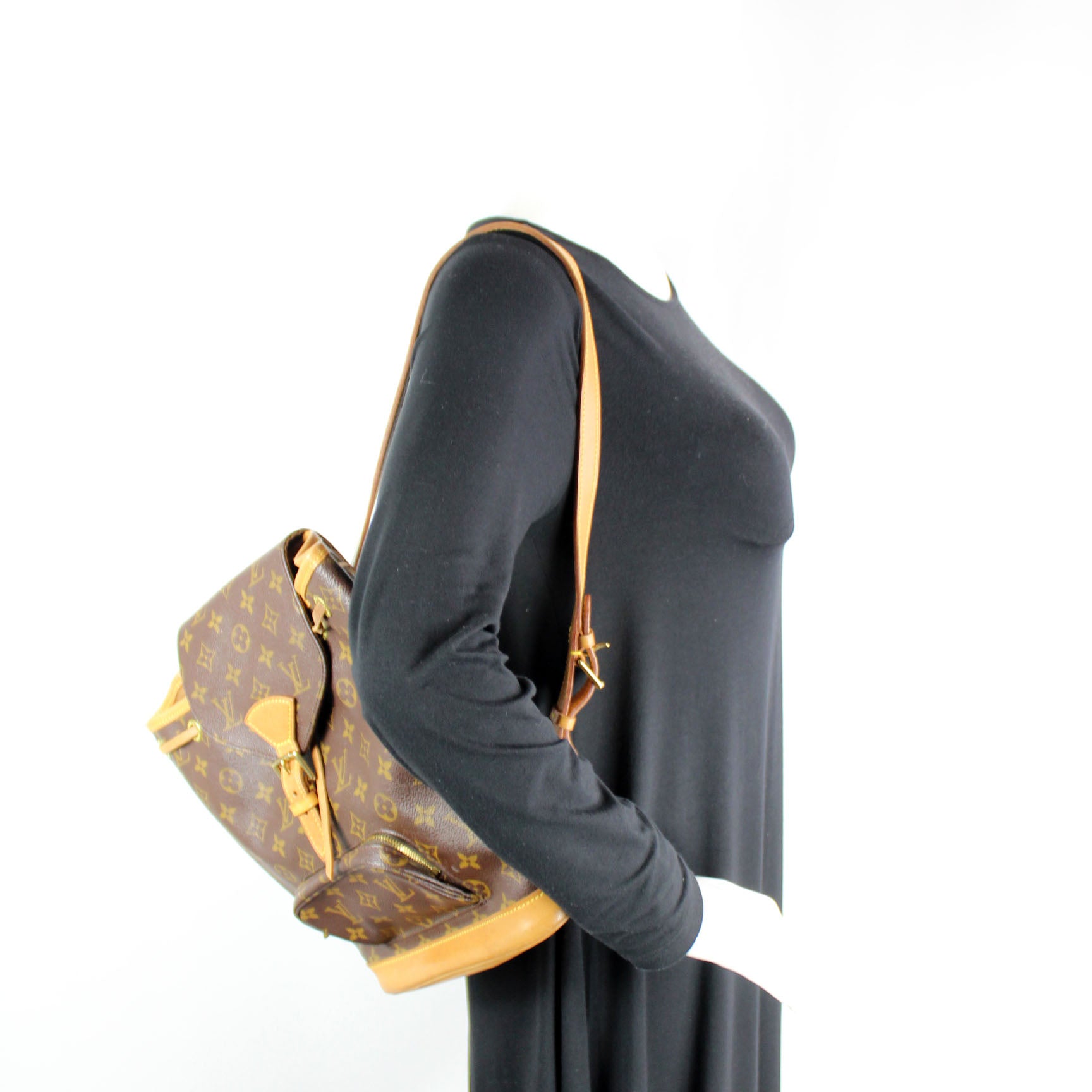 This pre-owned Louis Vuitton Montsouris MM is guaranteed 100% authentic. The exterior is in the classic Louis Vuitton Monogram coated canvas.