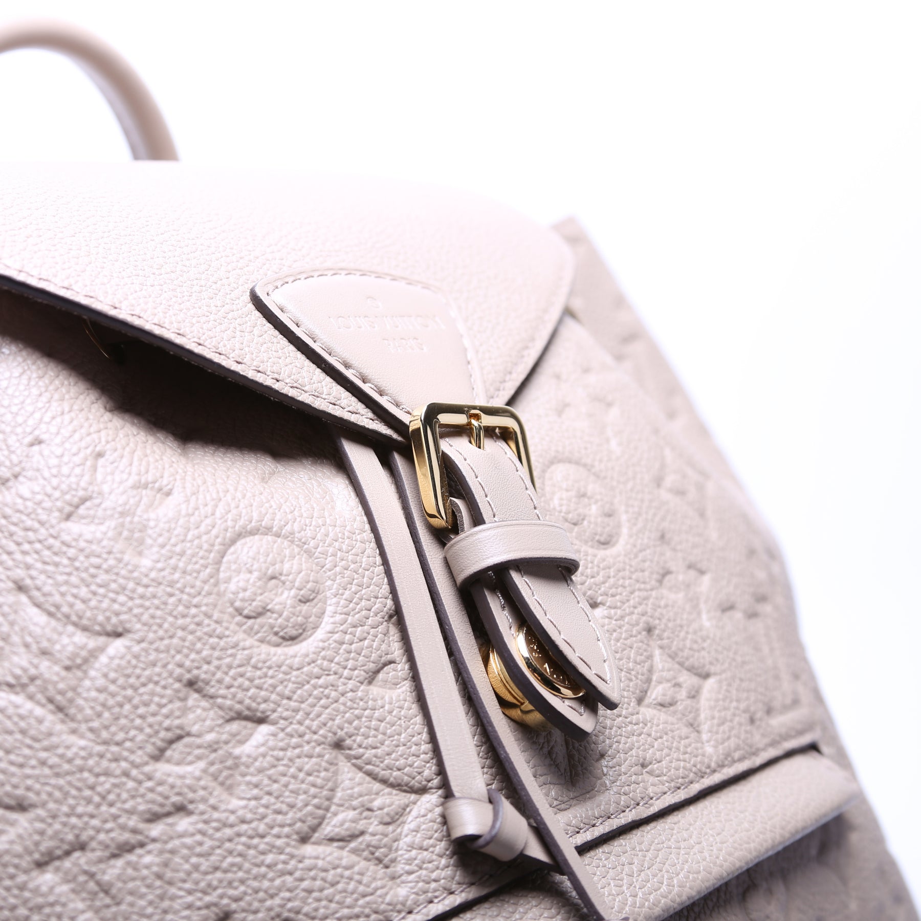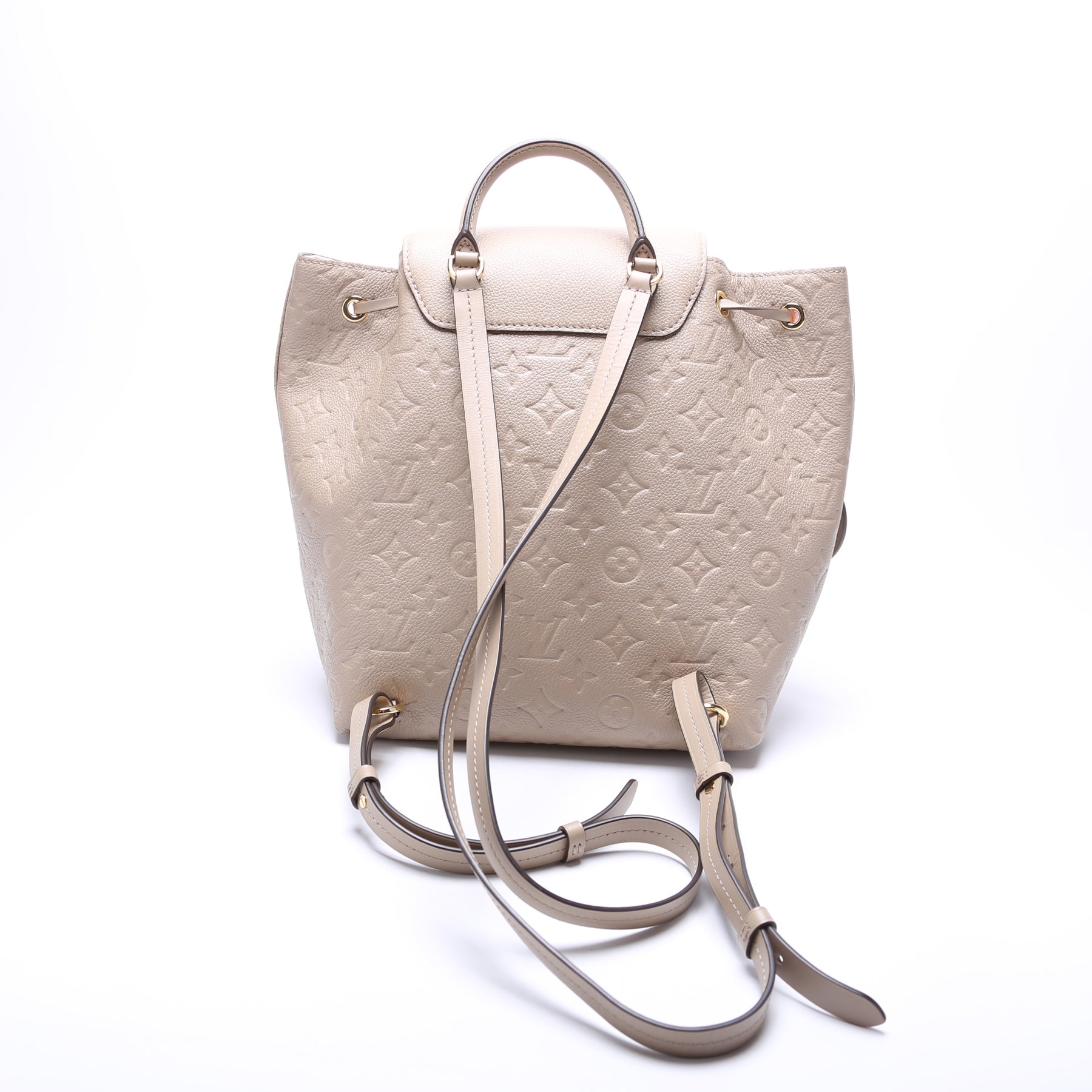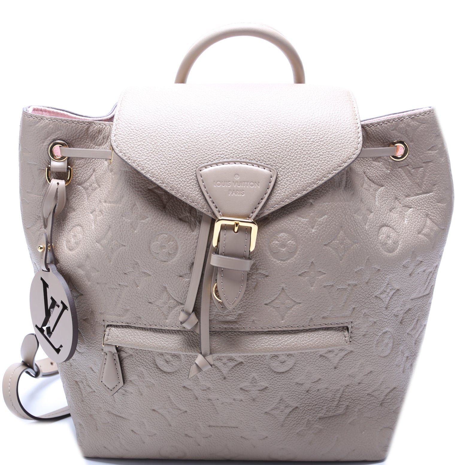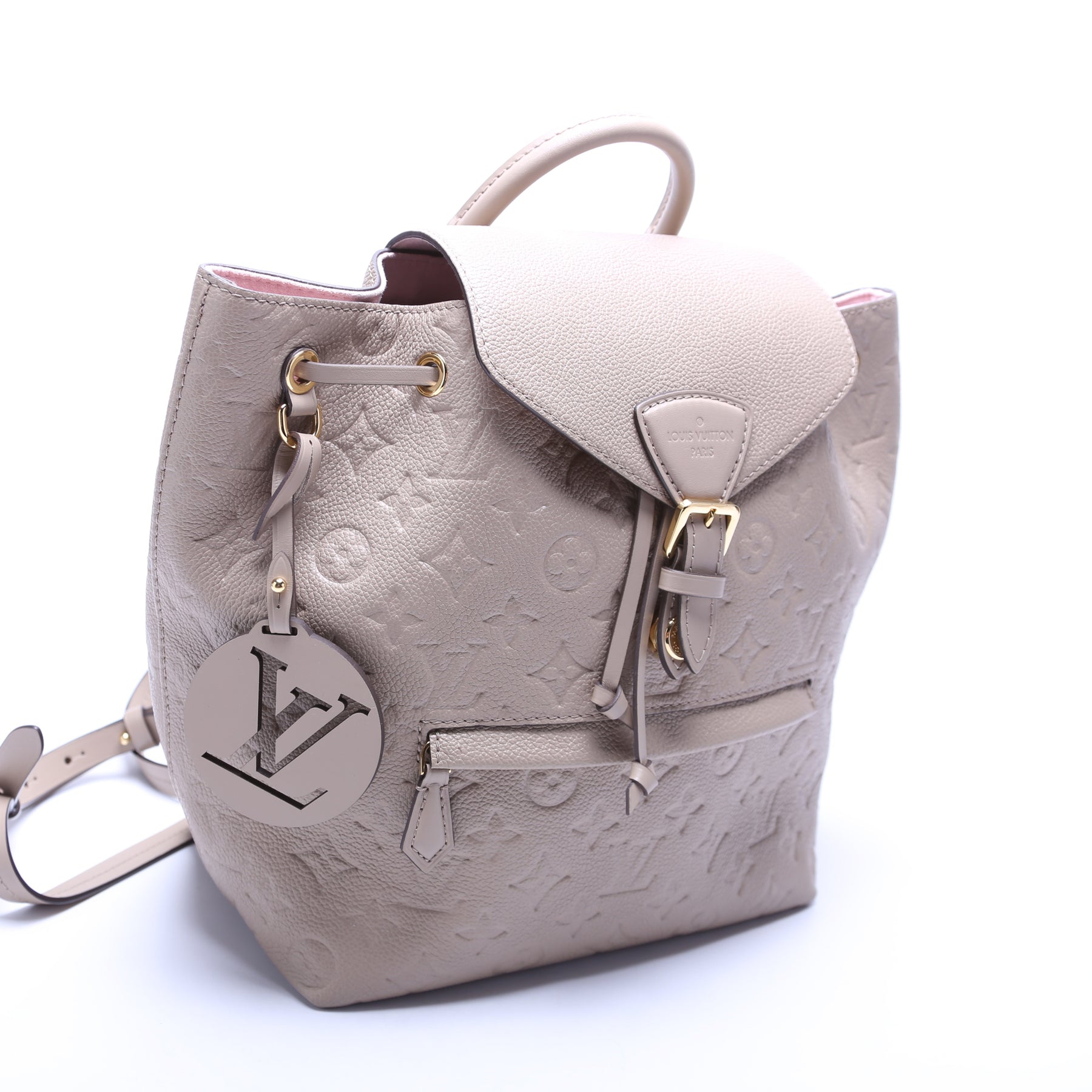 This pre-owned Louis Vuitton Montsouris NM PM is guaranteed 100% authentic. The exterior is in the classic Louis Vuitton Empreinte leather.