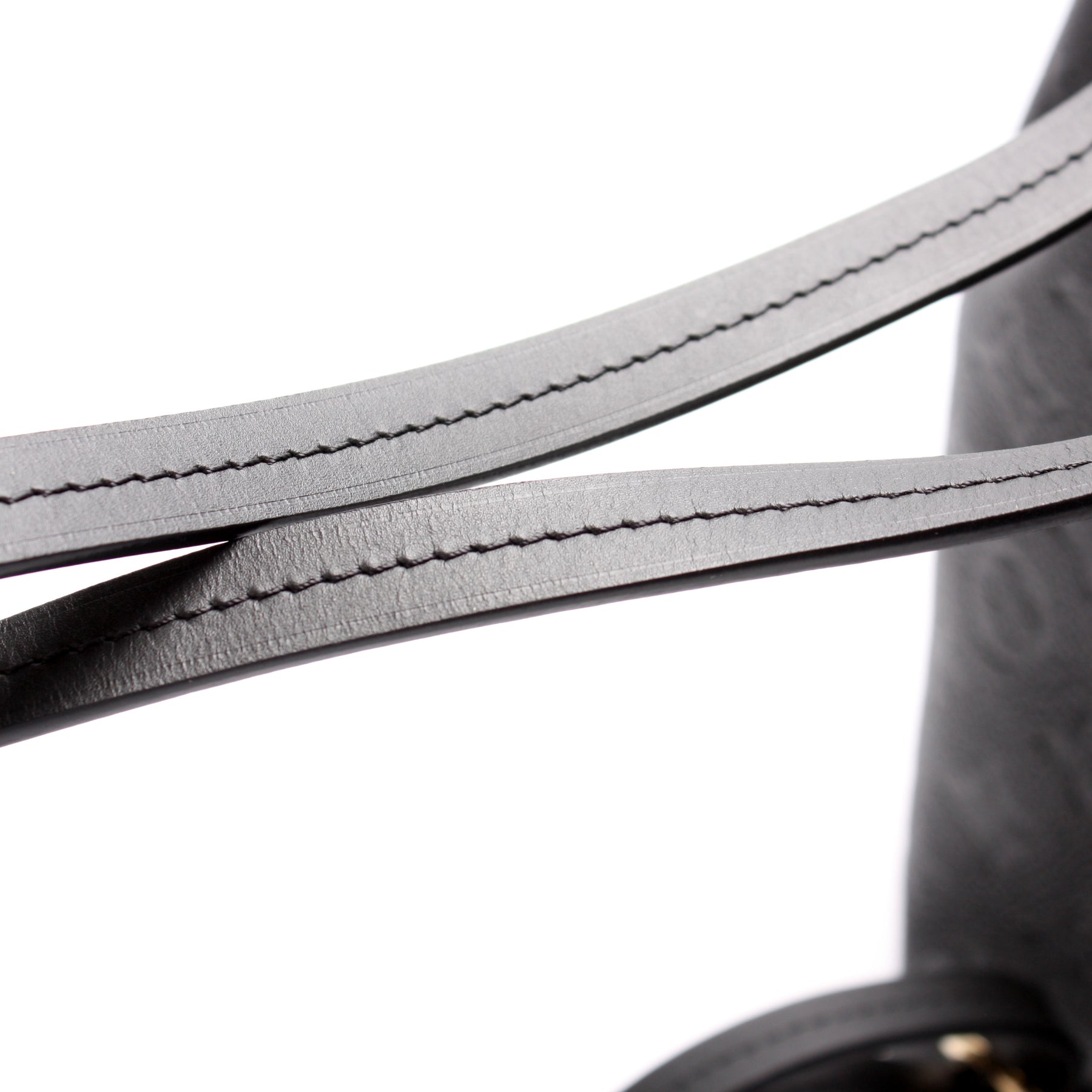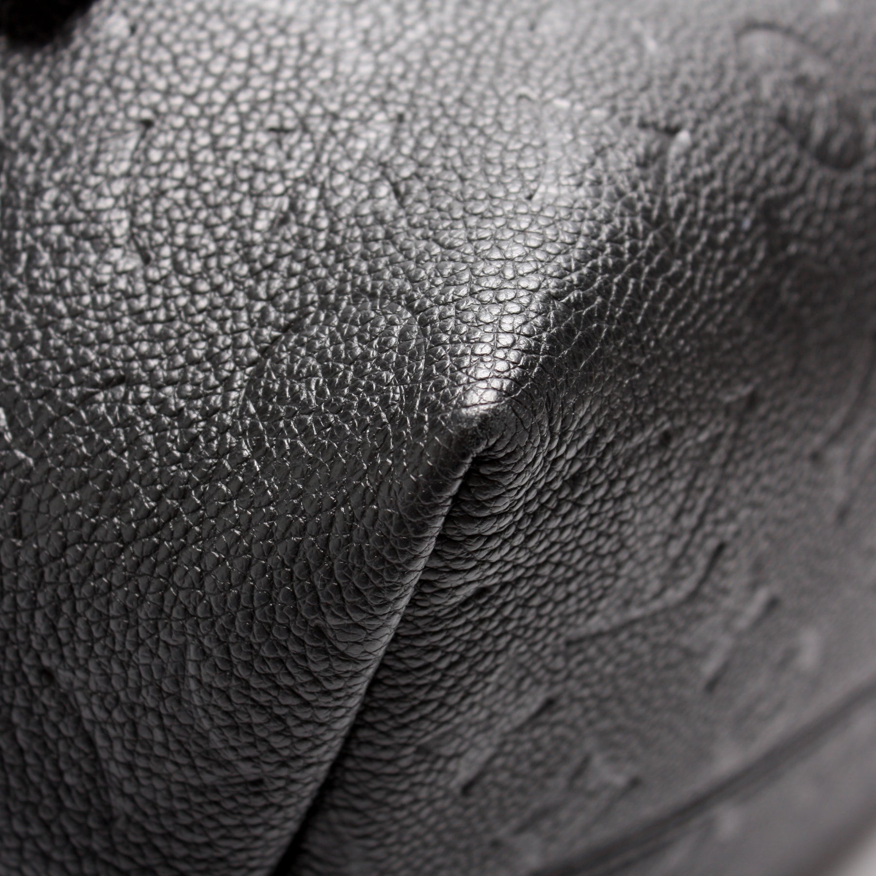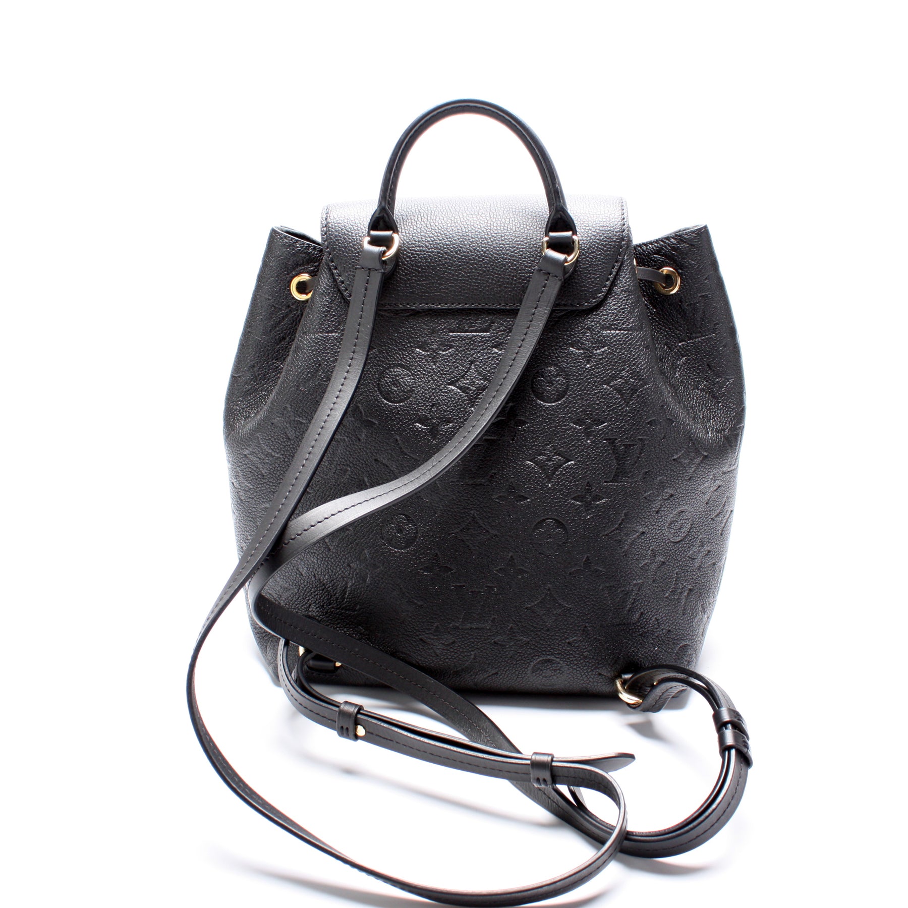 This pre-owned Louis Vuitton Montsouris NM PM is guaranteed 100% authentic. The exterior is in the classic Louis Vuitton Empreinte leather.