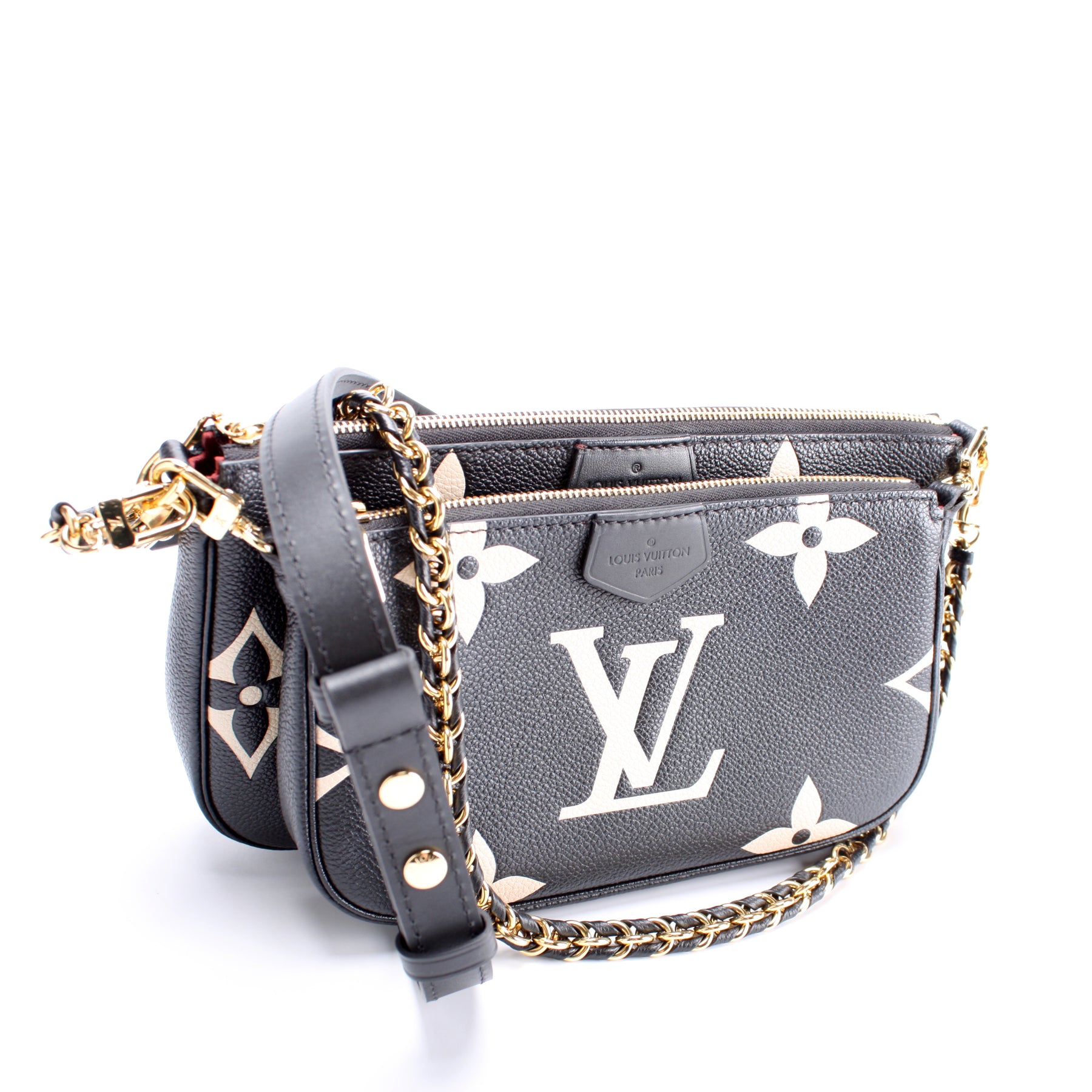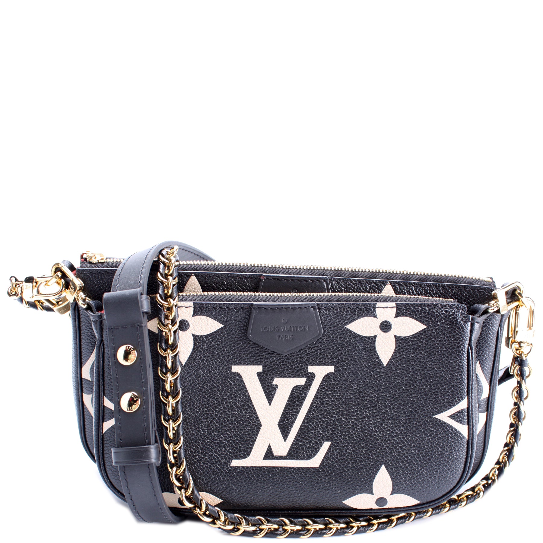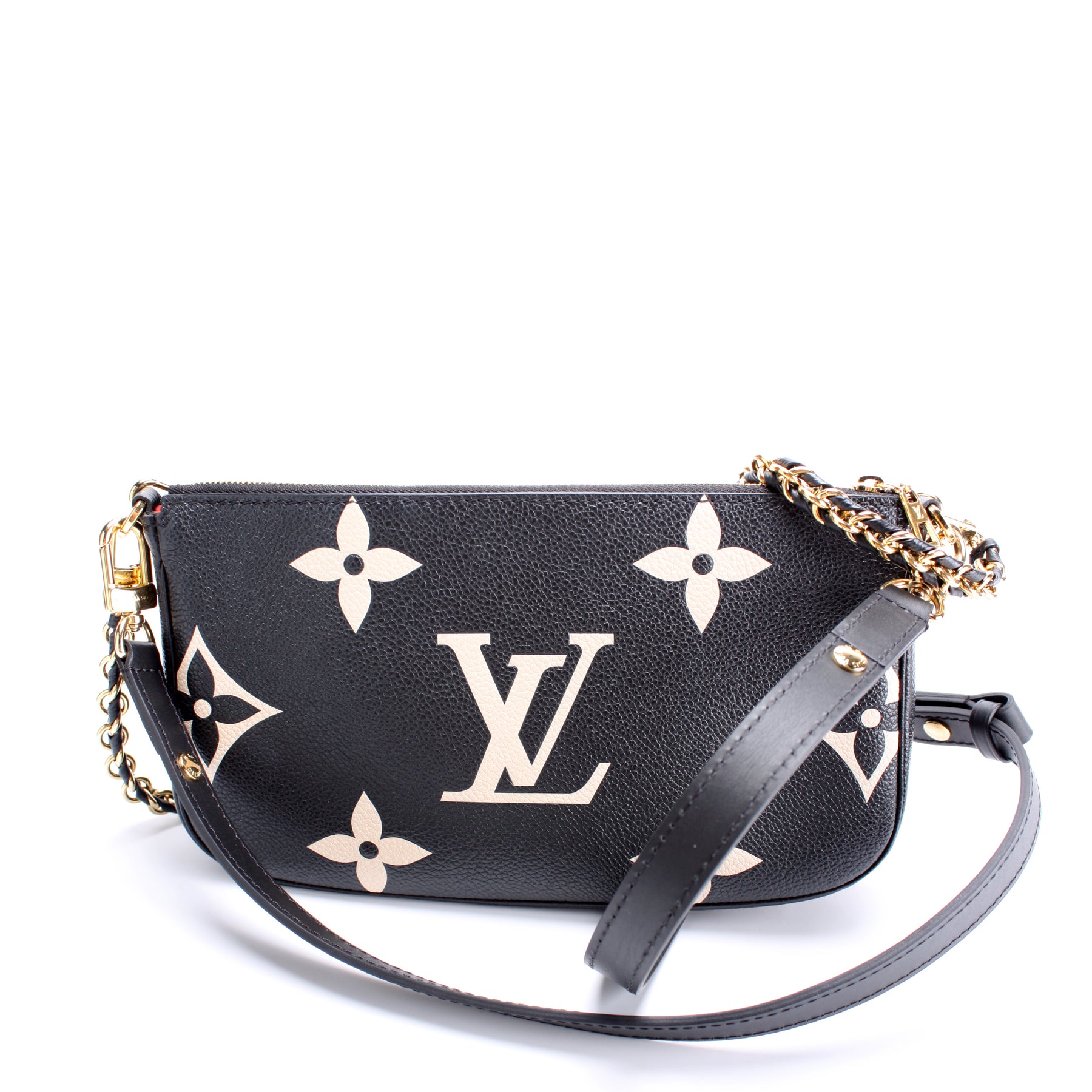 This pre-owned Louis Vuitton Multi Pochette is guaranteed 100% authentic. The exterior is in the classic Louis Vuitton Empreinte leather.