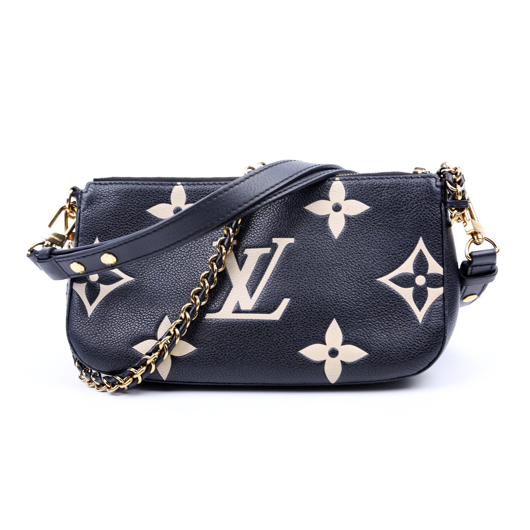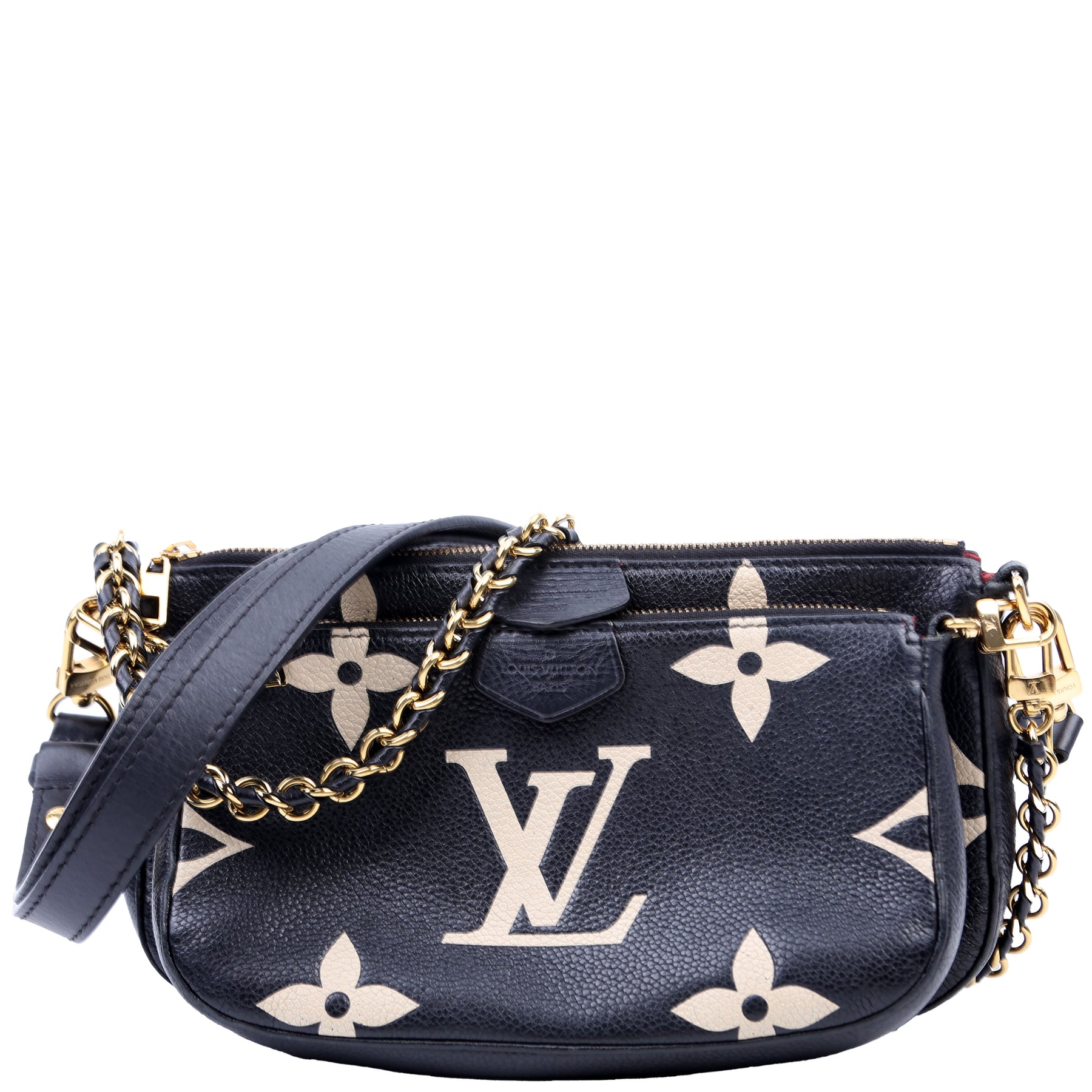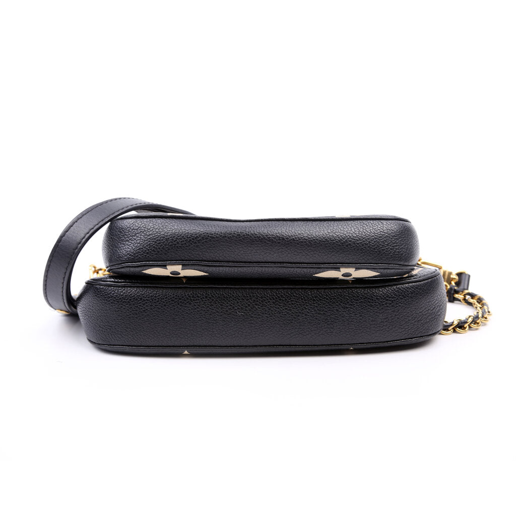 This pre-owned Louis Vuitton Multi Pochette is guaranteed 100% authentic. The exterior is in the classic Louis Vuitton Bicolor Empreinte leather.