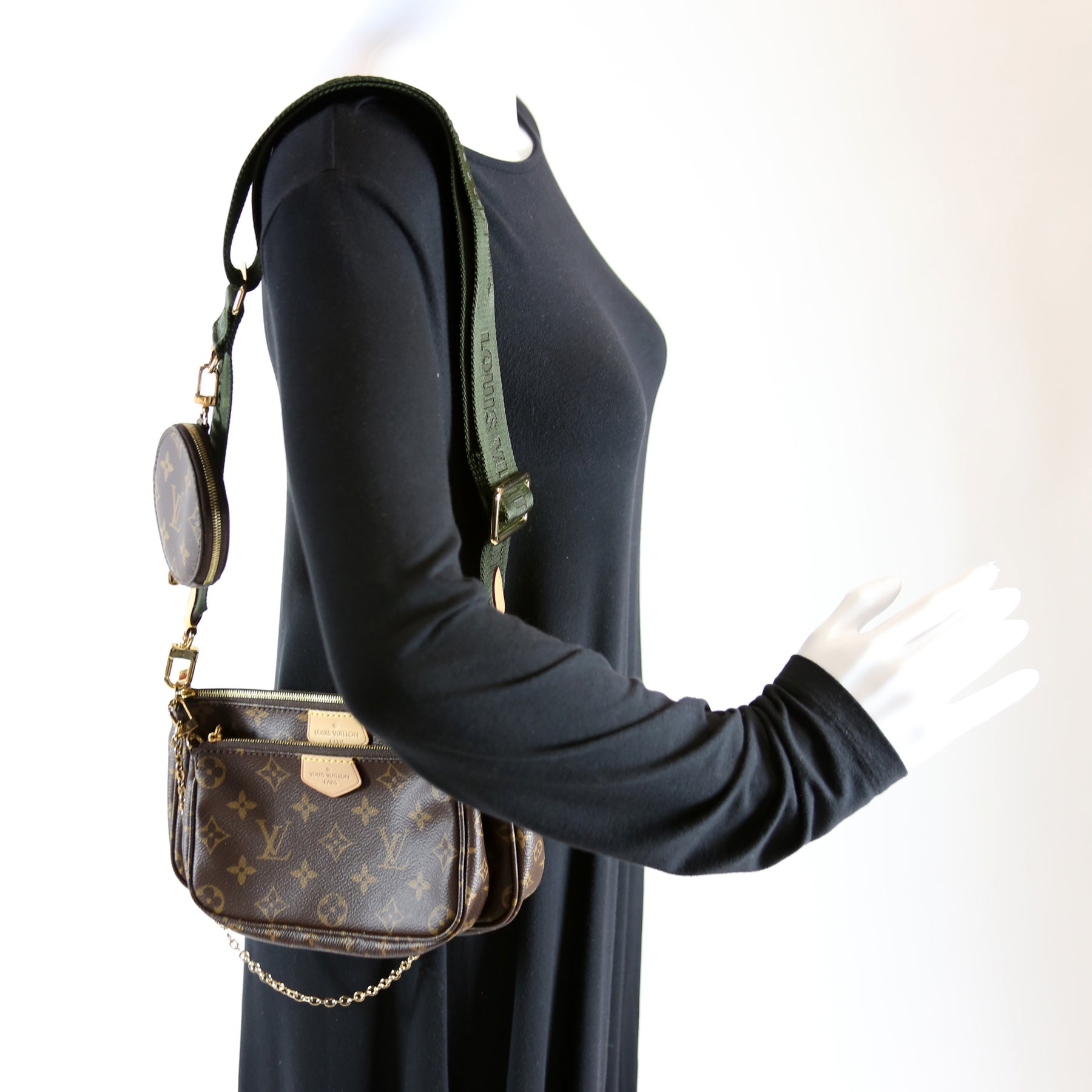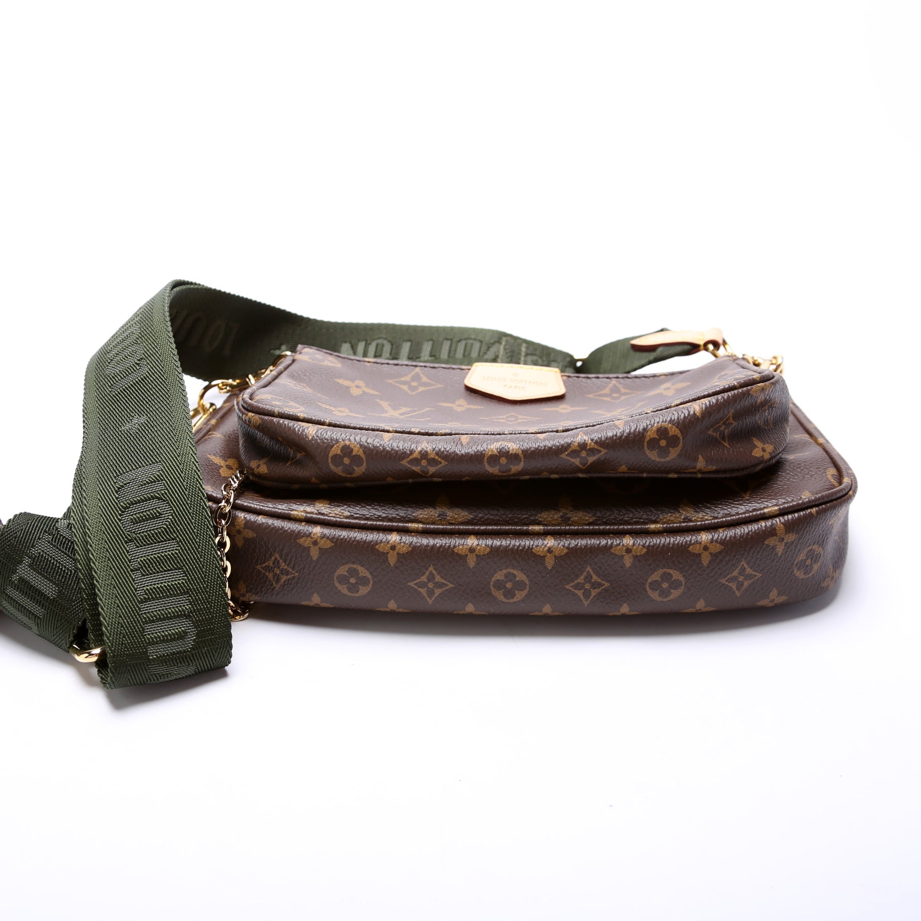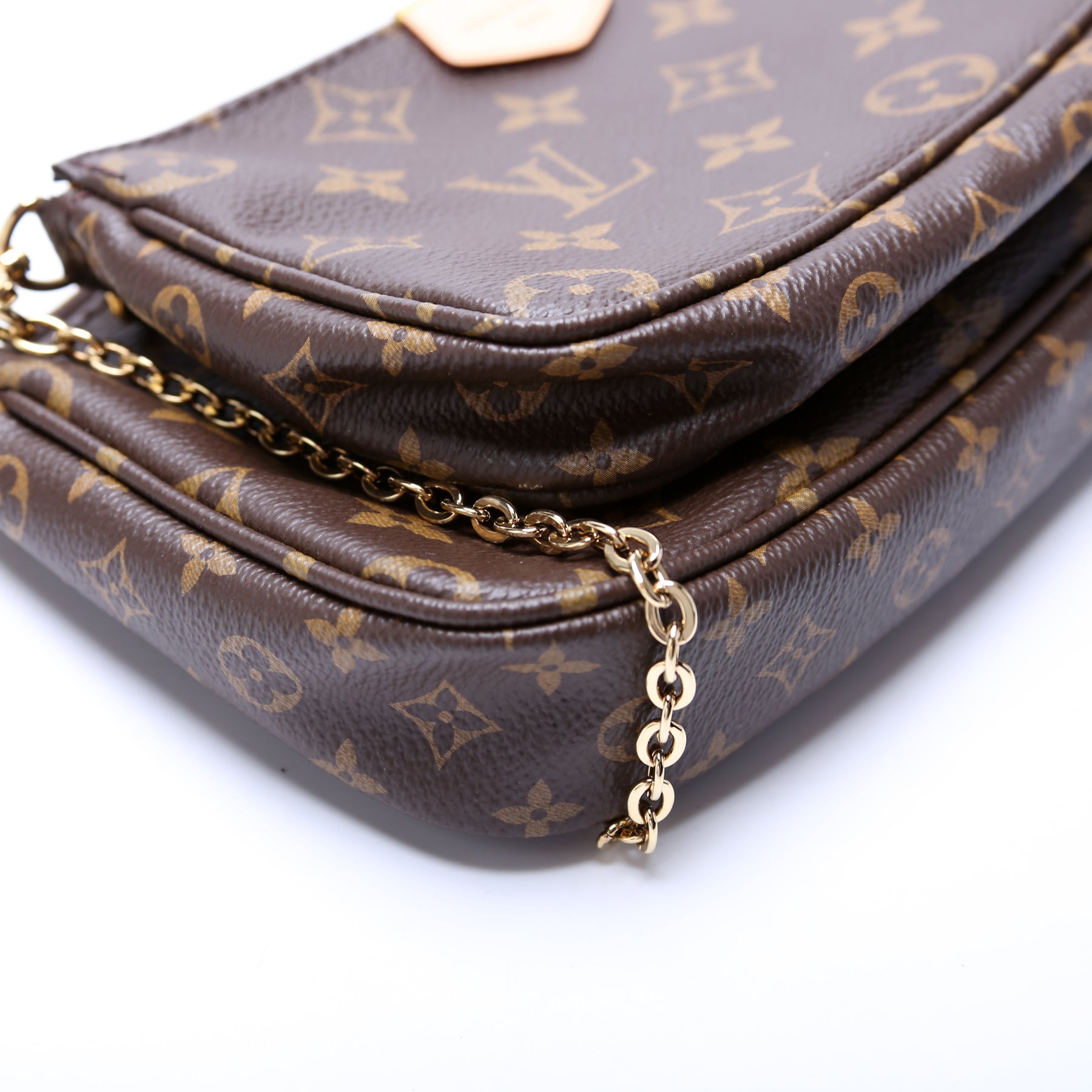 This pre-owned Louis Vuitton Multi Pochette is guaranteed 100% authentic. The exterior is in the classic Louis Vuitton Monogram coated canvas.