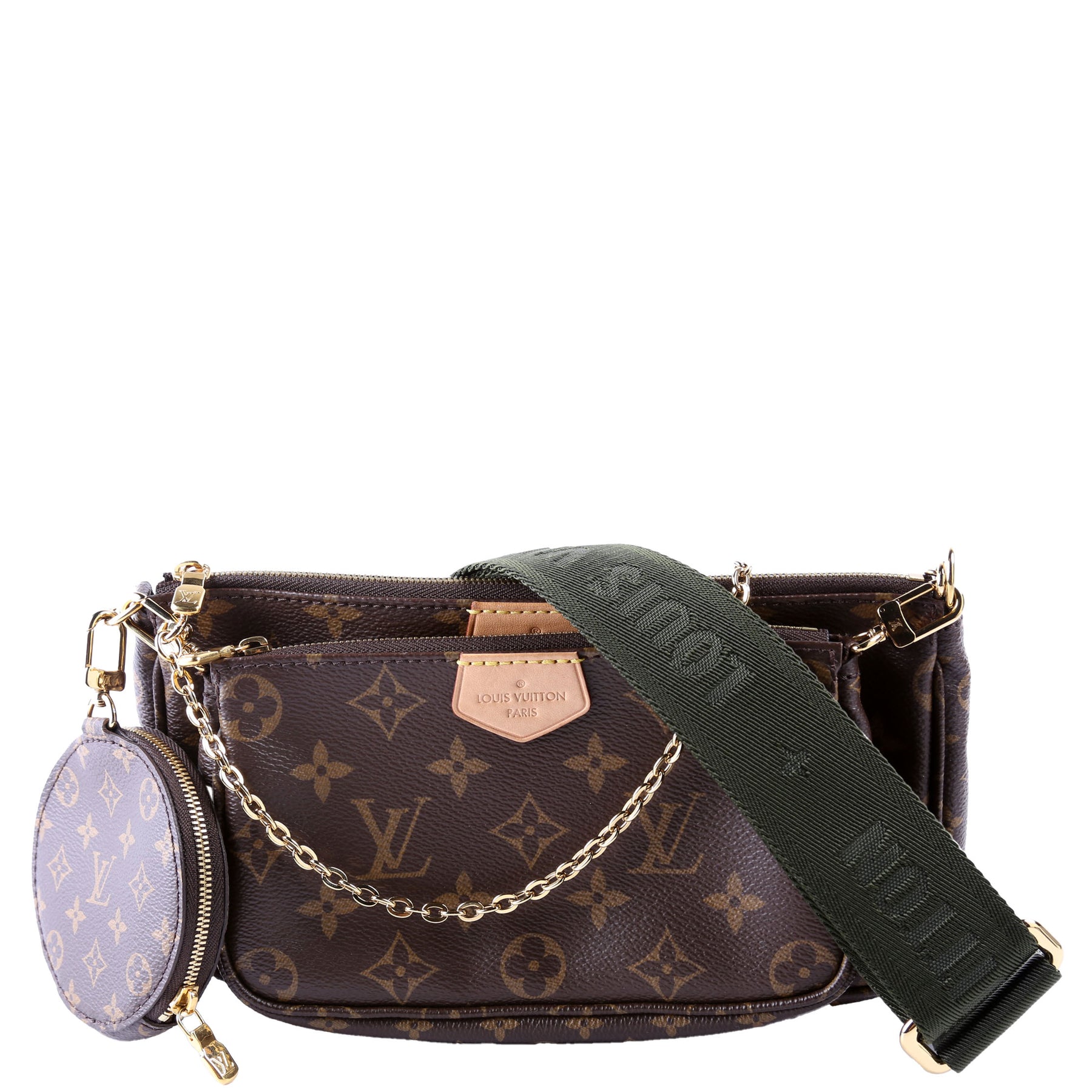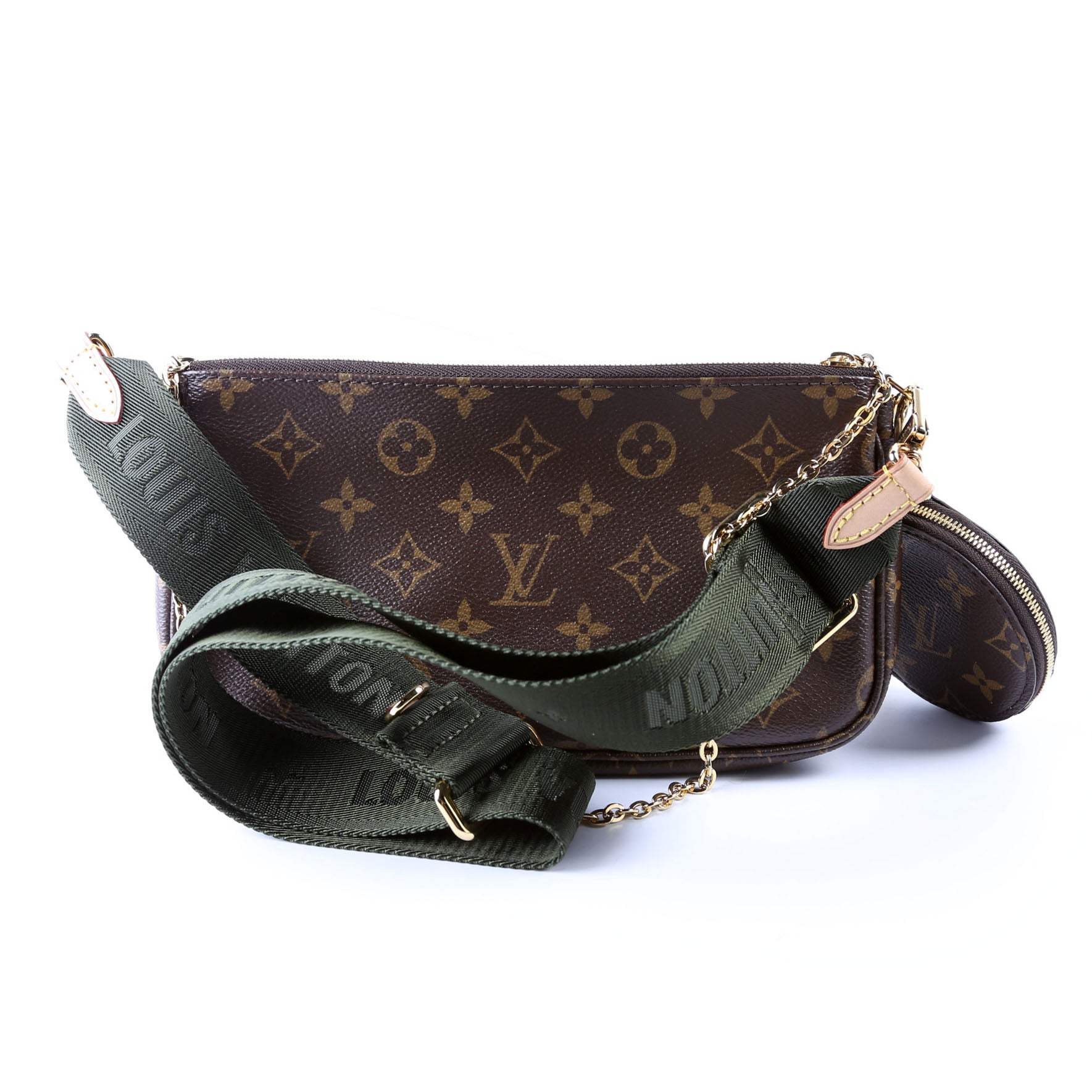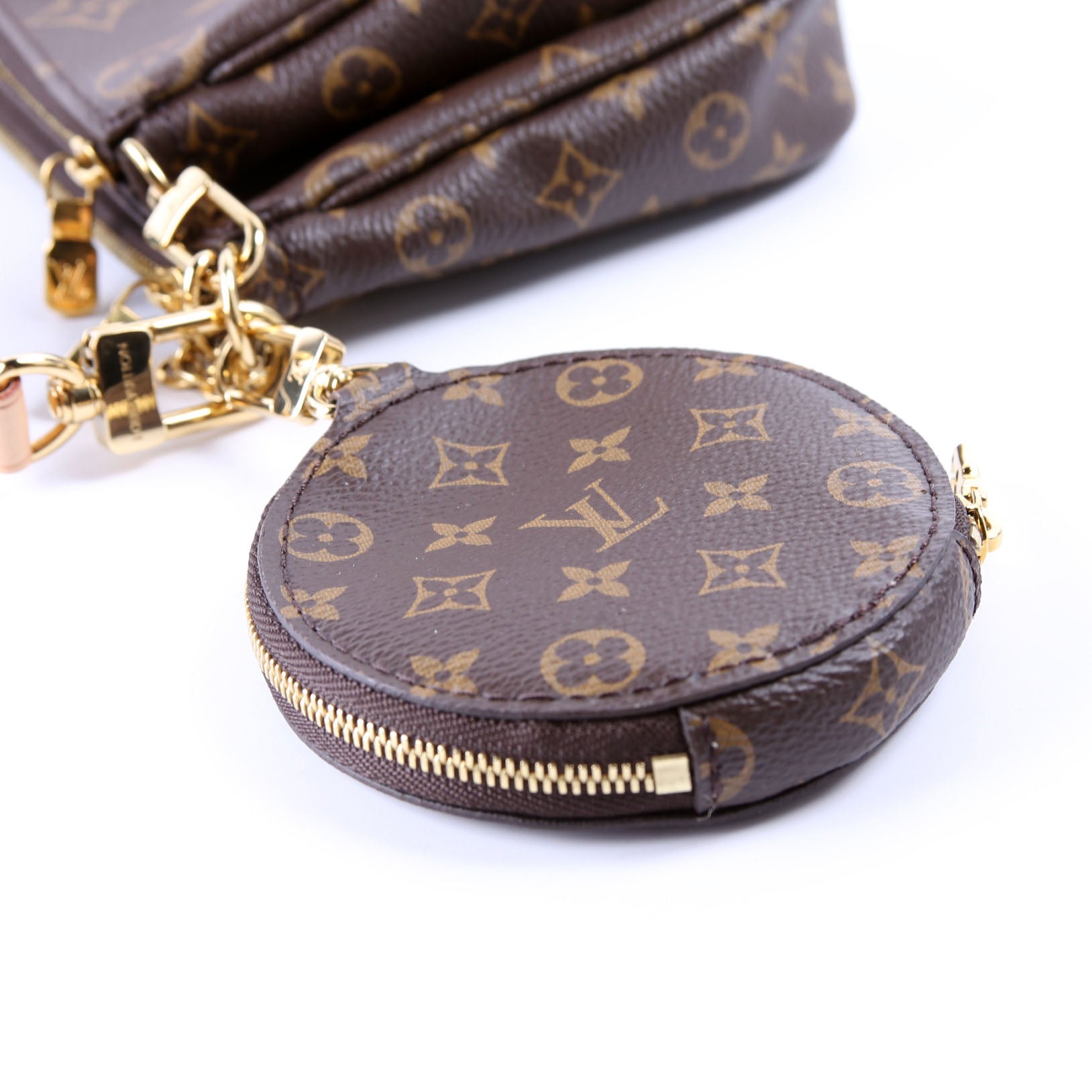 This pre-owned Louis Vuitton Multi Pochette is guaranteed 100% authentic. The exterior is in the classic Louis Vuitton Monogram coated canvas.