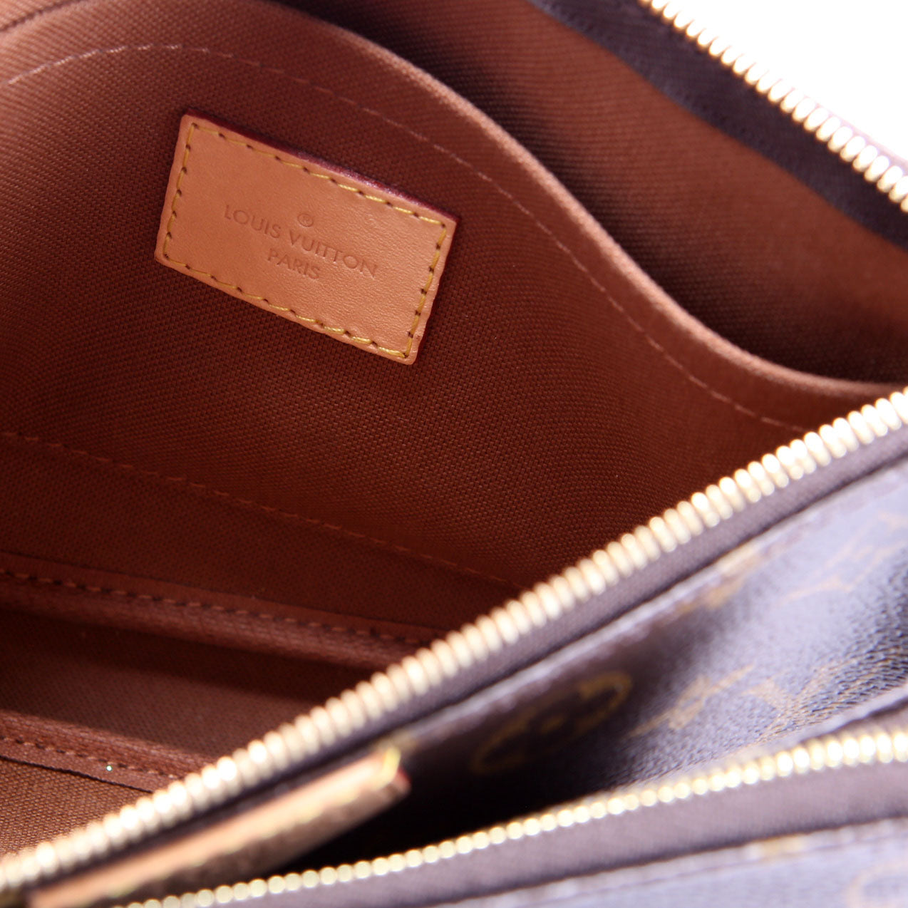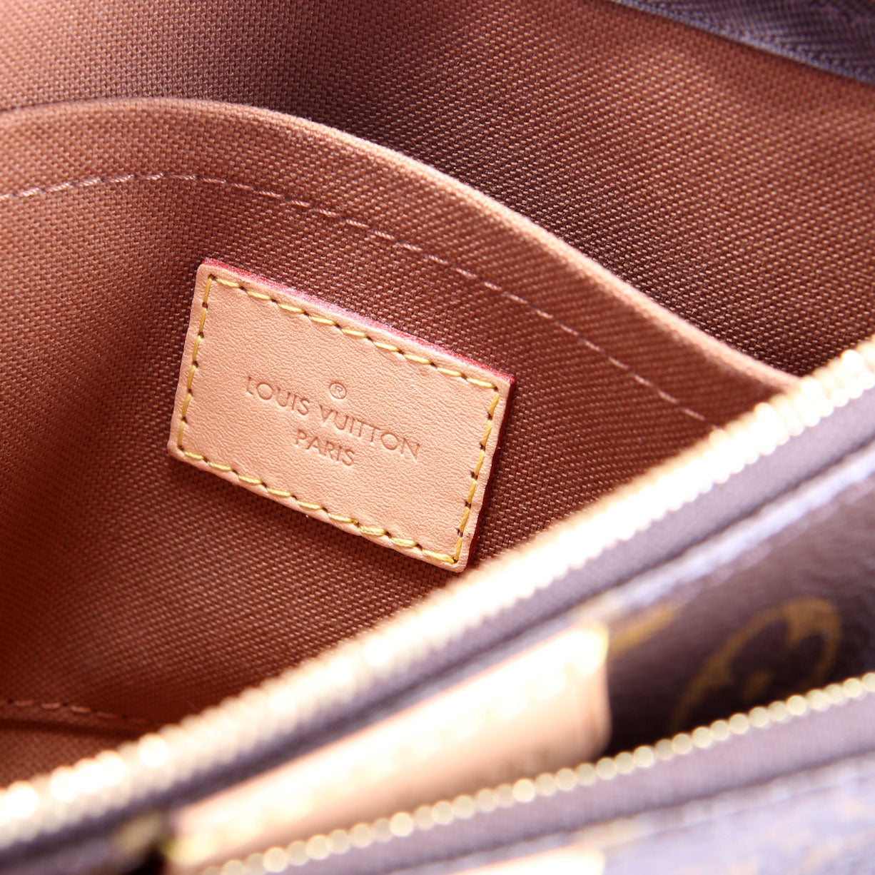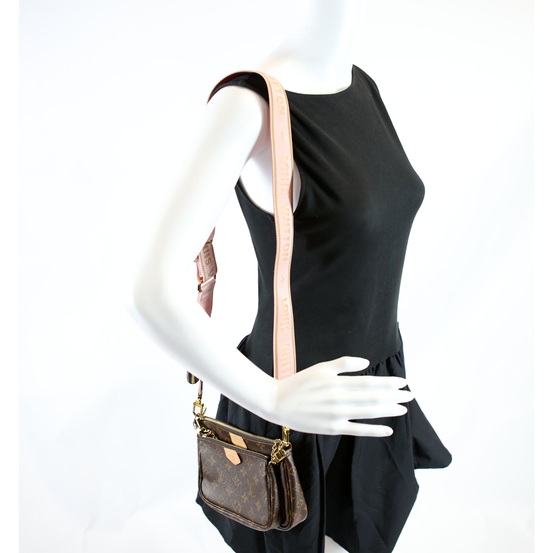 This pre-owned Louis Vuitton Multi Pochette is guaranteed 100% authentic. The exterior is in the classic Monogram coated canvas.