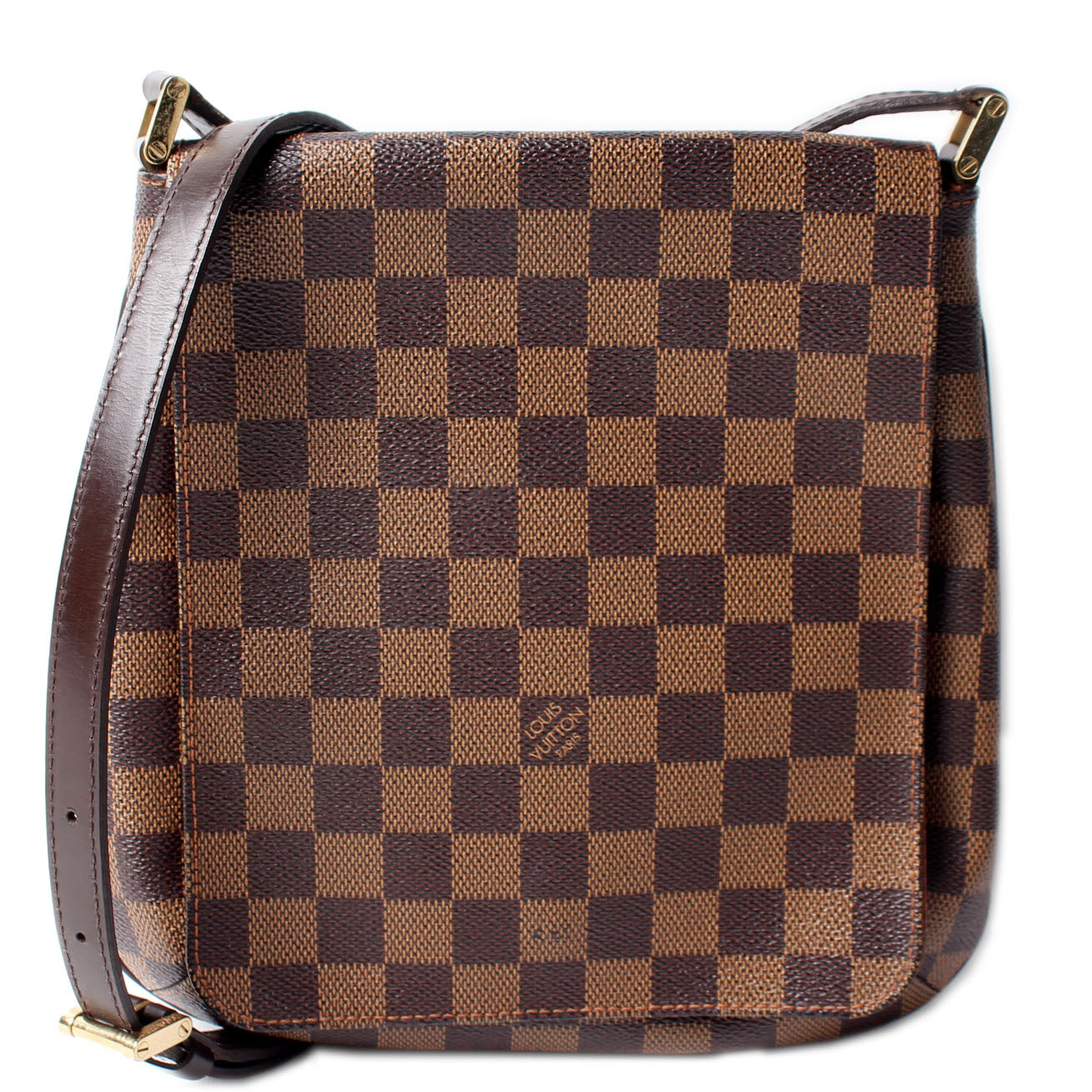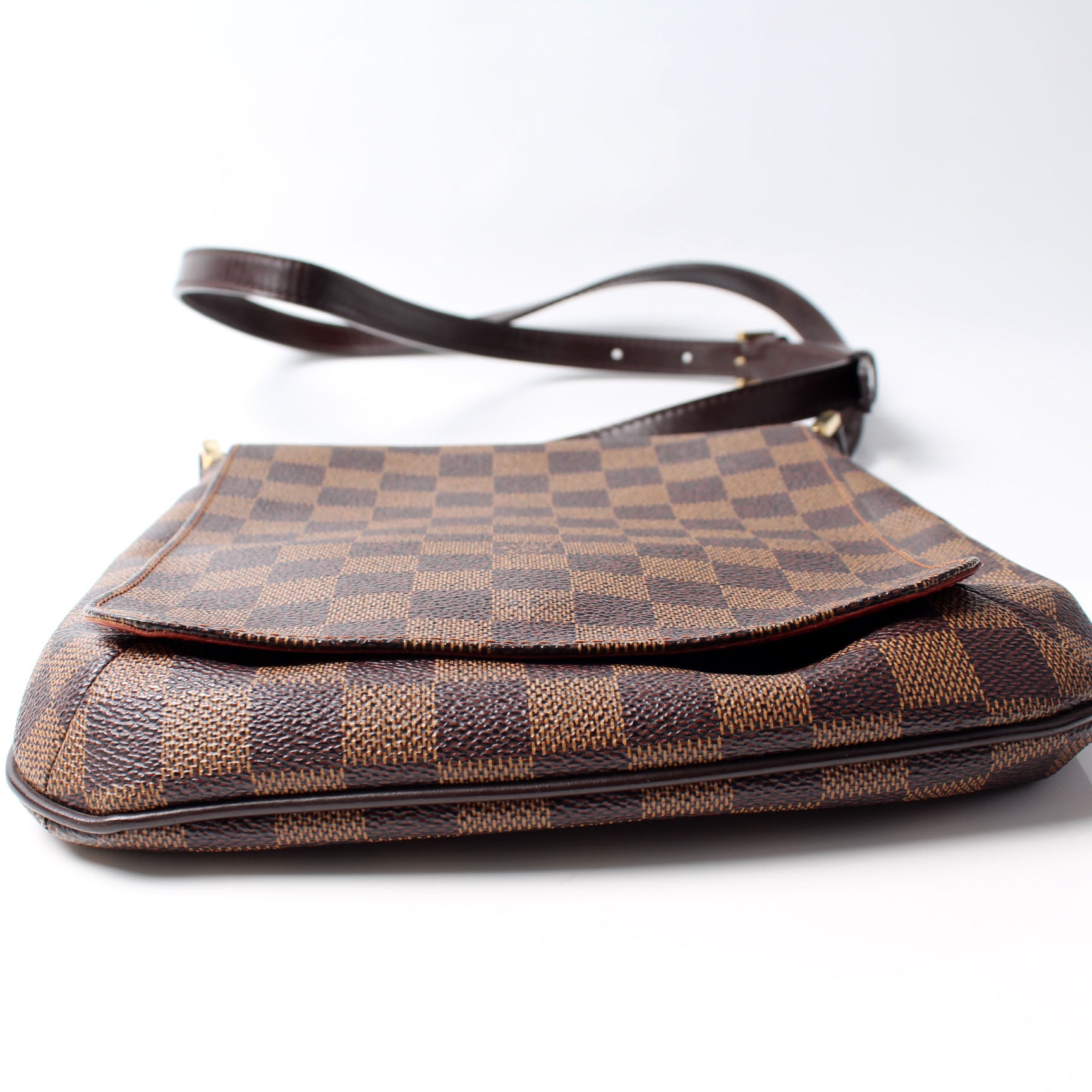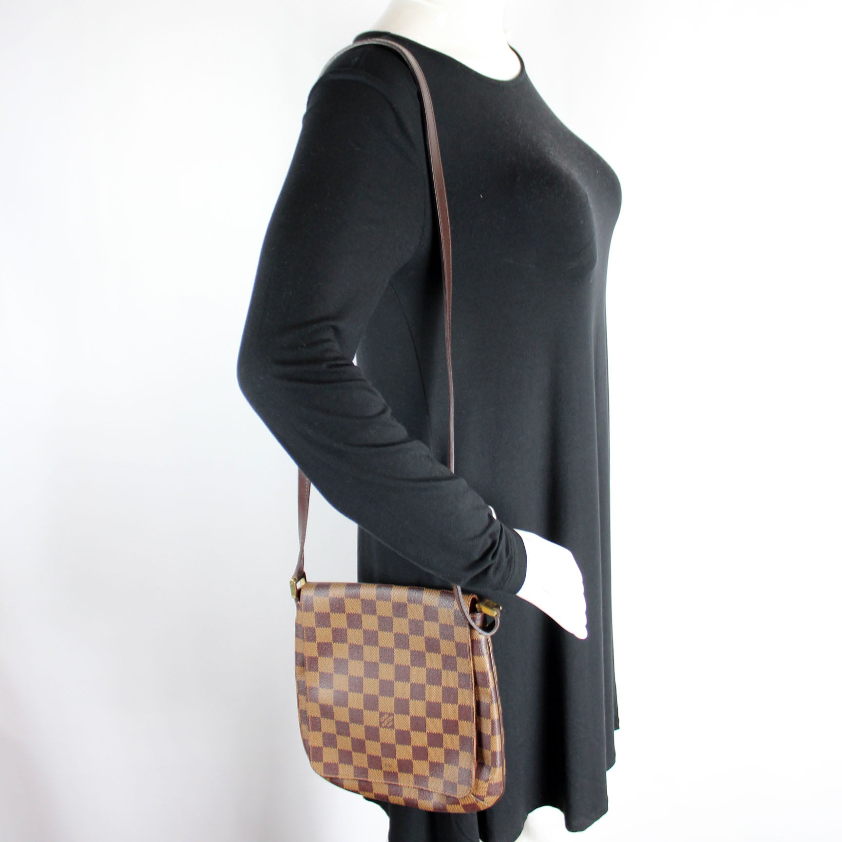 This pre-owned Louis Vuitton Musette Salsa Long is guaranteed 100% authentic. The exterior is in the classic Louis Vuitton Damier Ebene coated canvas.
