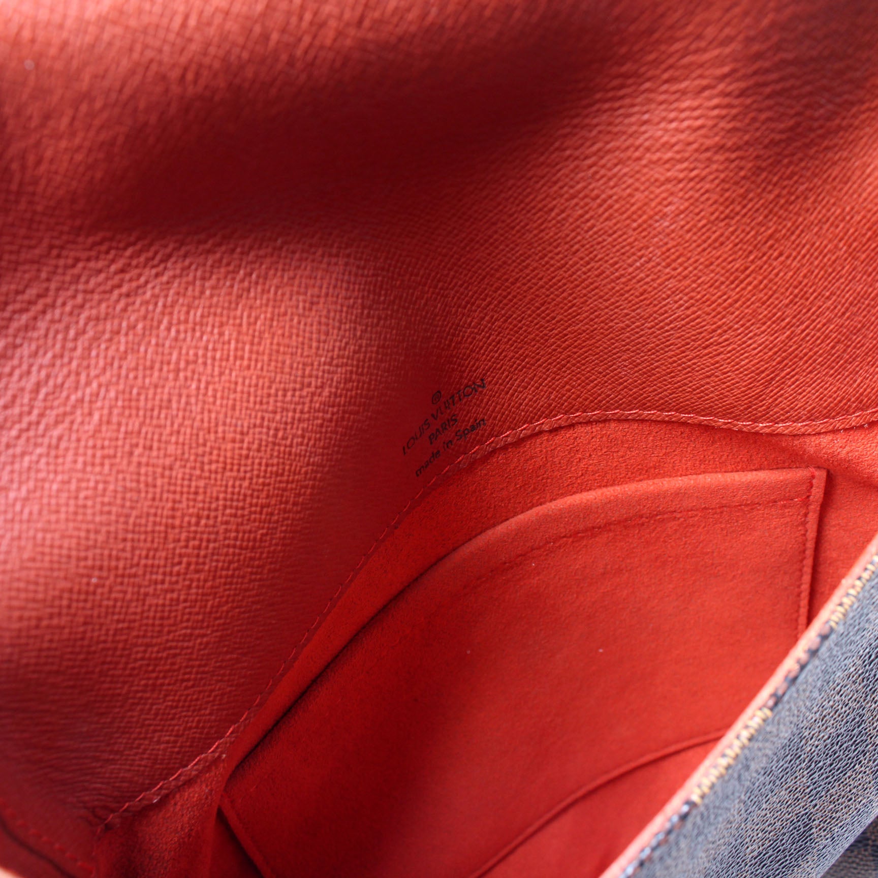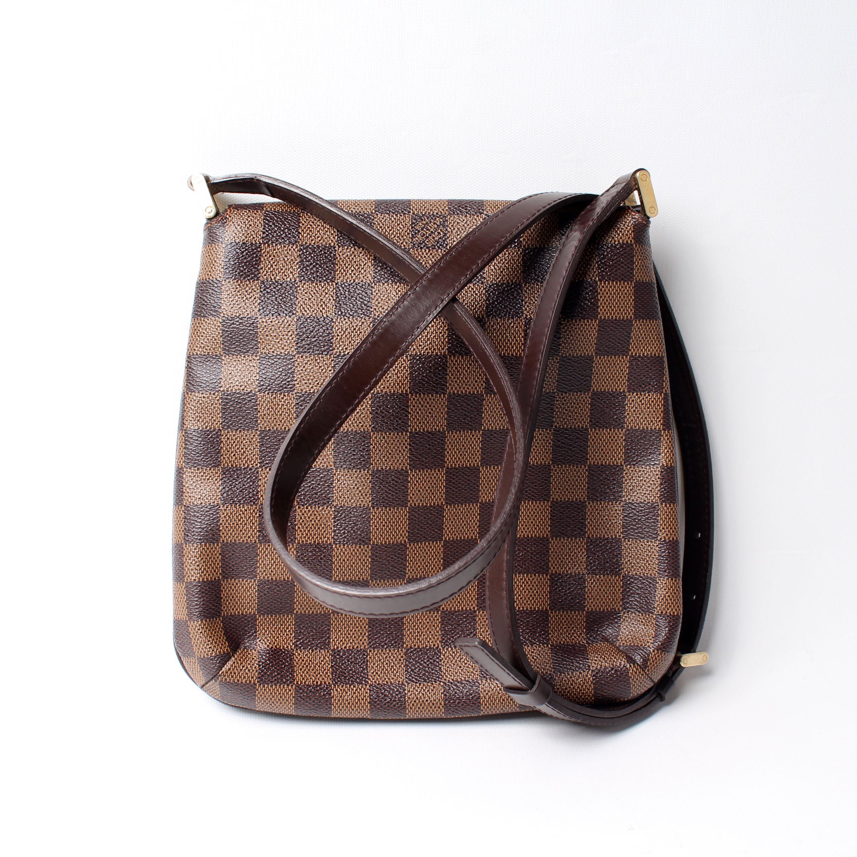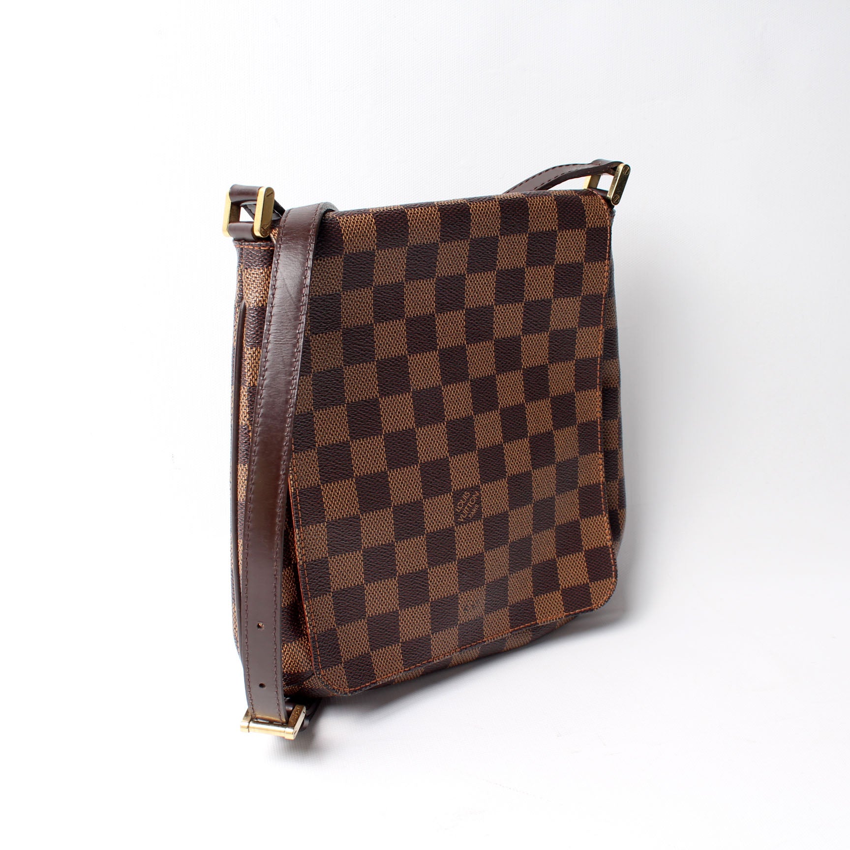 This pre-owned Louis Vuitton Musette Salsa Long is guaranteed 100% authentic. The exterior is in the classic Louis Vuitton Damier Ebene coated canvas.