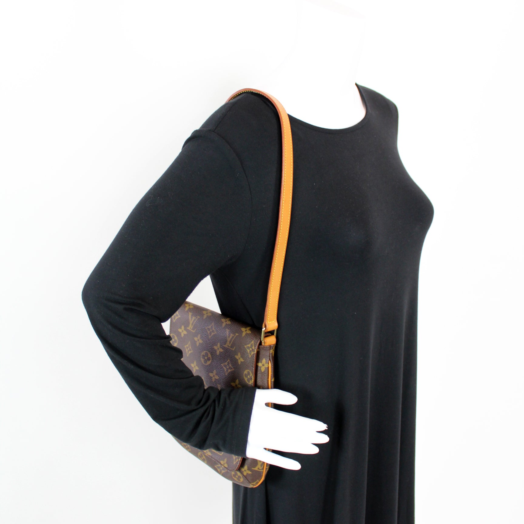 This pre-owned Louis Vuitton Musette Salsa Short is guaranteed 100% authentic. The exterior is in the classic Louis Vuitton Monogram coated canvas.