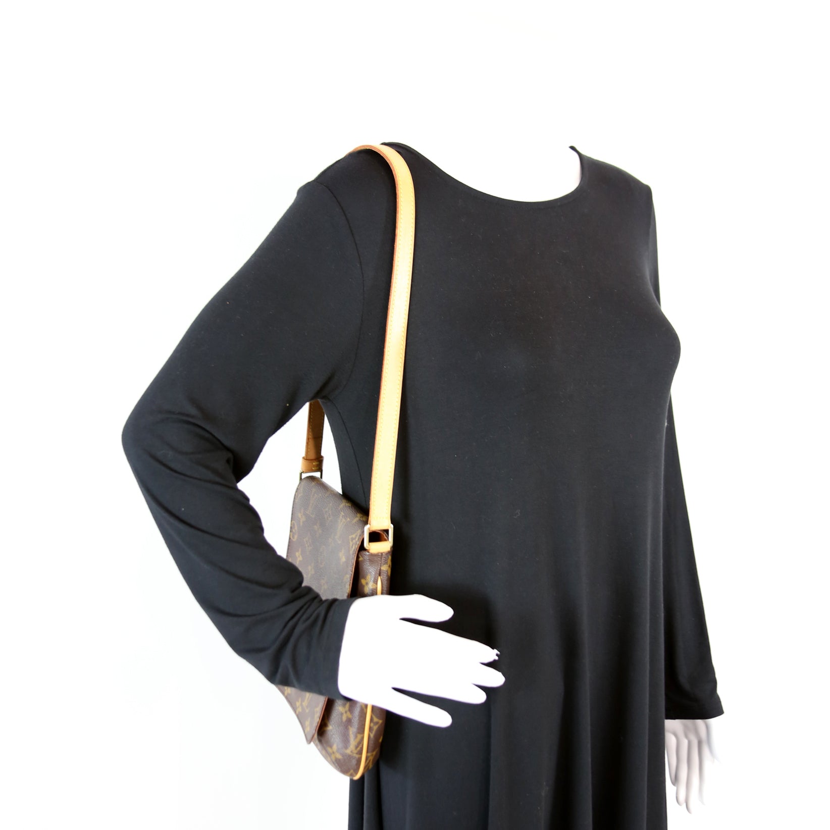 This pre-owned Louis Vuitton Musette Salsa Short is guaranteed 100% authentic. The exterior is in the classic Louis Vuitton Monogram coated canvas.