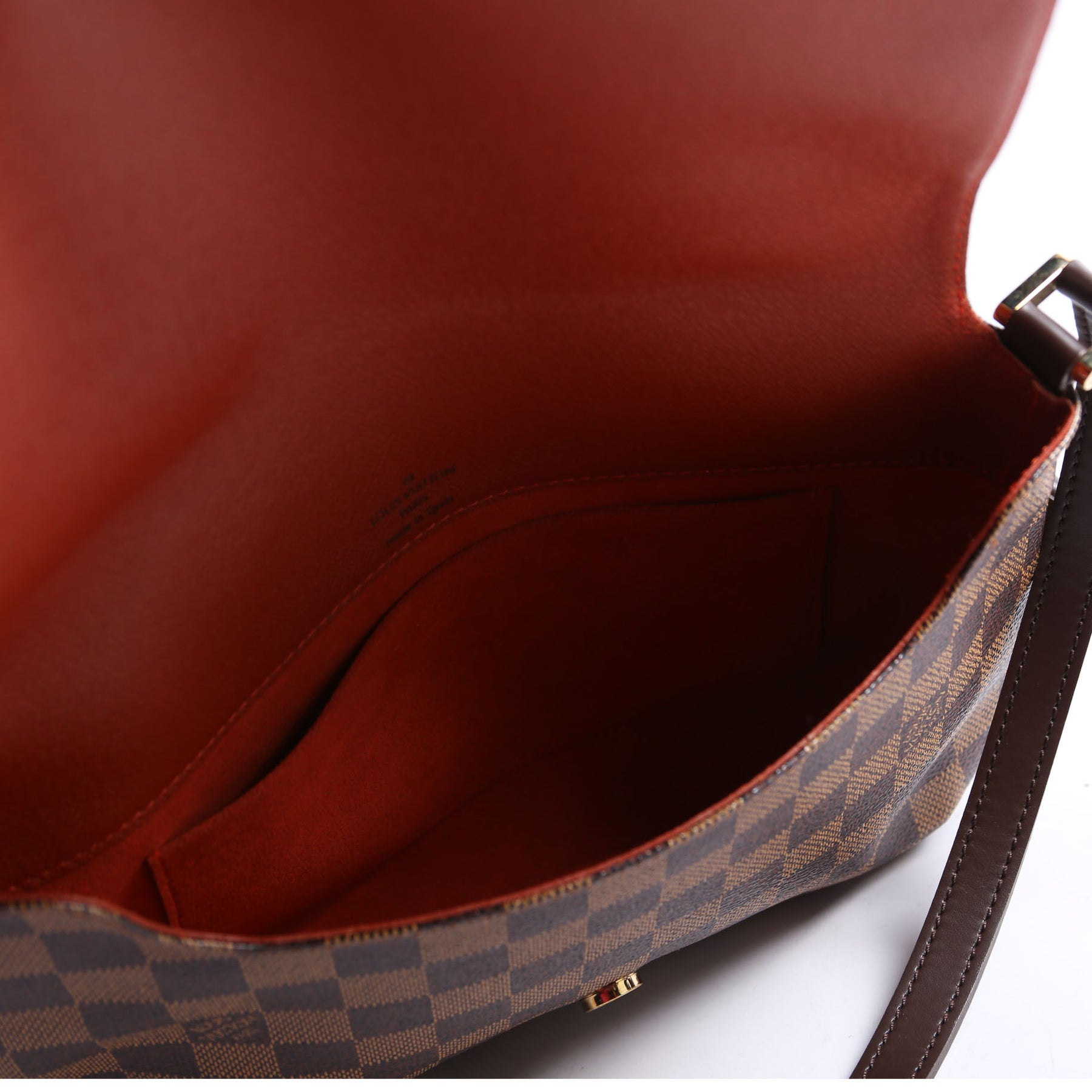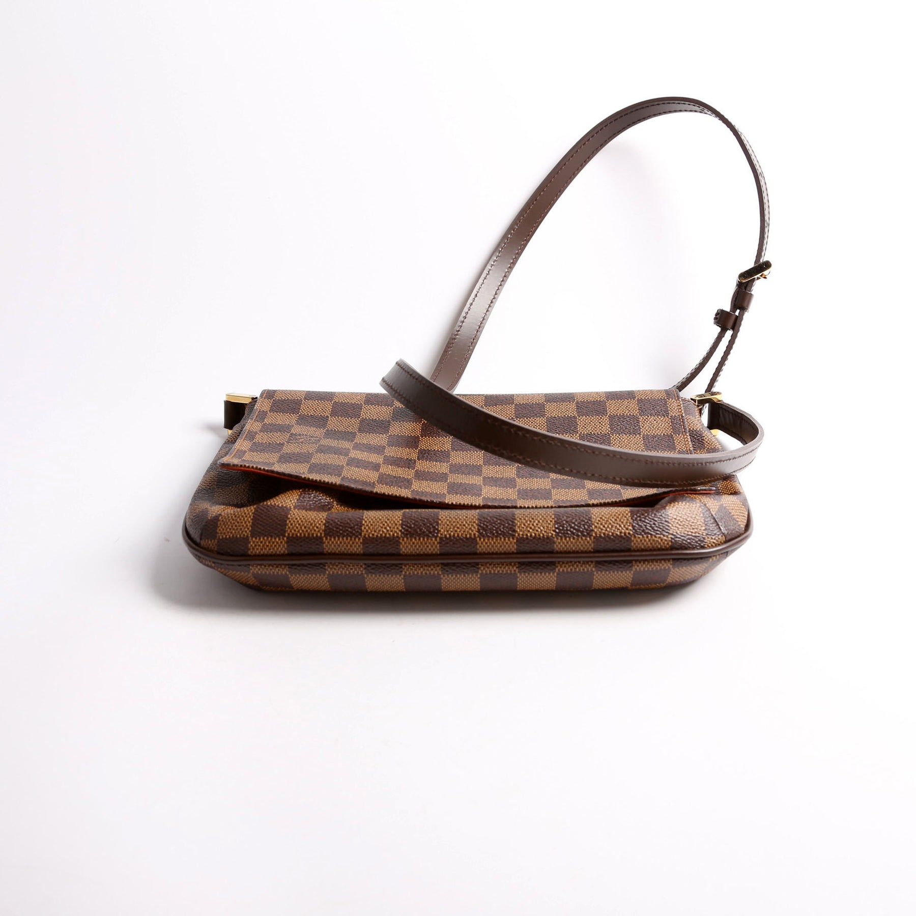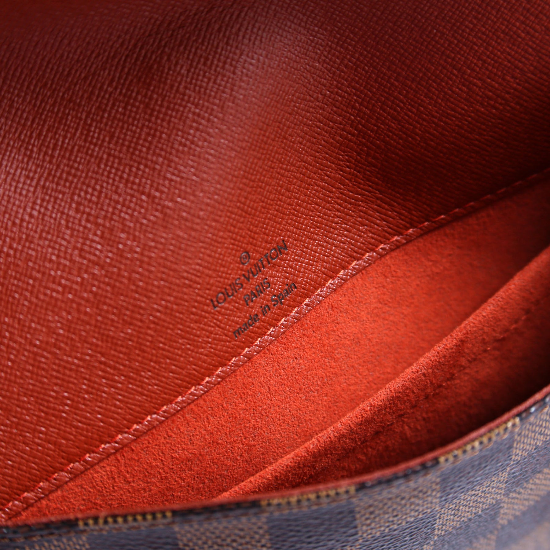 This pre-owned Louis Vuitton Musette Tango Long is guaranteed 100% authentic. The exterior is in the classic Louis Vuitton Damier Ebene coated canvas.