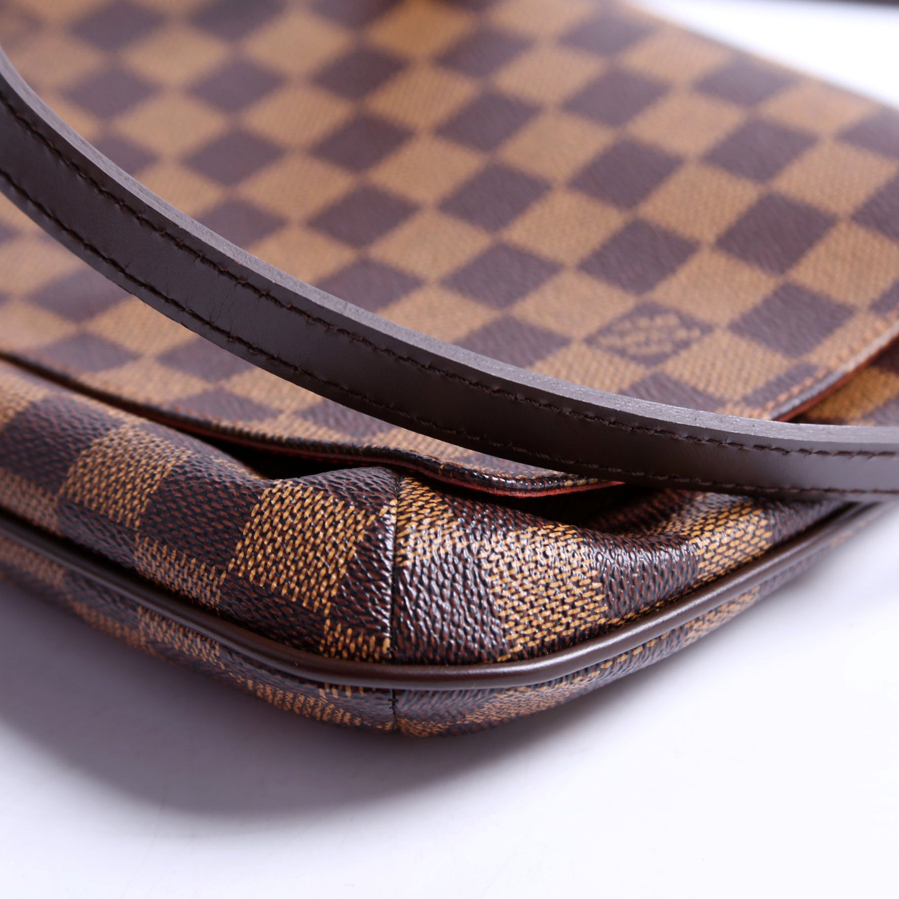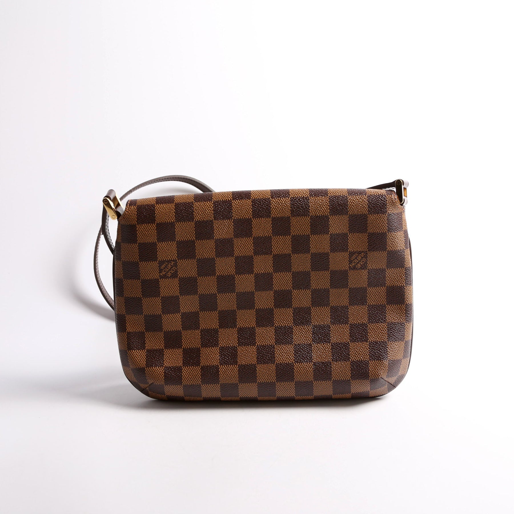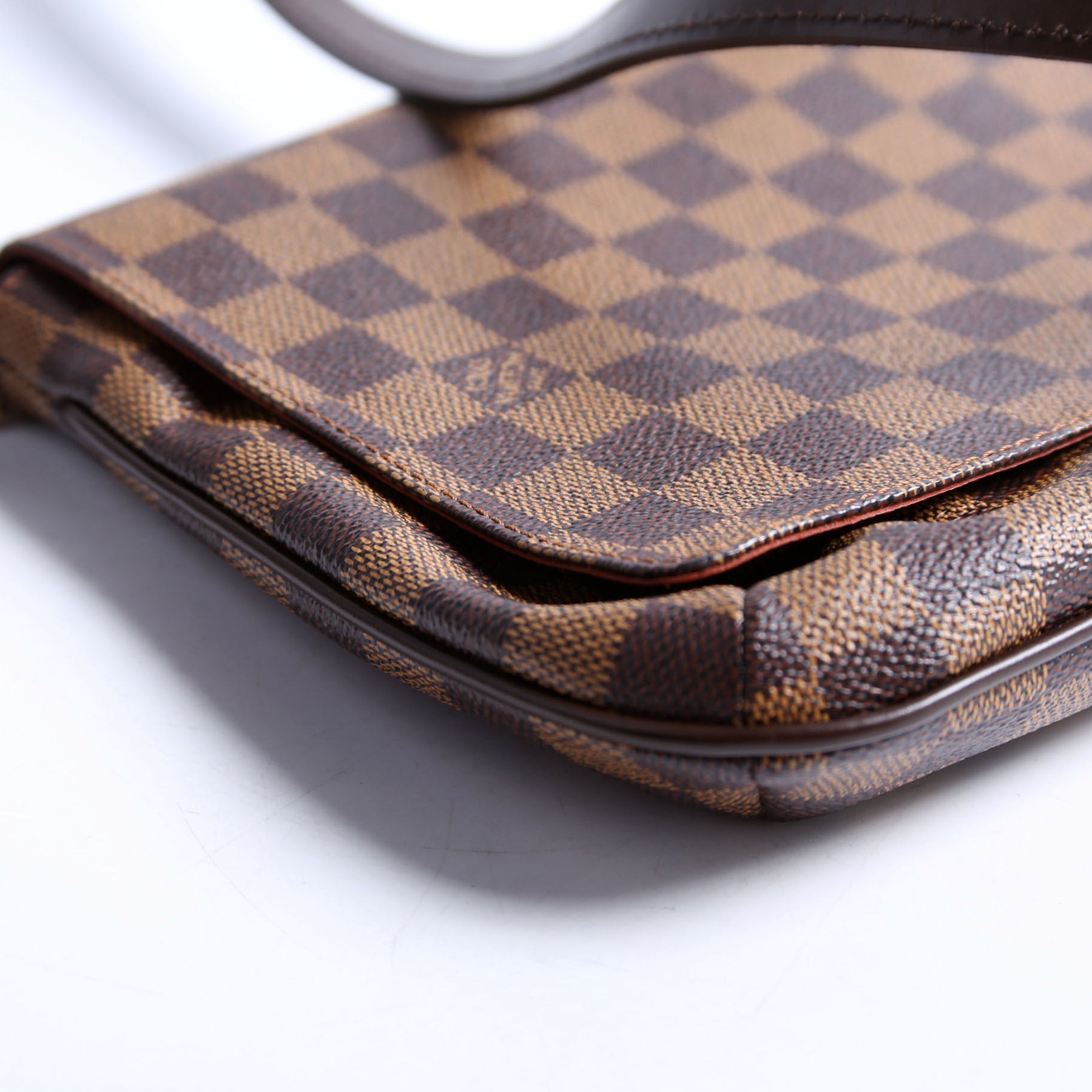 This pre-owned Louis Vuitton Musette Tango Long is guaranteed 100% authentic. The exterior is in the classic Louis Vuitton Damier Ebene coated canvas.