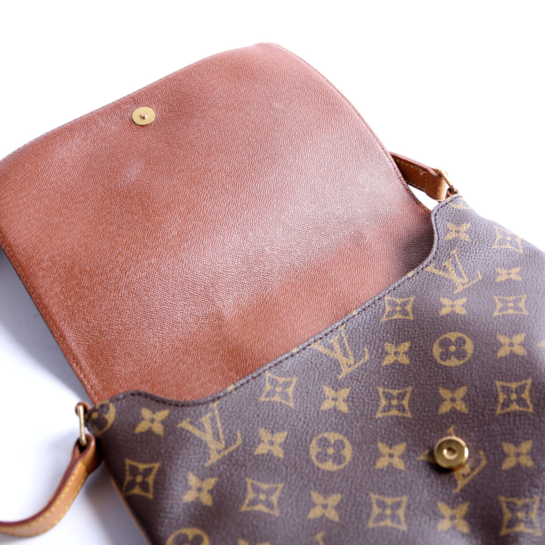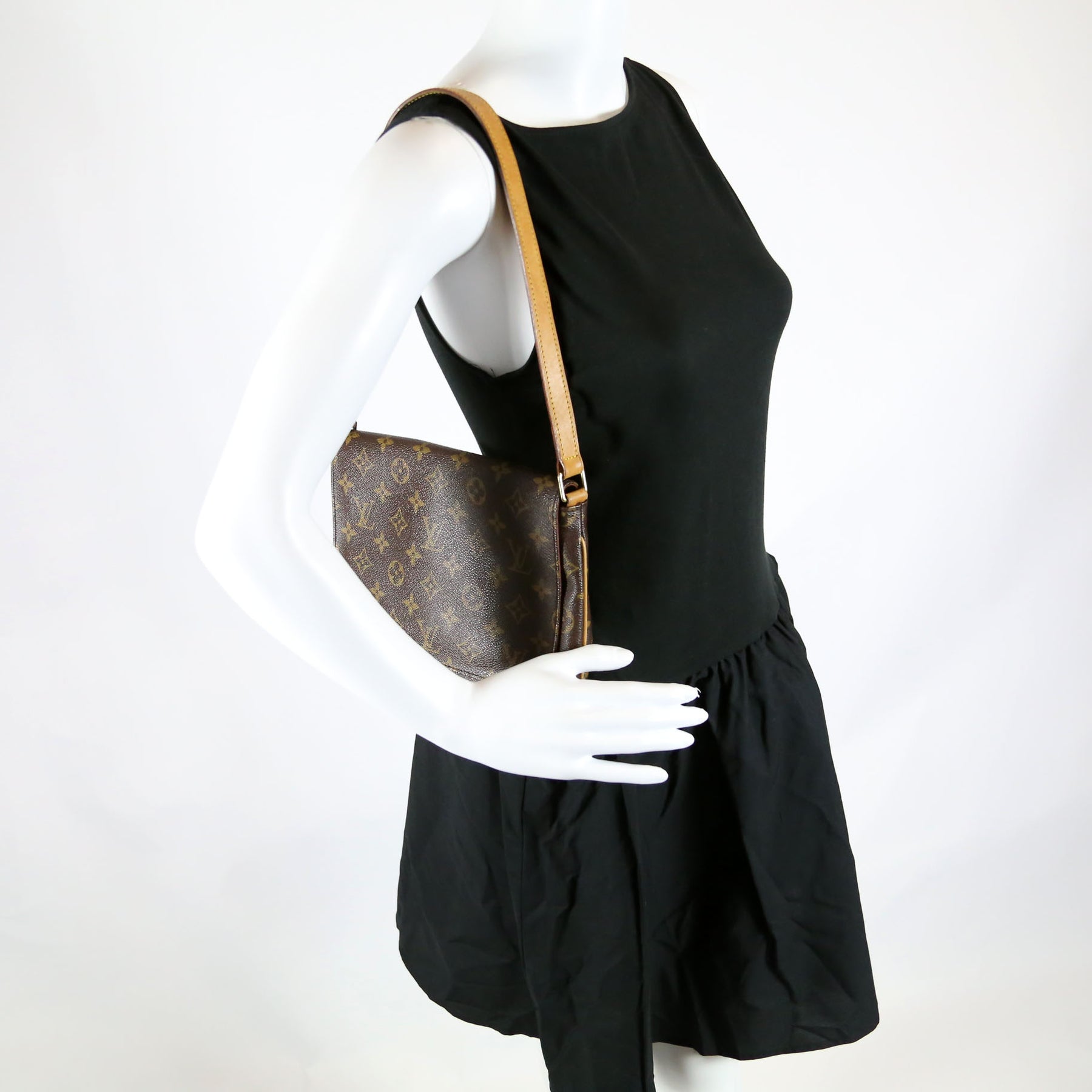 This pre-owned Louis Vuitton Musette Tango Short is guaranteed 100% authentic. The exterior is in the classic Louis Vuitton Monogram coated canvas.