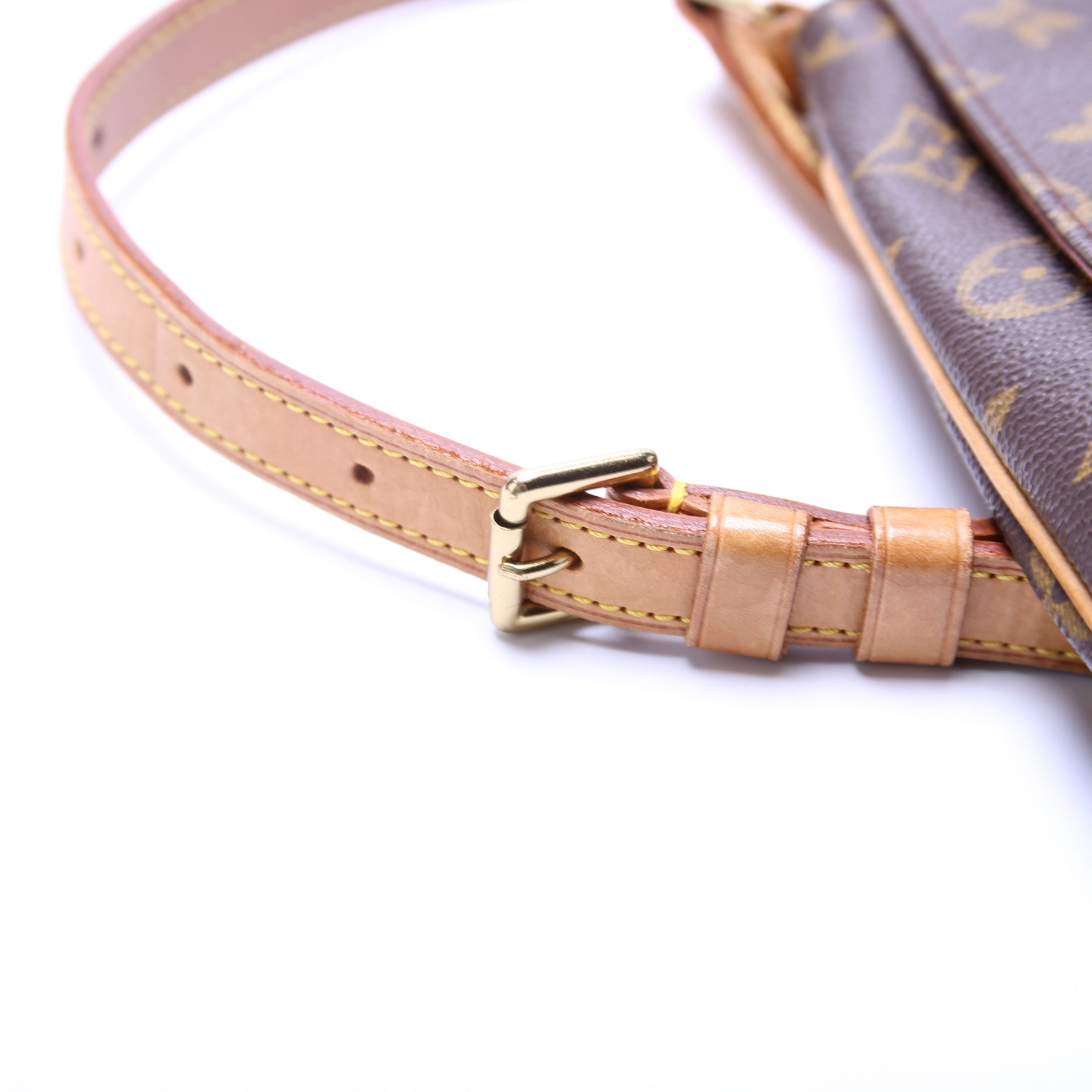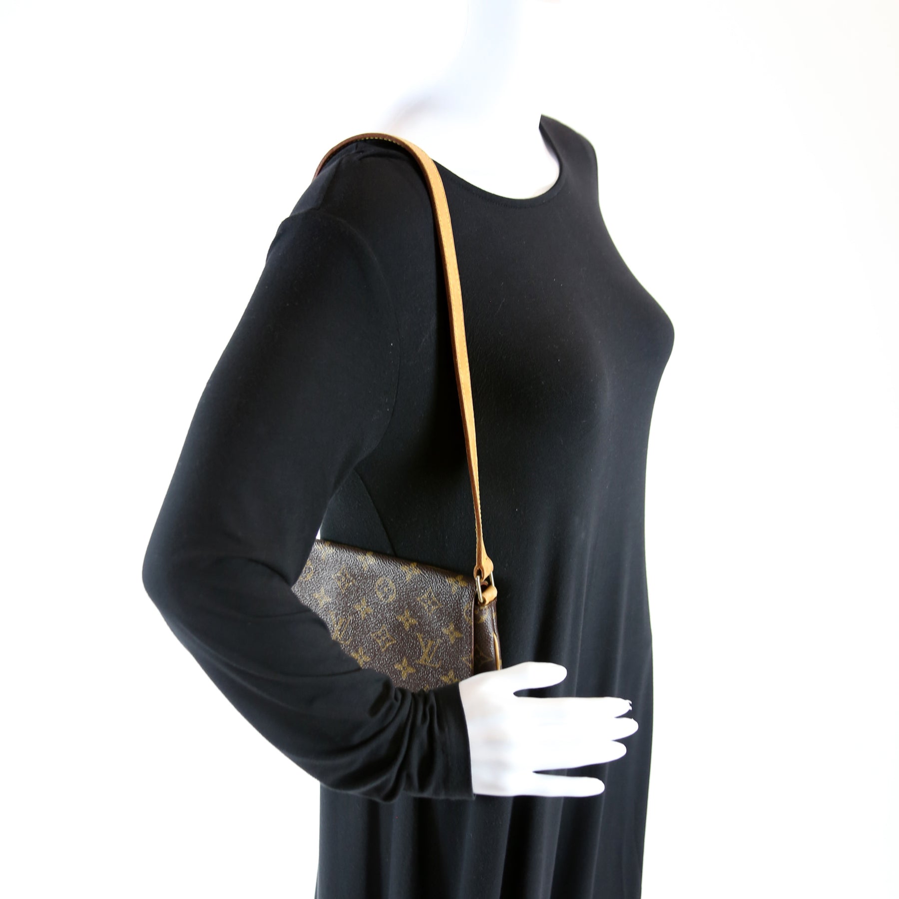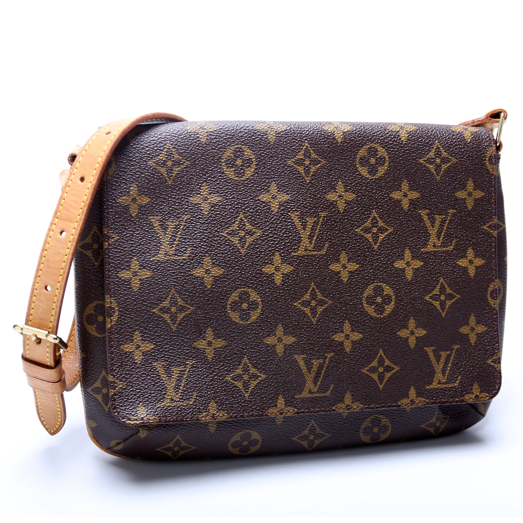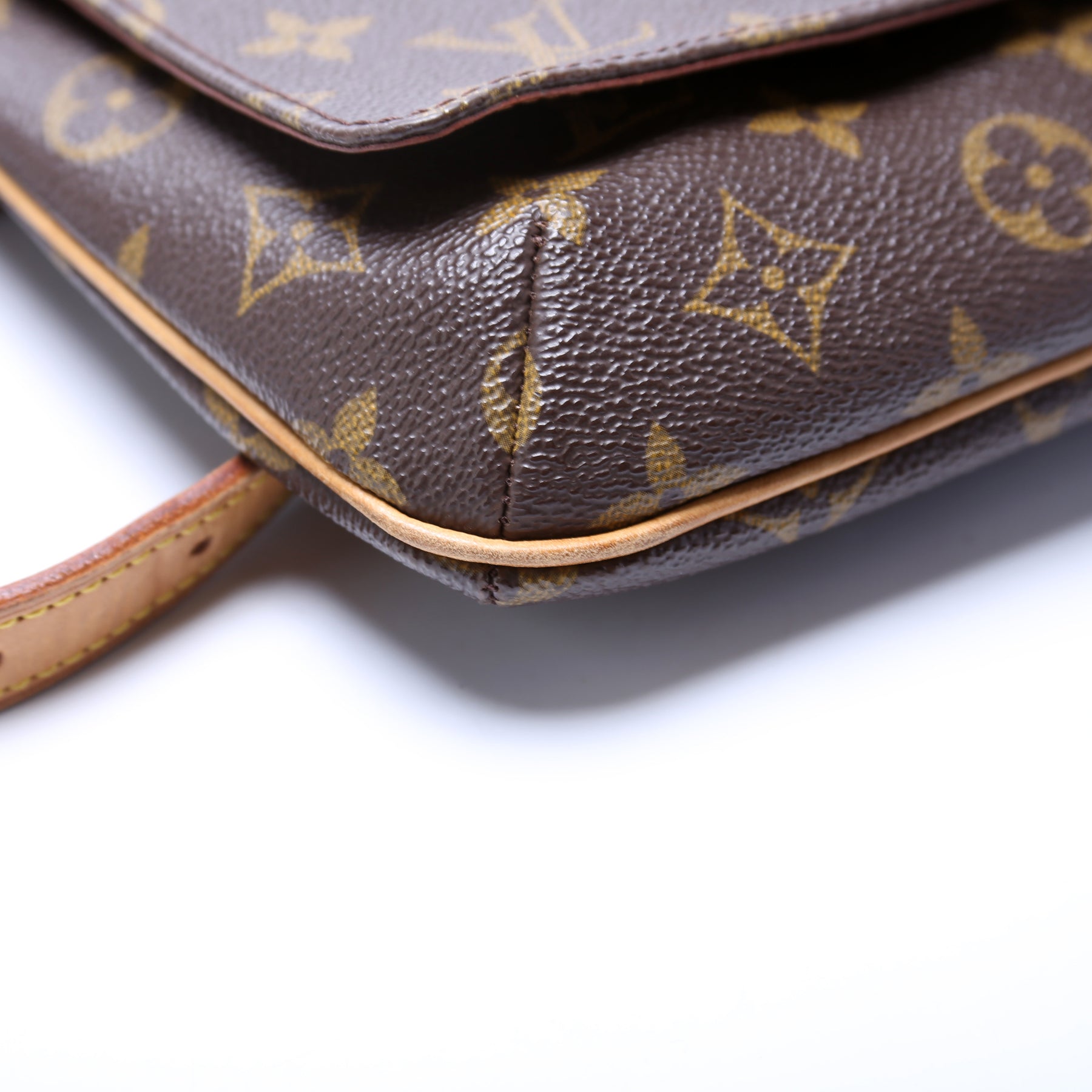 This pre-owned Louis Vuitton Musette Tango Short is guaranteed 100% authentic. The exterior is in the classic Louis Vuitton Monogram coated canvas.