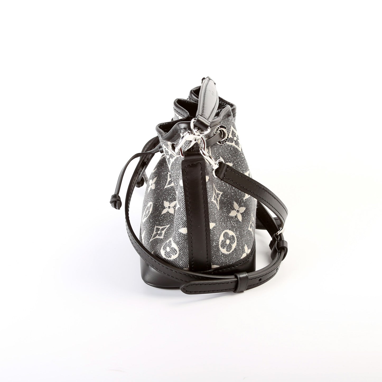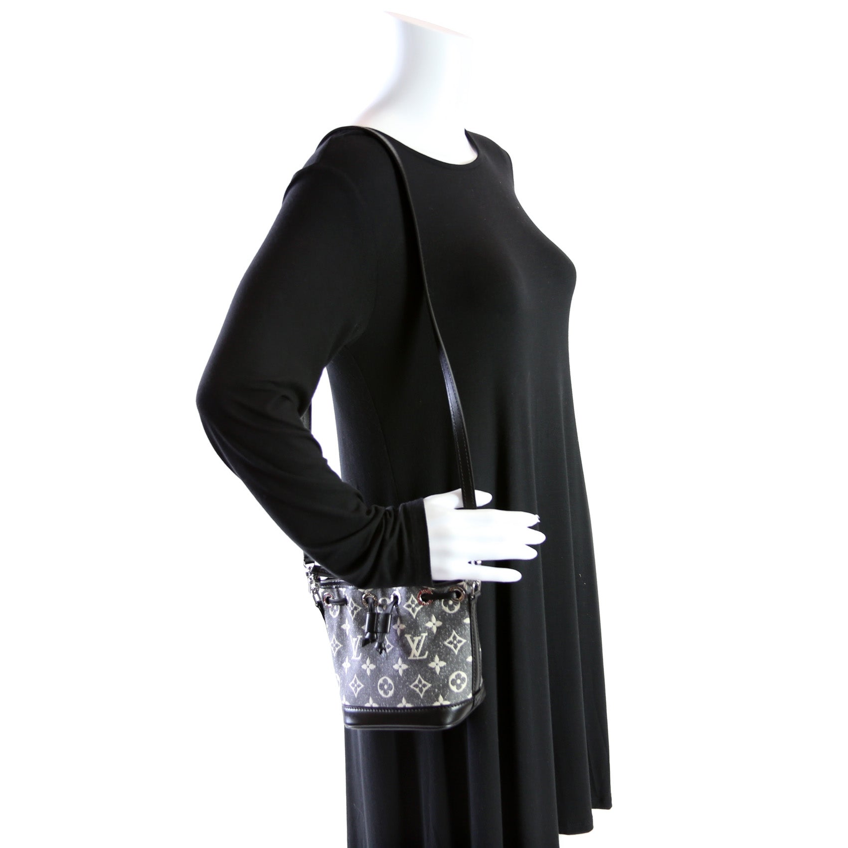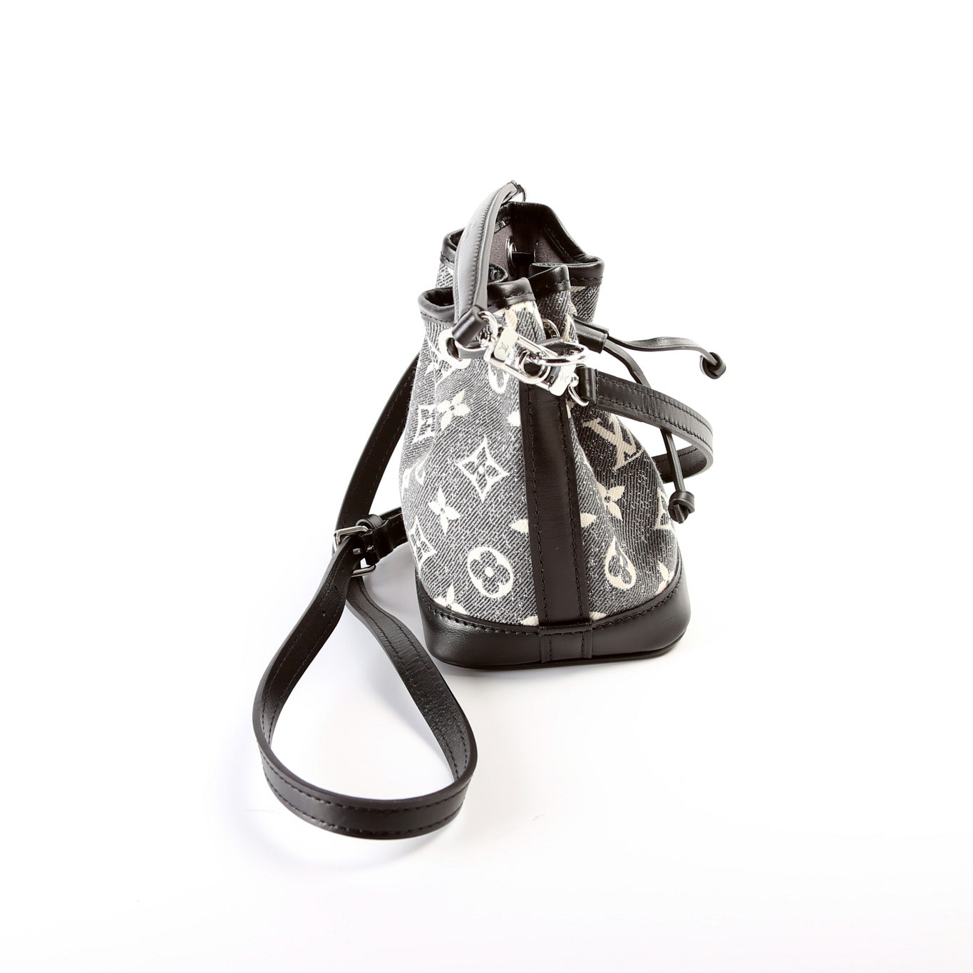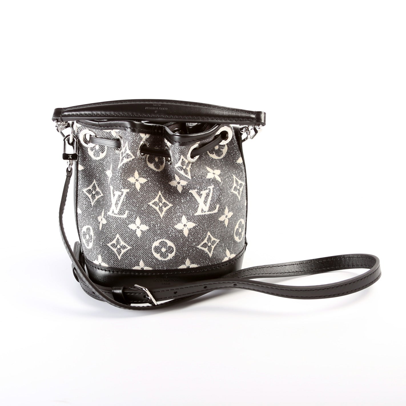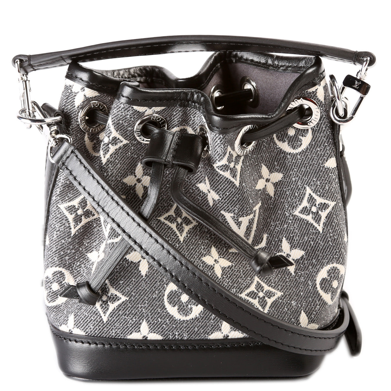 This pre-owned Louis Vuitton Nano Noe is guaranteed 100% authentic. The exterior is in the classic Louis Vuitton Monogram Jacquard Denim Canvas.