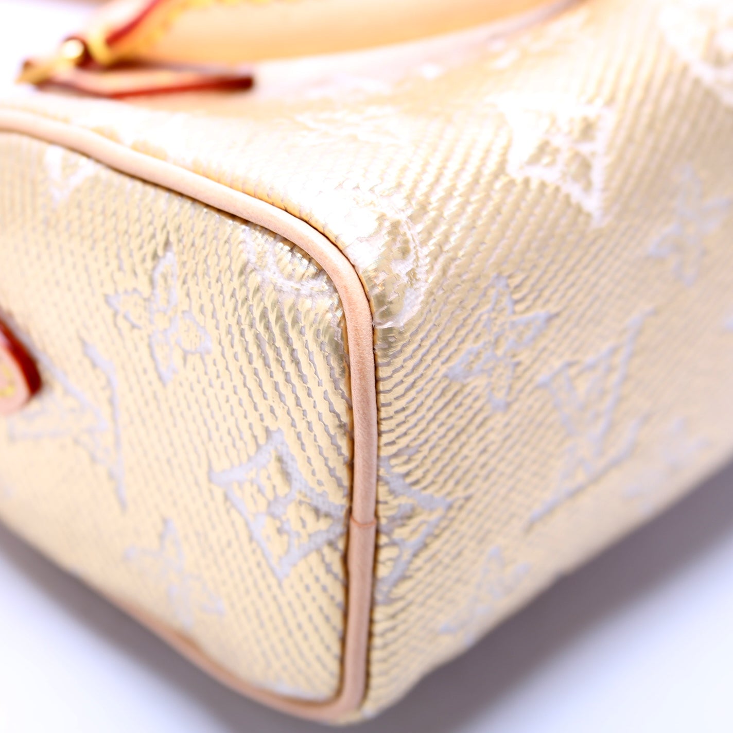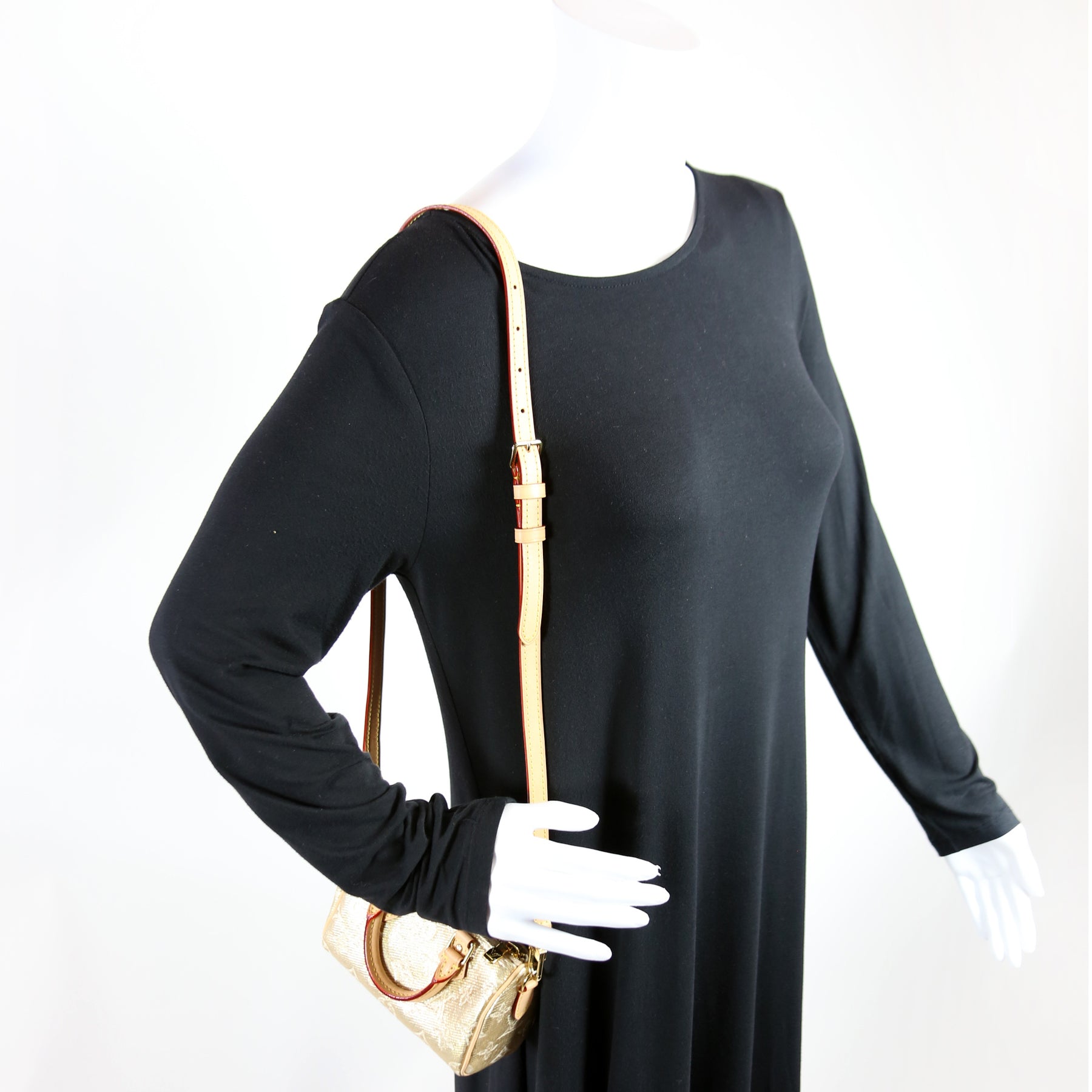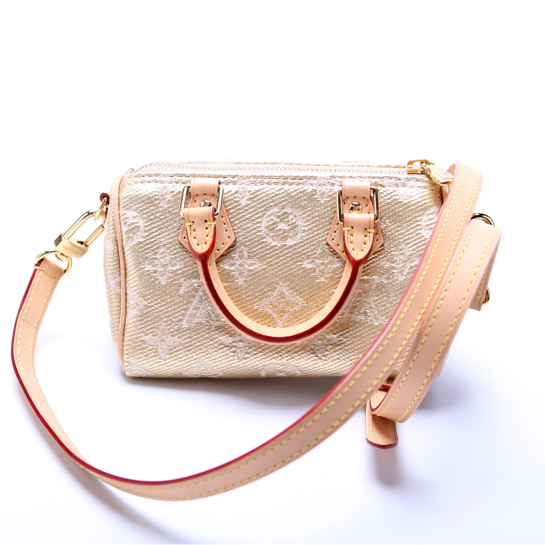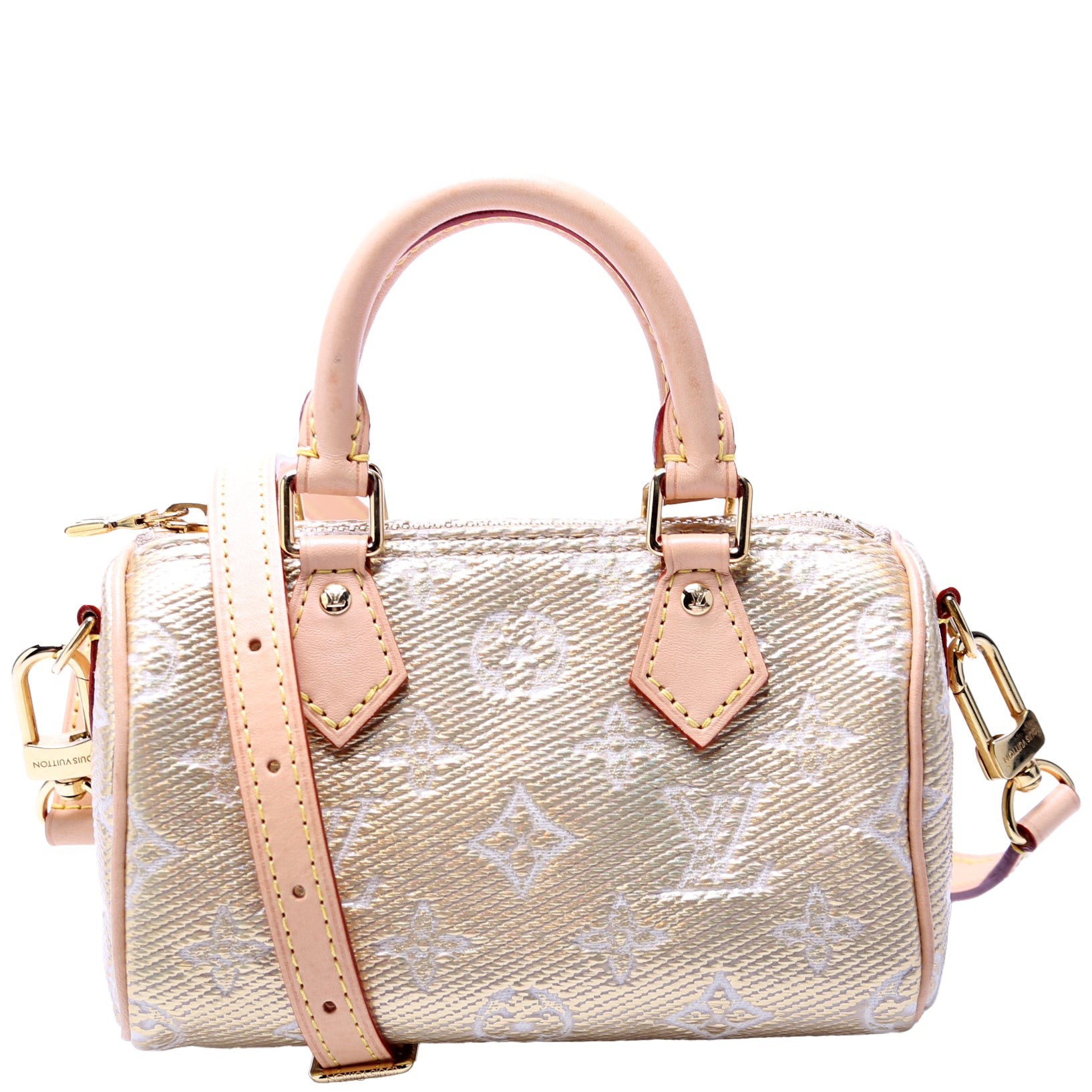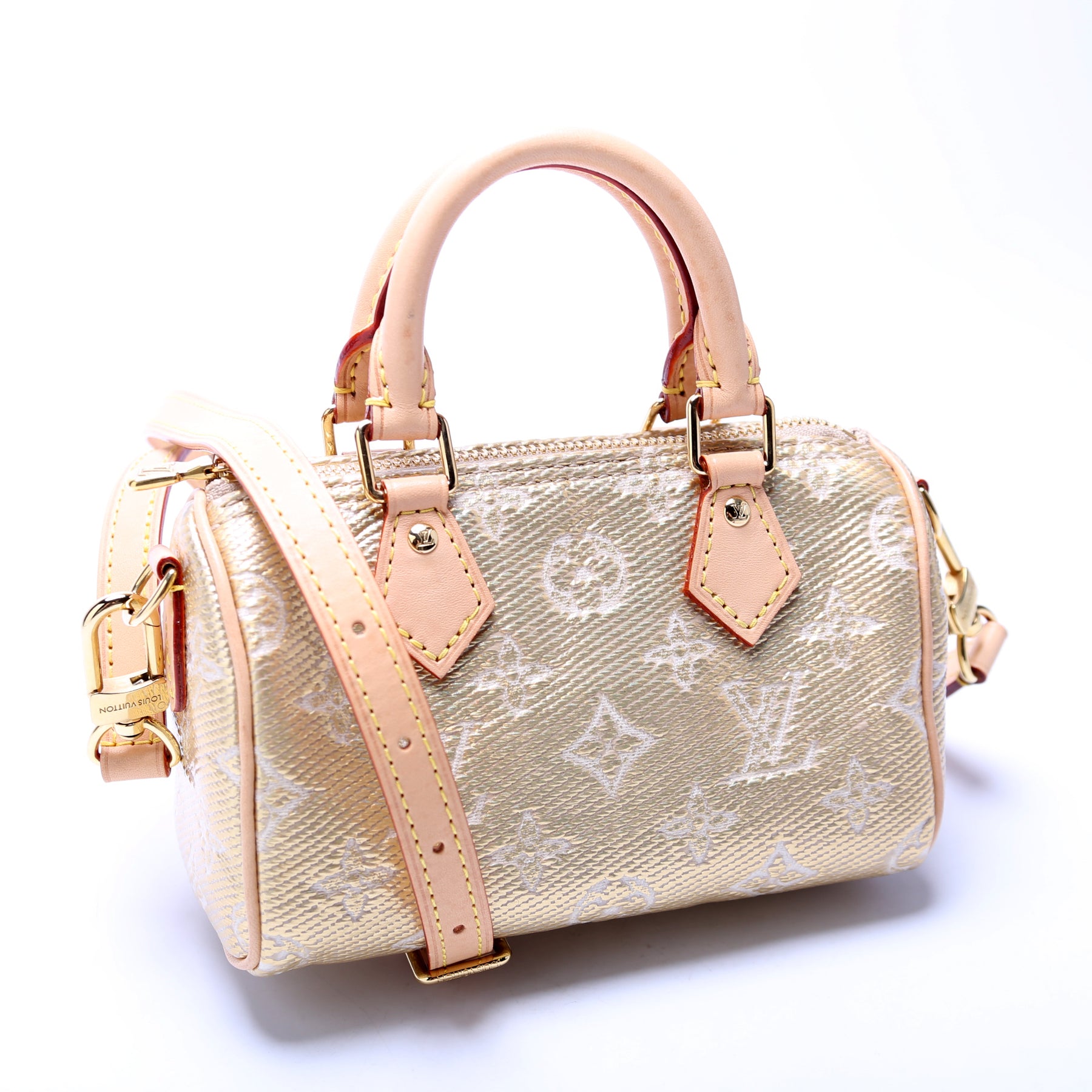This pre-owned Louis Vuitton Nano Speedy is guaranteed 100% authentic. The exterior is in the classic Louis Vuitton Monoglam coated canvas.