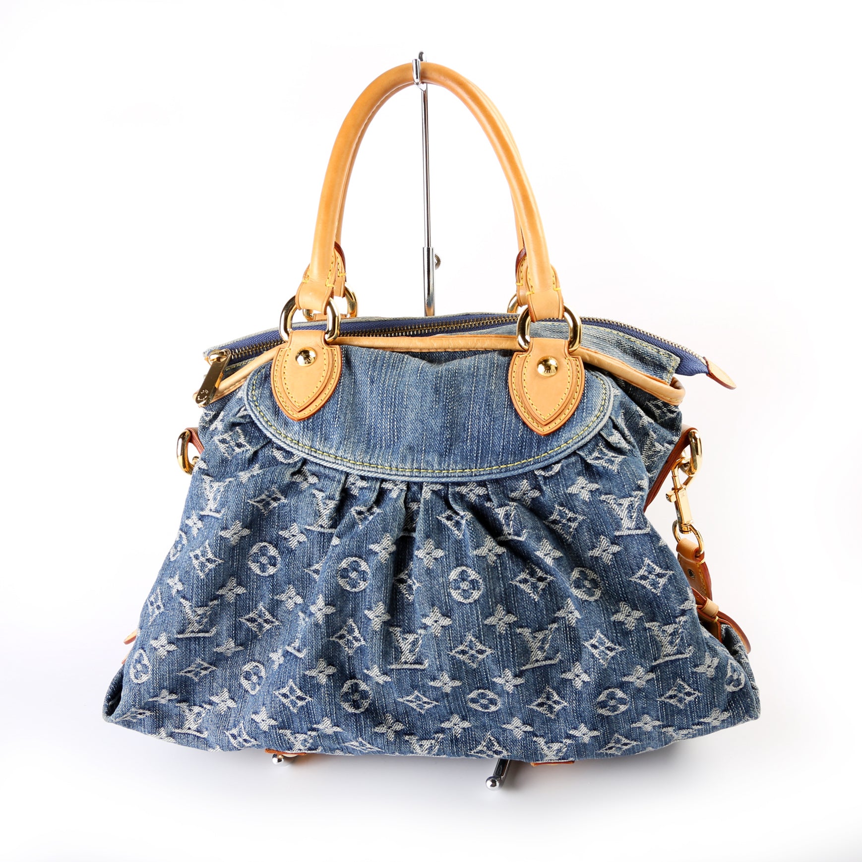 This pre-owned Louis Vuitton Neo Cabby MM Bag is guaranteed 100% authentic. The exterior is in the classic Denim Monogram.