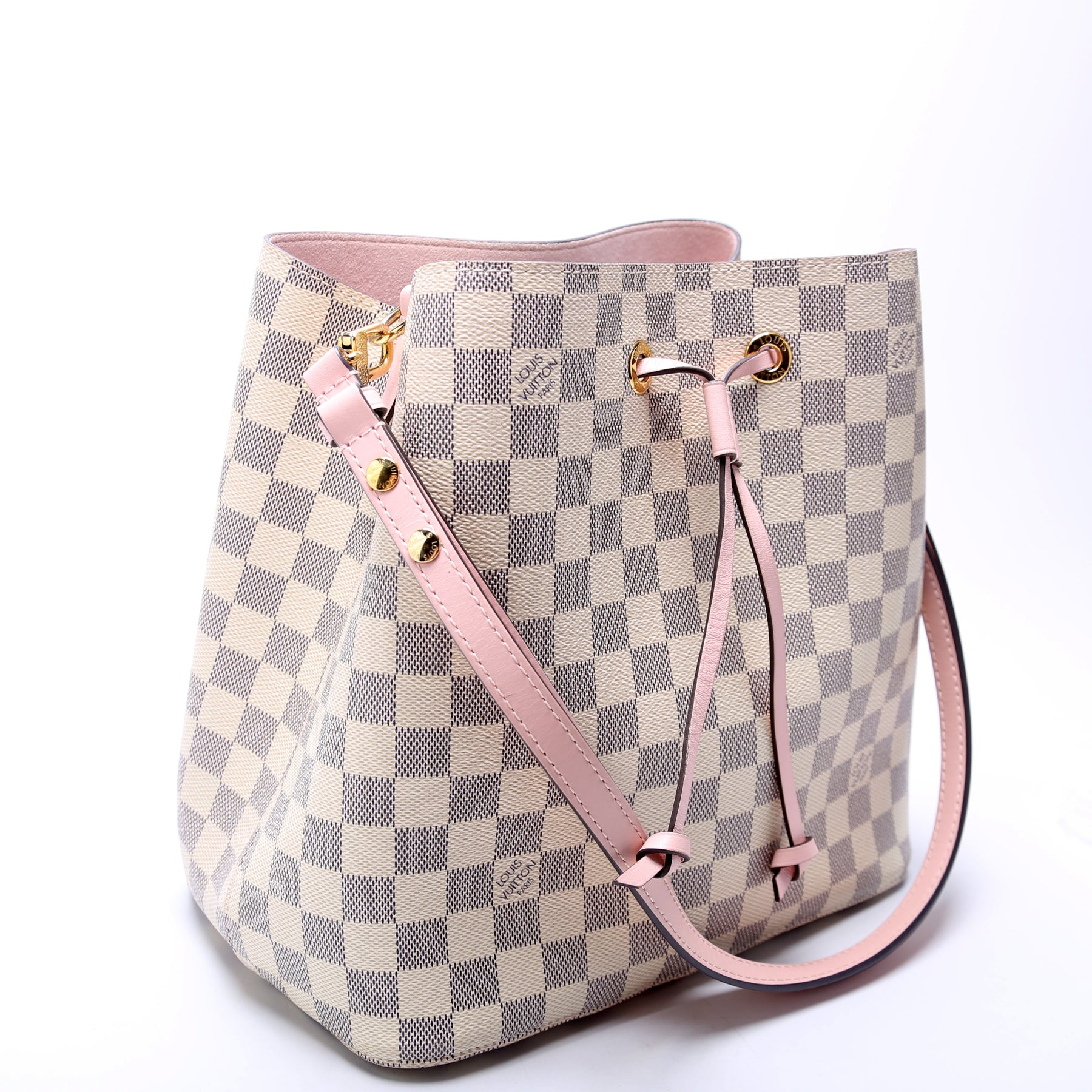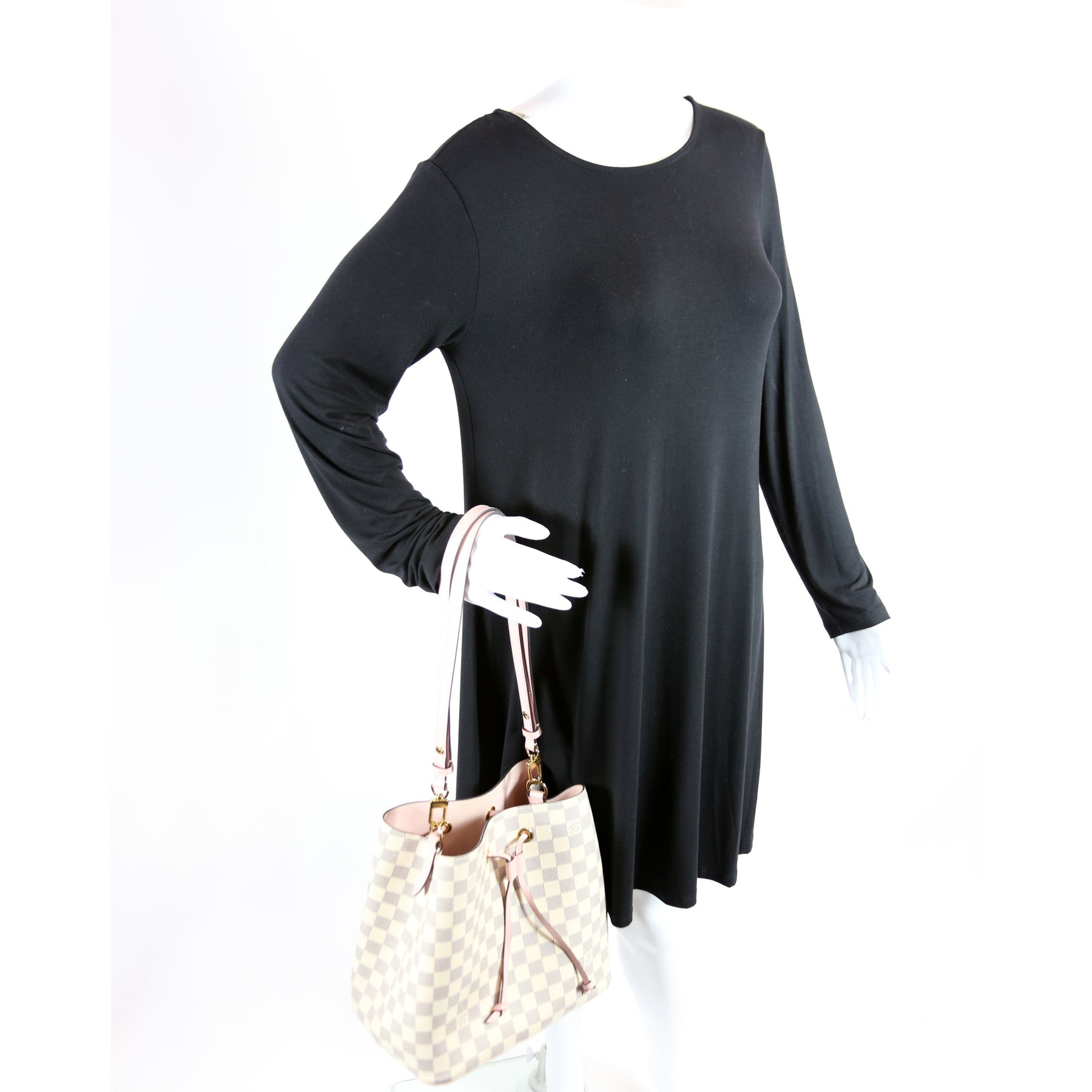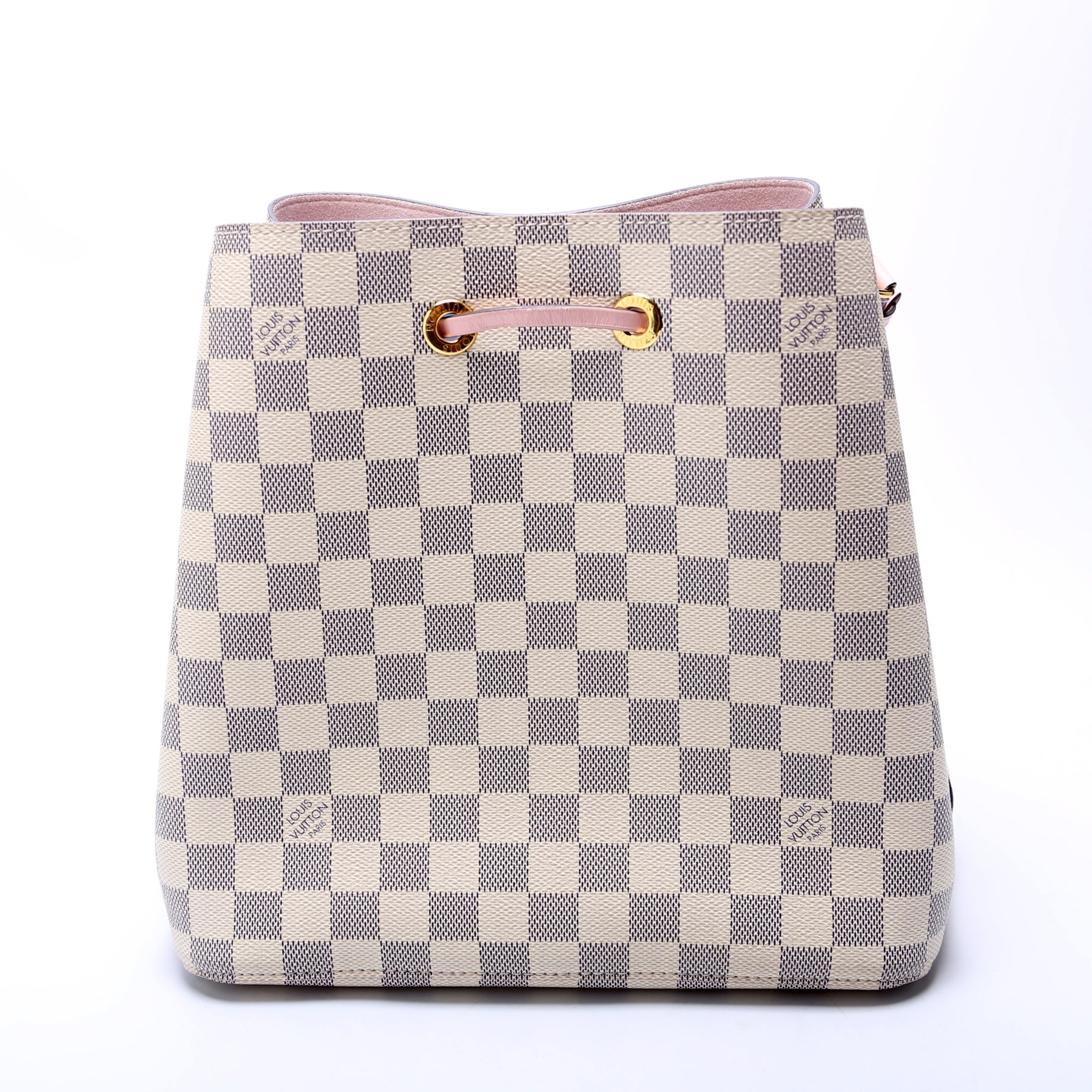 This pre-owned Louis Vuitton Neonoe is guaranteed 100% authentic. The exterior is in the classic Louis Vuitton Damier Azur coated canvas.