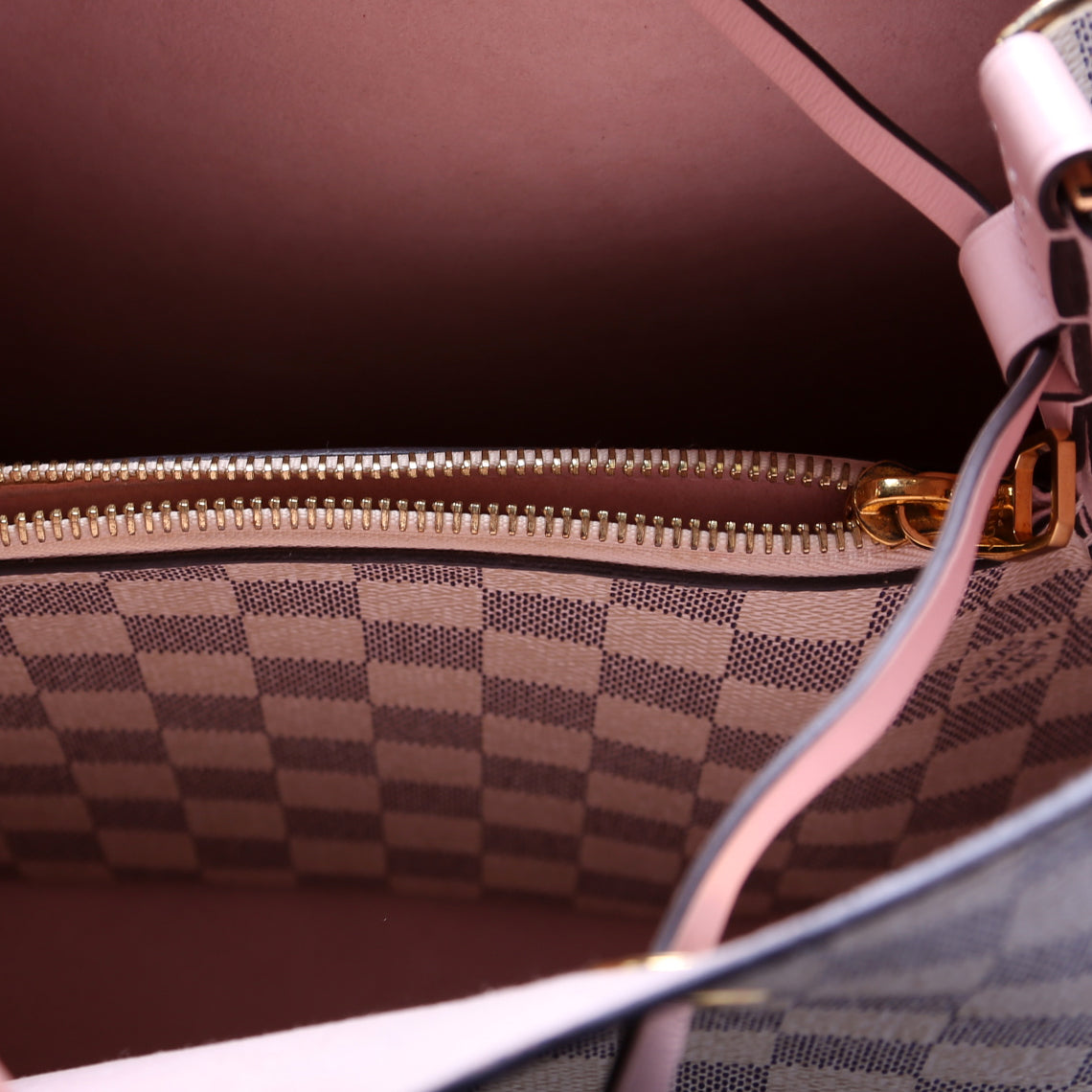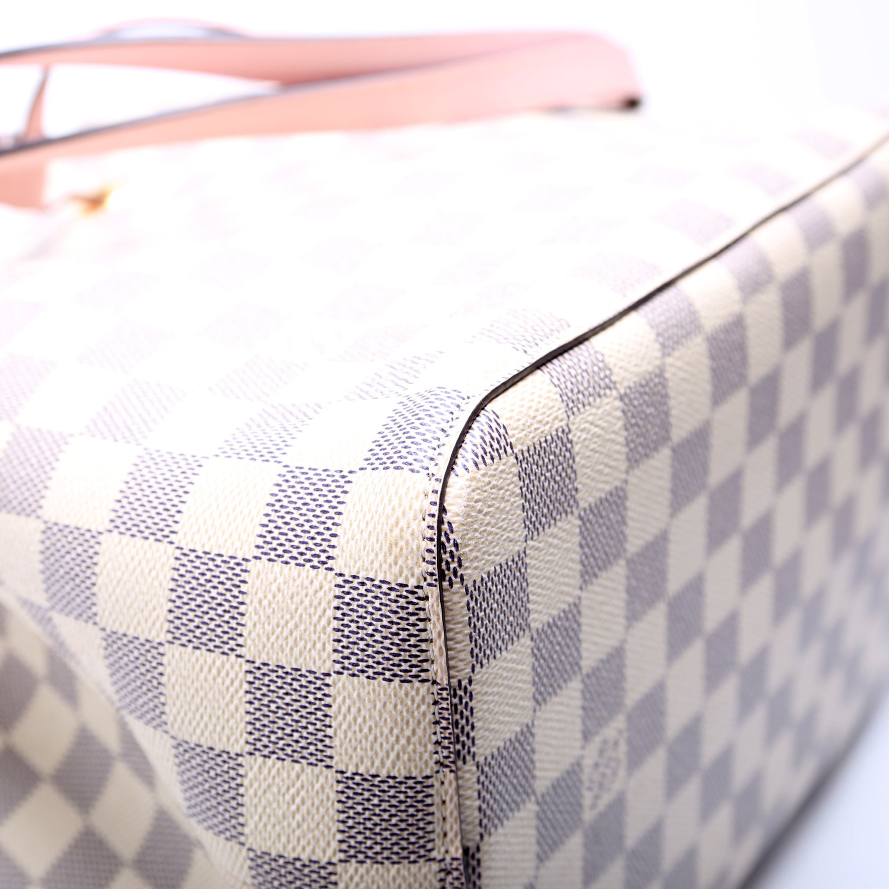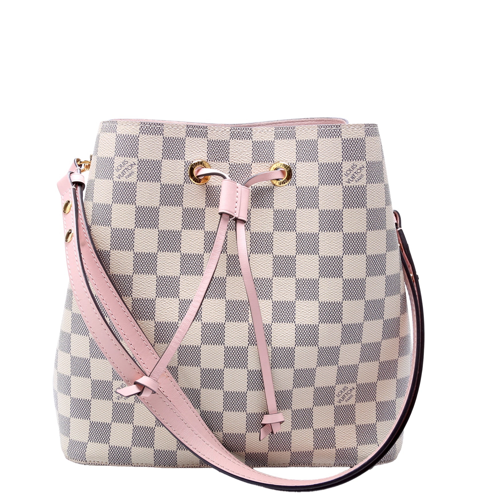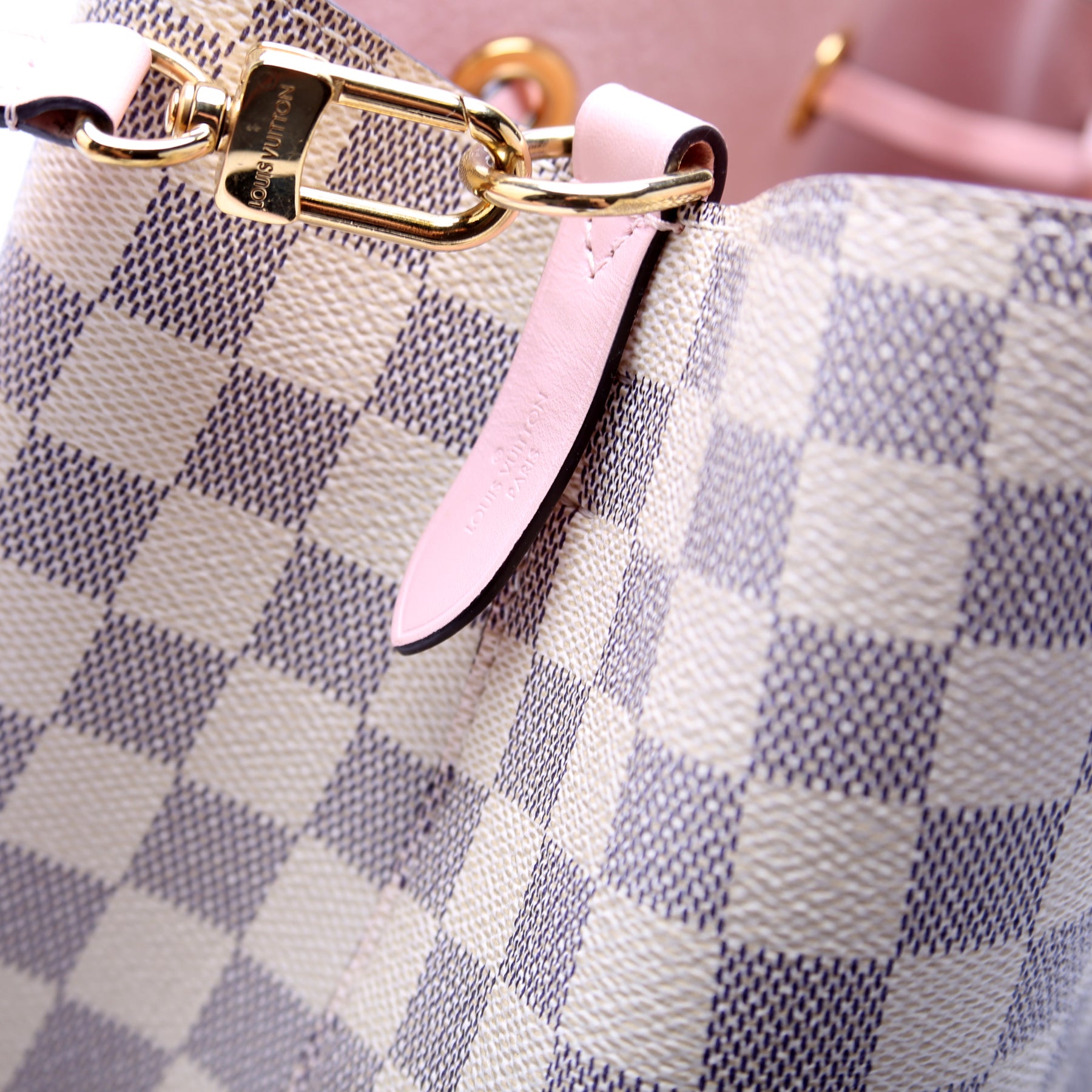 This pre-owned Louis Vuitton Neonoe is guaranteed 100% authentic. The exterior is in the classic Louis Vuitton Damier Azur coated canvas.