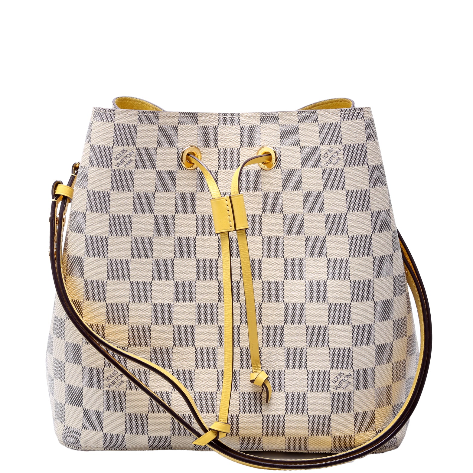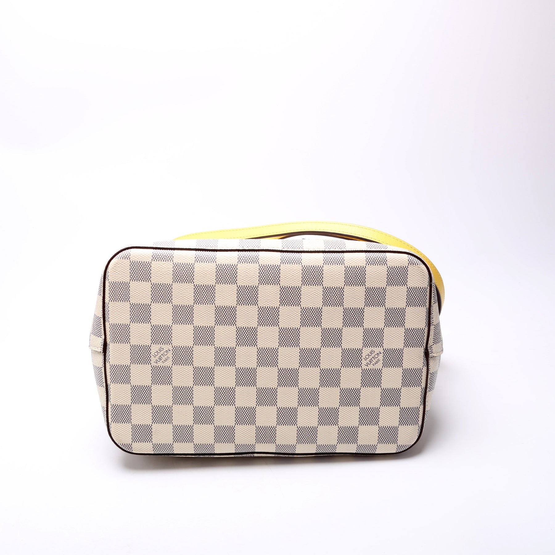 This pre-owned Louis Vuitton Neonoe is guaranteed 100% authentic. The exterior is in the classic Damier Azur coated canvas.