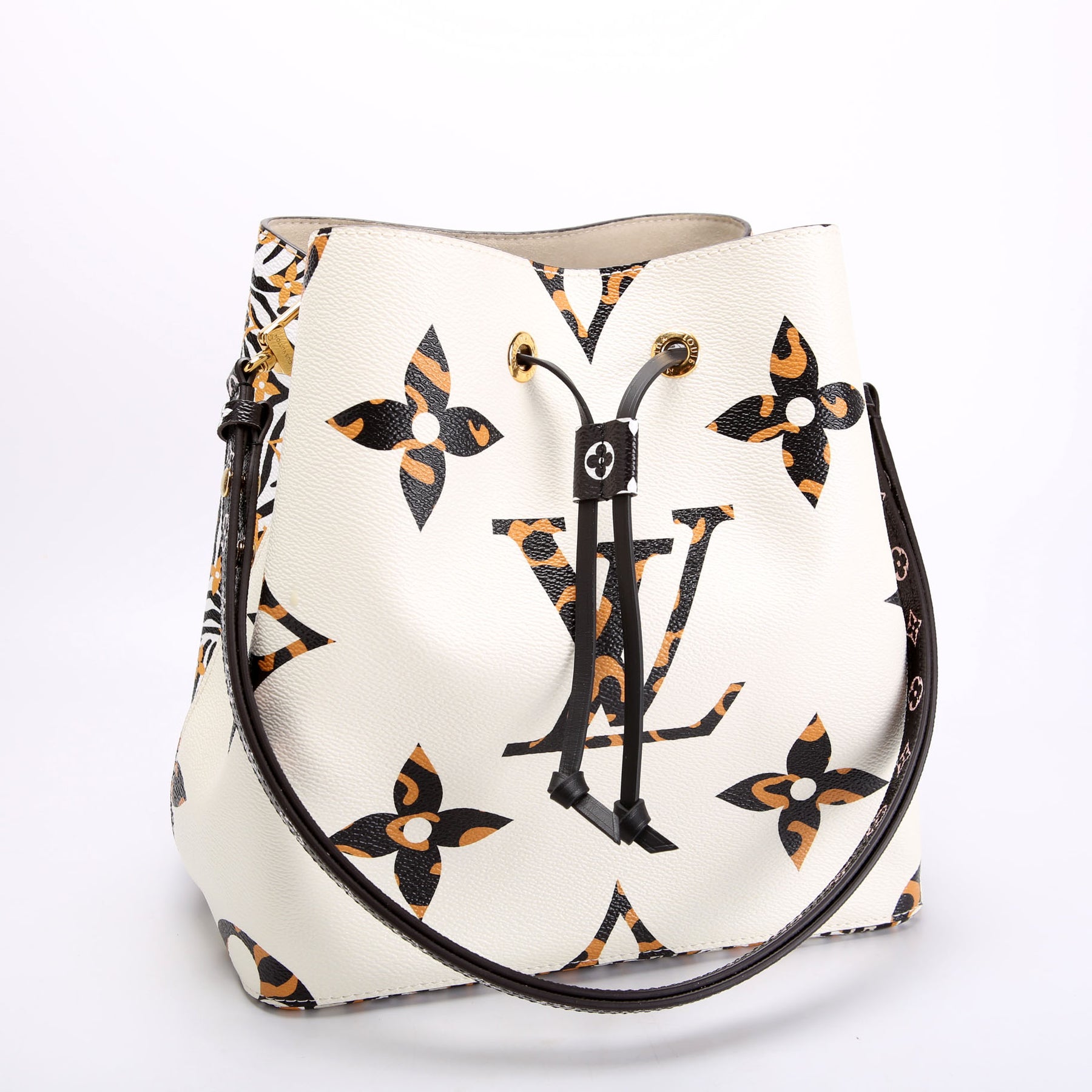 This pre-owned Louis Vuitton Neonoe is guaranteed 100% authentic. The exterior is in the classic Louis Vuitton Jungle coated canvas.
