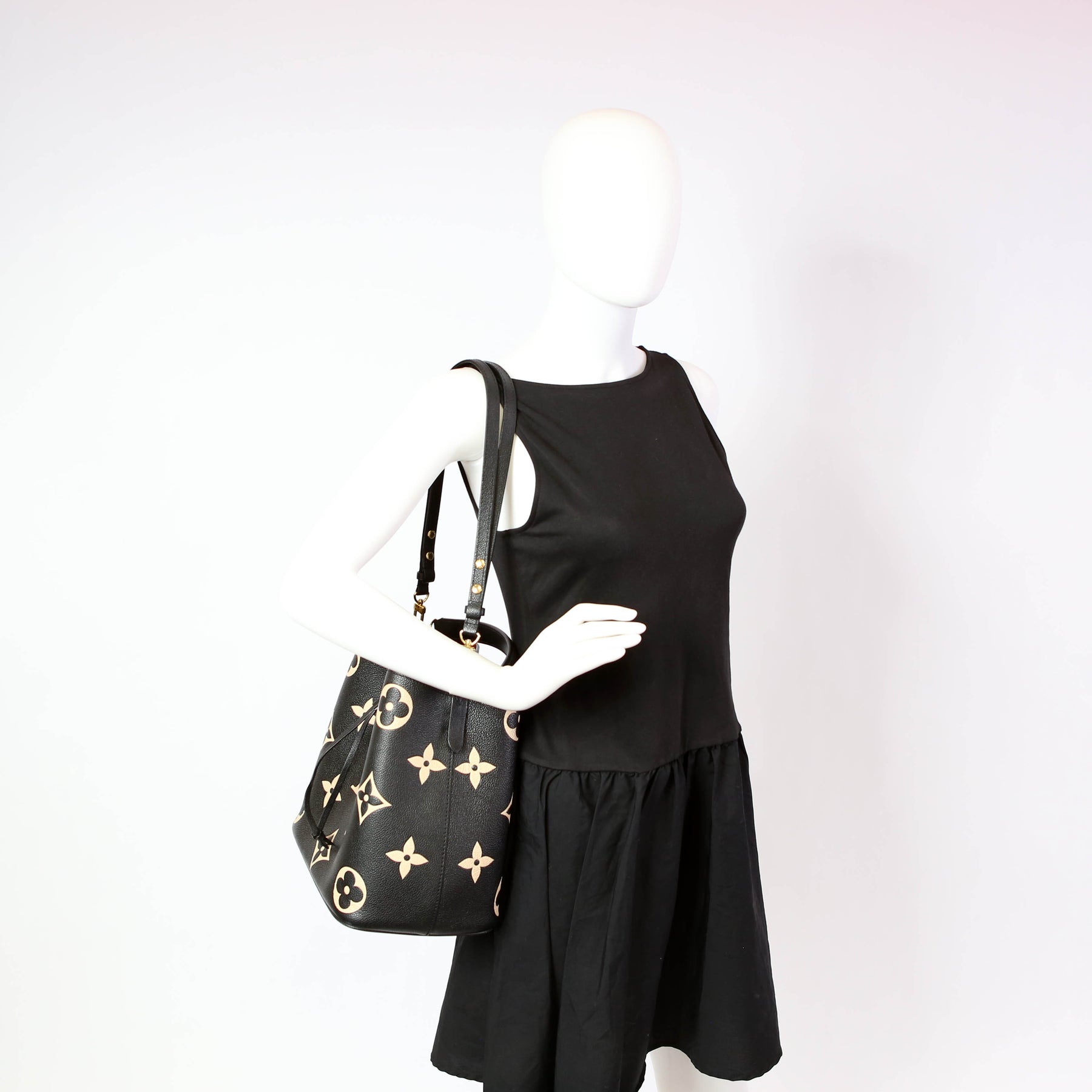 This pre-owned Louis Vuitton Neonoe MM is guaranteed 100% authentic. The exterior is in the classic Louis Vuitton Bicolor Empreinte leather.