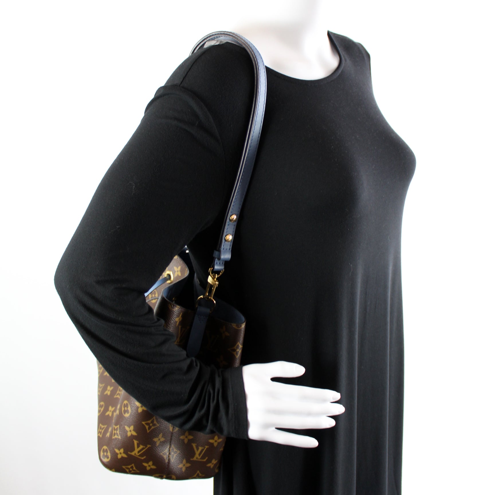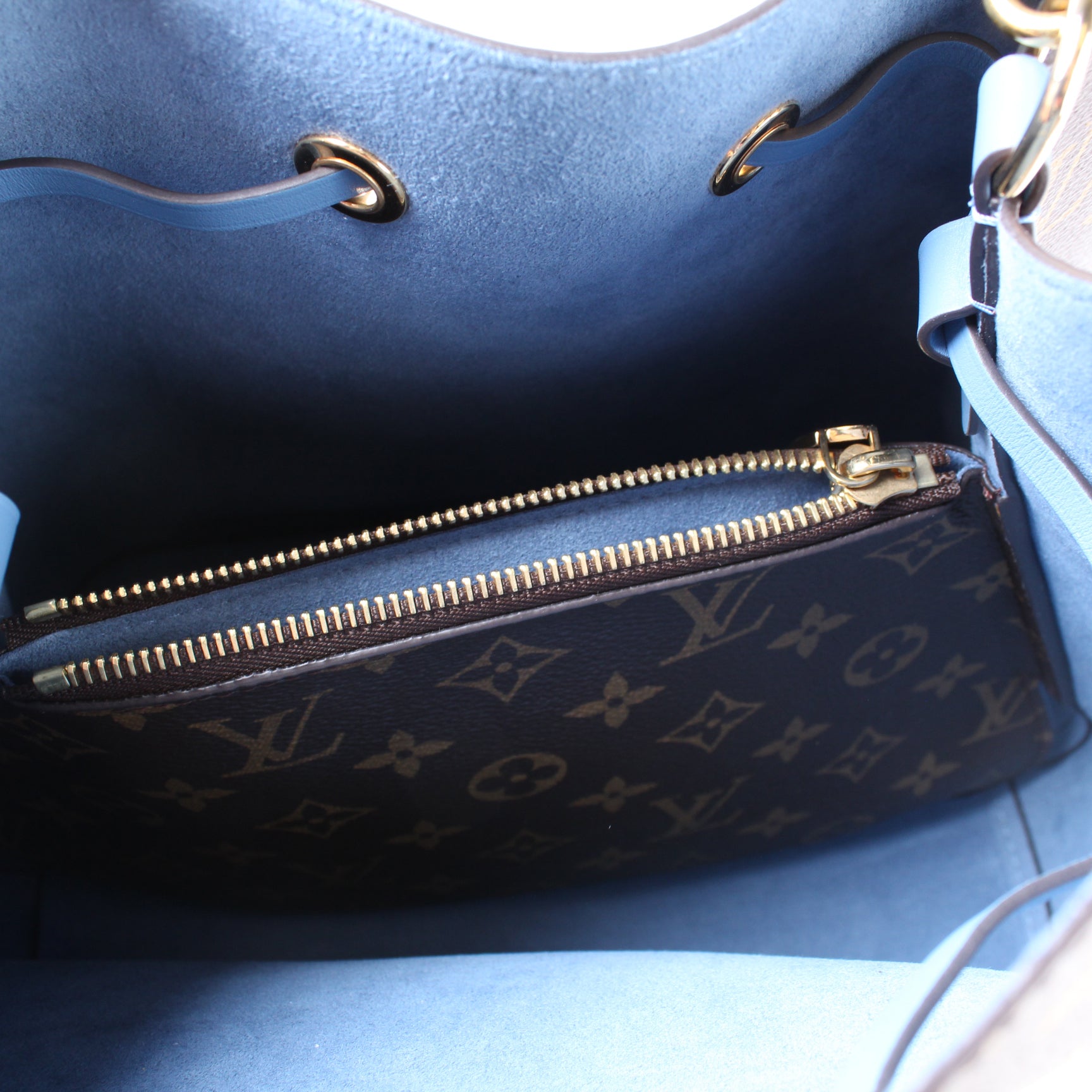 This pre-owned Louis Vuitton Neonoe is guaranteed 100% authentic. The exterior is in the classic Monogram coated canvas.