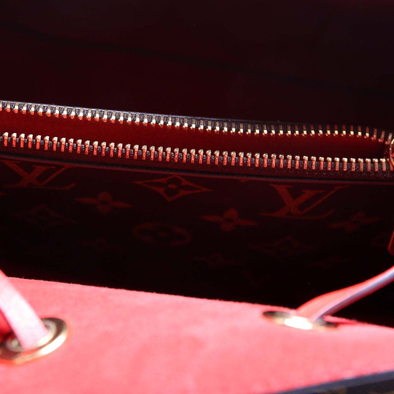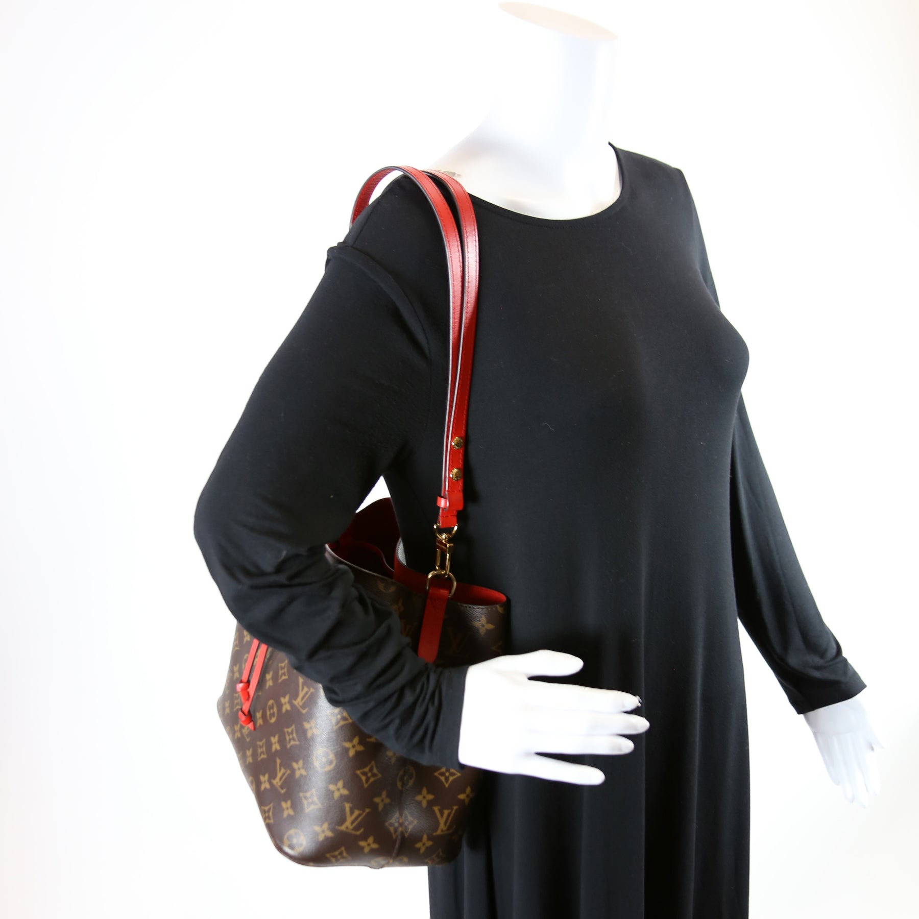 This pre-owned Louis Vuitton Neonoe is guaranteed 100% authentic. The exterior is in the classic Louis Vuitton Monogram coated canvas.