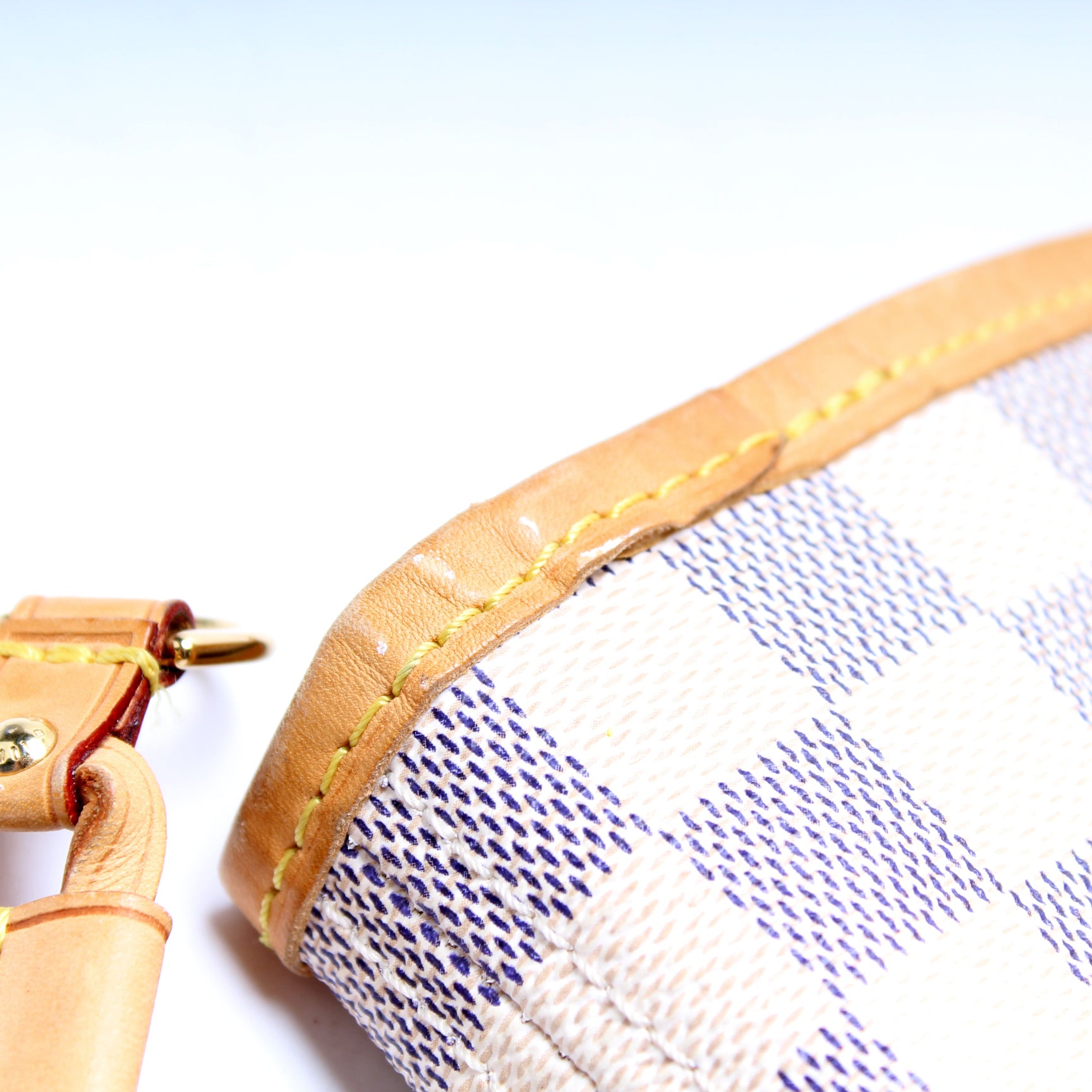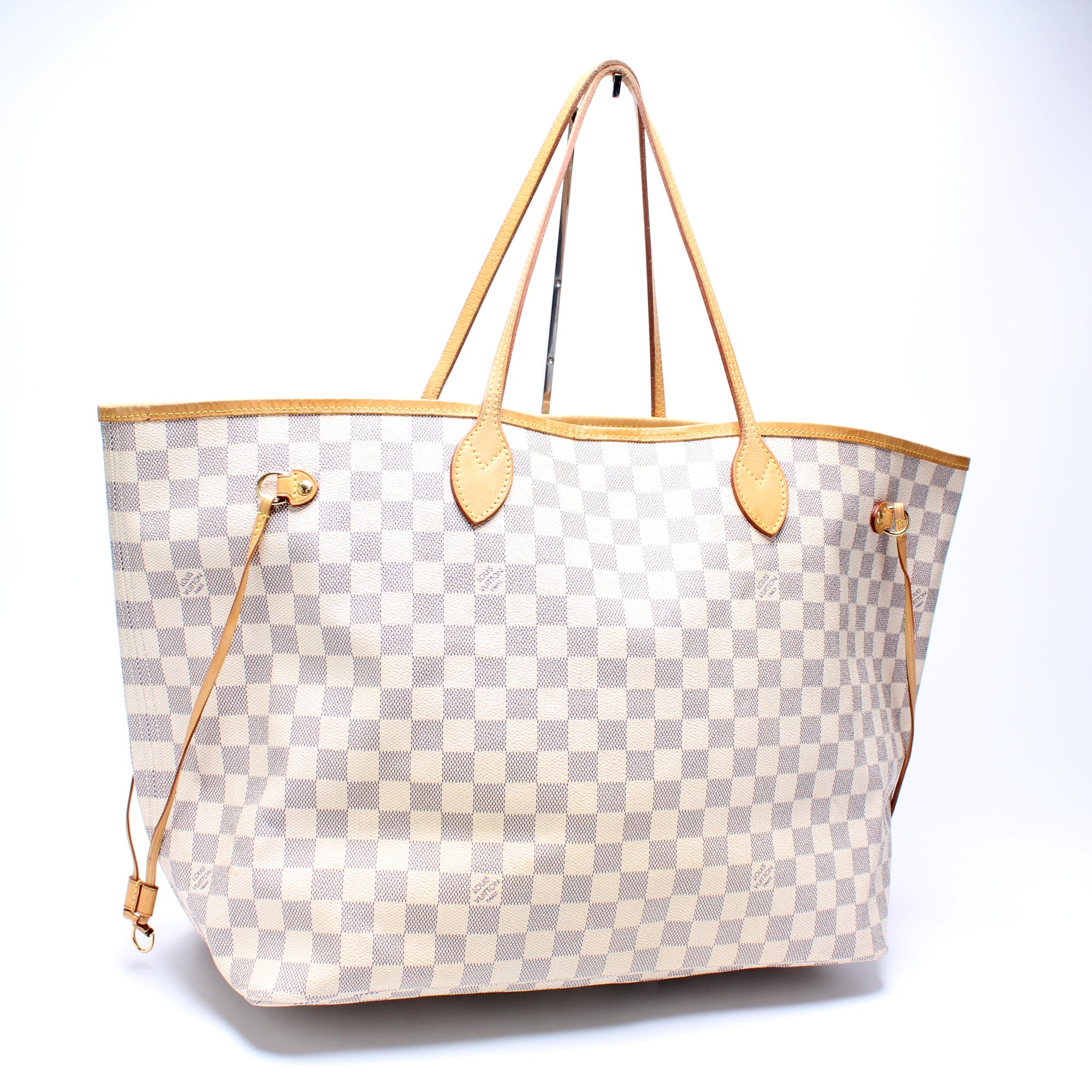 This pre-owned Louis Vuitton Neverfull GM is guaranteed 100% authentic. The exterior is in the classic Louis Vuitton Damier Azur coated canvas.